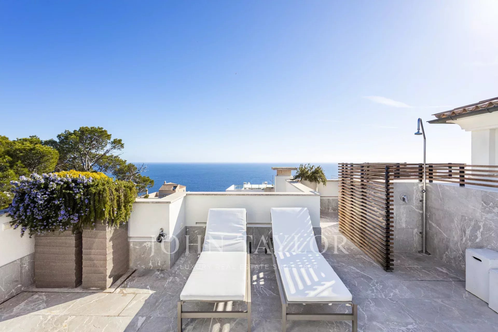 Es el epítome de la vida interior-exterior con la comodidad de tener la sala de estar y 62 metros cuadrados de terrazas en el mismo nivel con el beneficio añadido de tener una terraza adicional en la azotea de aprox. 100 metros cuadrados con una cocina de acero marino de verano, comedor, salón y zonas de relajación hábilmente divididos con macetas de barro hechas a mano y plantas que crean el ambiente perfecto, un sistema de riego automático, y muebles de diseño al aire libre.