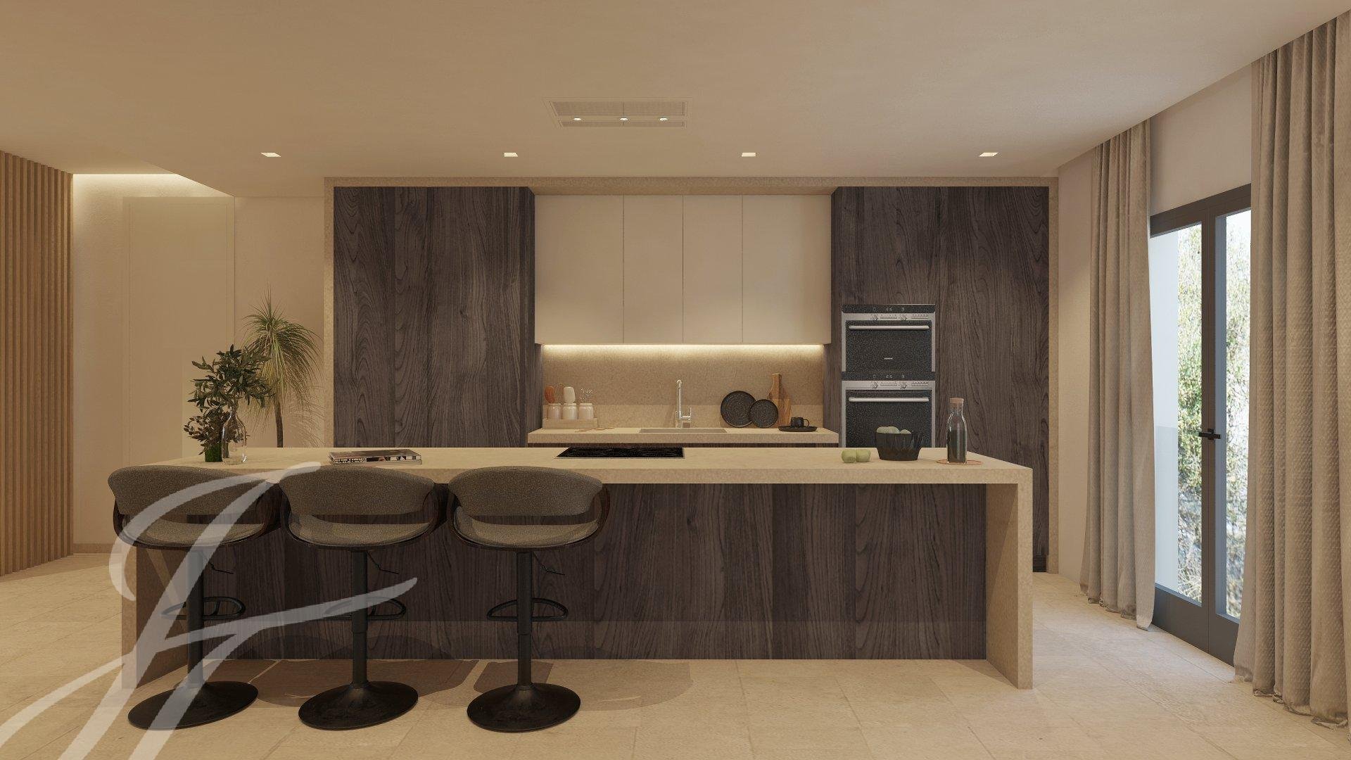 Estos apartamentos modernos se están construyendo en Santa Ponsa. Tienen fantásticas vistas panorámicas de Santa Ponsa y el campo de golf, con orientación este-sur-oeste y hermosas terrazas de 18 m2 para disfrutar plenamente del estilo de vida mediterráneo. Los apartamentos disponen de 4 habitaciones dobles y 3 baños, 2 de ellos en suite, equipados con materiales de alta calidad. Una sala de estar y un comedor con mucha luminosidad, así como una cocina abierta y moderna con electrodomésticos y una isla de cocina combinada con materiales de la más alta calidad le dan comodidad y bienestar. Los áticos tienen un solárium de 90 m2 y con una piscina privada. El complejo cuenta con 24 unidades residenciales, una piscina comunitaria y un jardín mediterráneo. Una plaza de aparcamiento subterráneo está incluida en el precio de venta. El proyecto se completará durante el año 2025.