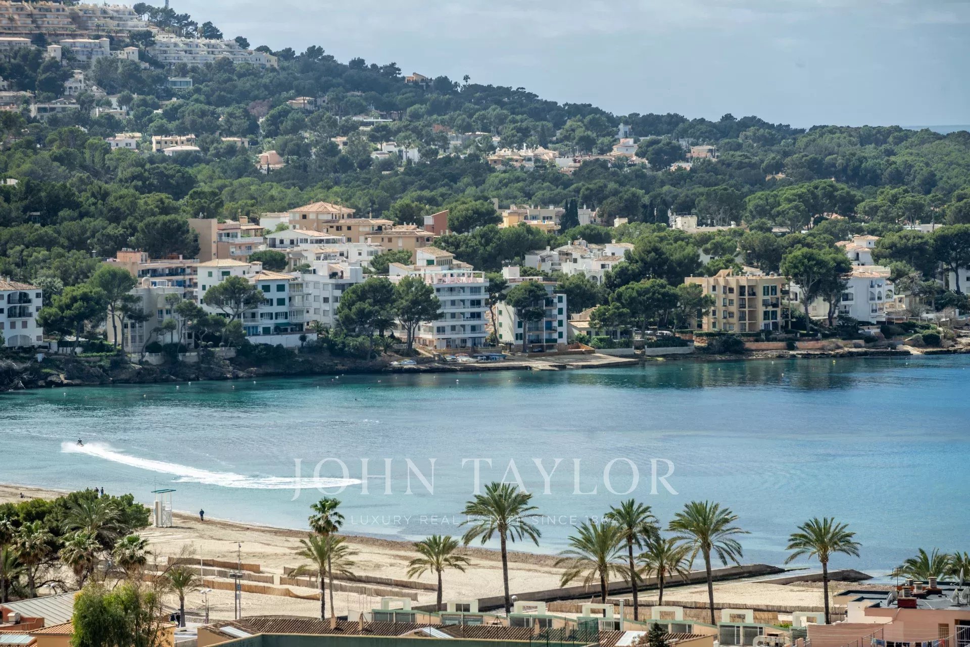Santa Ponsa, localidad situada en la costa suroeste de la isla de Mallorca. Conocida por su ambiente familiar, playas de arena blanca y aguas cristalinas que atraen a turistas de todo el mundo. El corazón de Santa Ponsa es su magnífica playa, que se extiende a lo largo de una bahía en forma de medialuna y ofrece un entorno idílico para relajarse. Podrá disfrutar de una variedad de deportes acuáticos, como el esquí acuático, el buceo y el kayak. Junto a la playa se encuentra el siempre animado paseo marítimo, que invita a largos paseos, restaurantes, bares y tiendas. Aquí, los visitantes pueden deleitarse con deliciosos platos de mariscos frescos y especialidades locales, mientras disfrutan de las impresionantes vistas al mar. Para los amantes del golf, Santa Ponsa cuenta con varios campos prestigiosos. Y para los aficionados a los barcos, tiene el Club Náutico Santa Ponsa, puerto de recreo, de ambiente relajado y familiar. Santa Ponsa es un destino turístico encantador que combina playas paradisíacas, una amplia oferta de actividades y una gastronomía deliciosa.