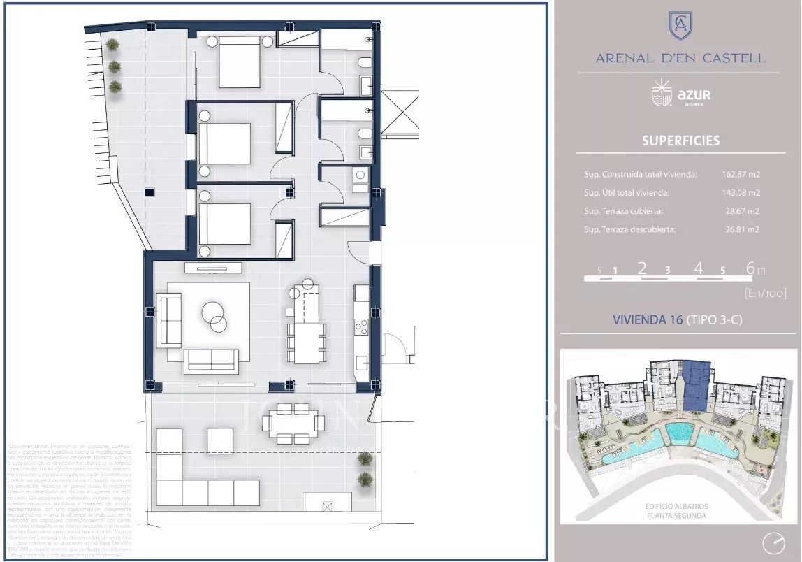 Si buscas vistas al mar impresionantes y un apartamento moderno y lujoso, esta propiedad podría ser una oportunidad de oro. Aquí vivirás a tan solo 200 metros de la playa de S'Arenal d’en Castell, con todas las comodidades necesarias para el bienestar durante todo el año. Encontrarás apartamentos de 1, 2 o 3 habitaciones con amplias terrazas que van desde 100 hasta 260 metros cuadrados. El espacio de vida es generoso y extremadamente luminoso, lo que te permitirá disfrutar del maravilloso entorno desde tu sofá. Después de disfrutar de los espacios interiores, tendrás acceso a áreas comunes que incluyen un área de juegos para niños, un espacio de coworking, una piscina, un gimnasio y un spa. La vivienda dispone de plaza de garaje y de trastero