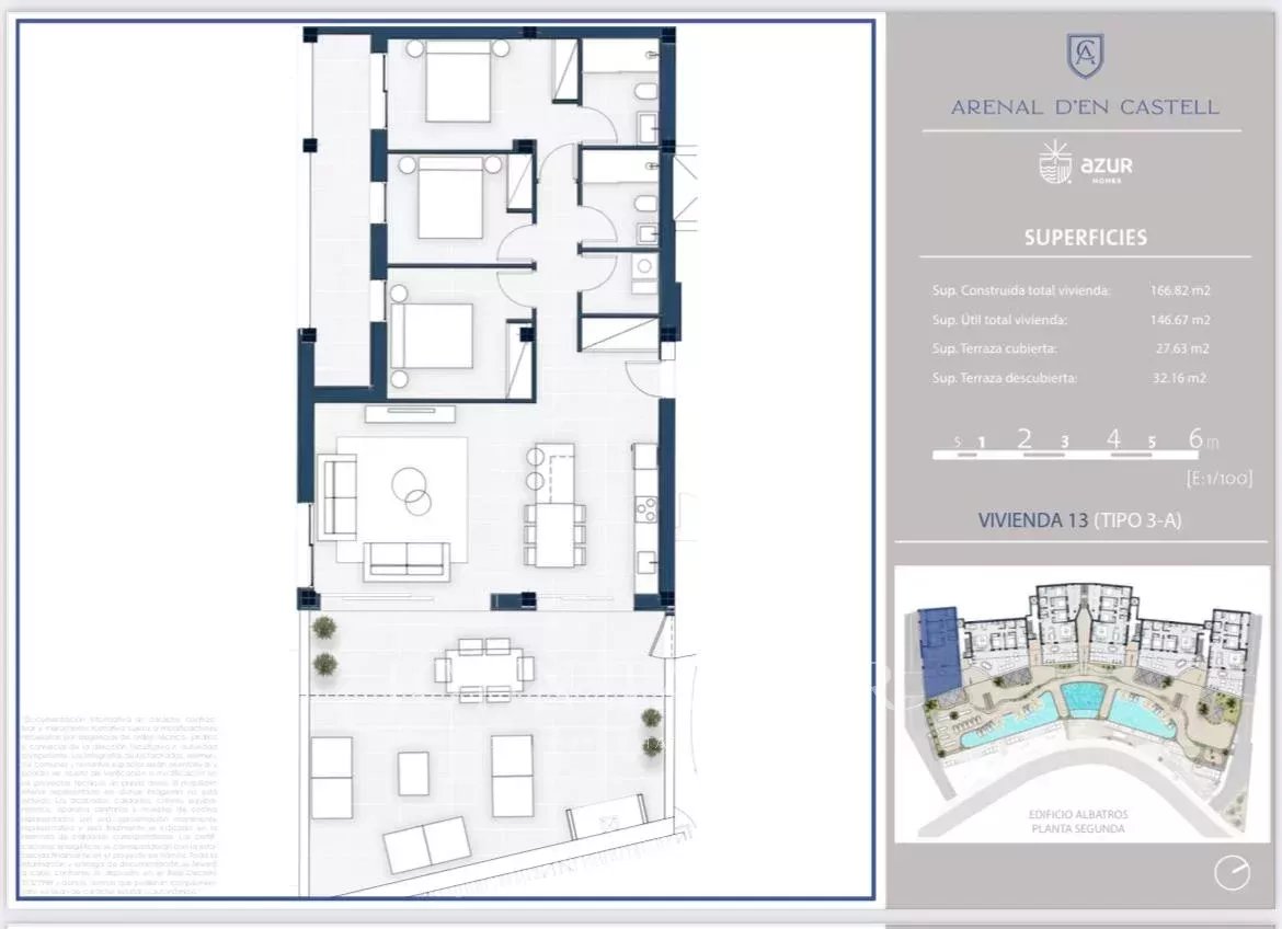 Si buscas vistas al mar impresionantes y un apartamento moderno y lujoso, esta propiedad podría ser una oportunidad de oro. Aquí vivirás a tan solo 200 metros de la playa de S'Arenal d’en Castell, con todas las comodidades necesarias para el bienestar durante todo el año. Encontrarás apartamentos de 1, 2 o 3 habitaciones con amplias terrazas que van desde 100 hasta 260 metros cuadrados. El espacio de vida es generoso y extremadamente luminoso, lo que te permitirá disfrutar del maravilloso entorno desde tu sofá. Después de disfrutar de los espacios interiores, tendrás acceso a áreas comunes que incluyen un área de juegos para niños, un espacio de coworking, una piscina, un gimnasio y un spa. La vivienda dispone de plaza de garaje y de trastero