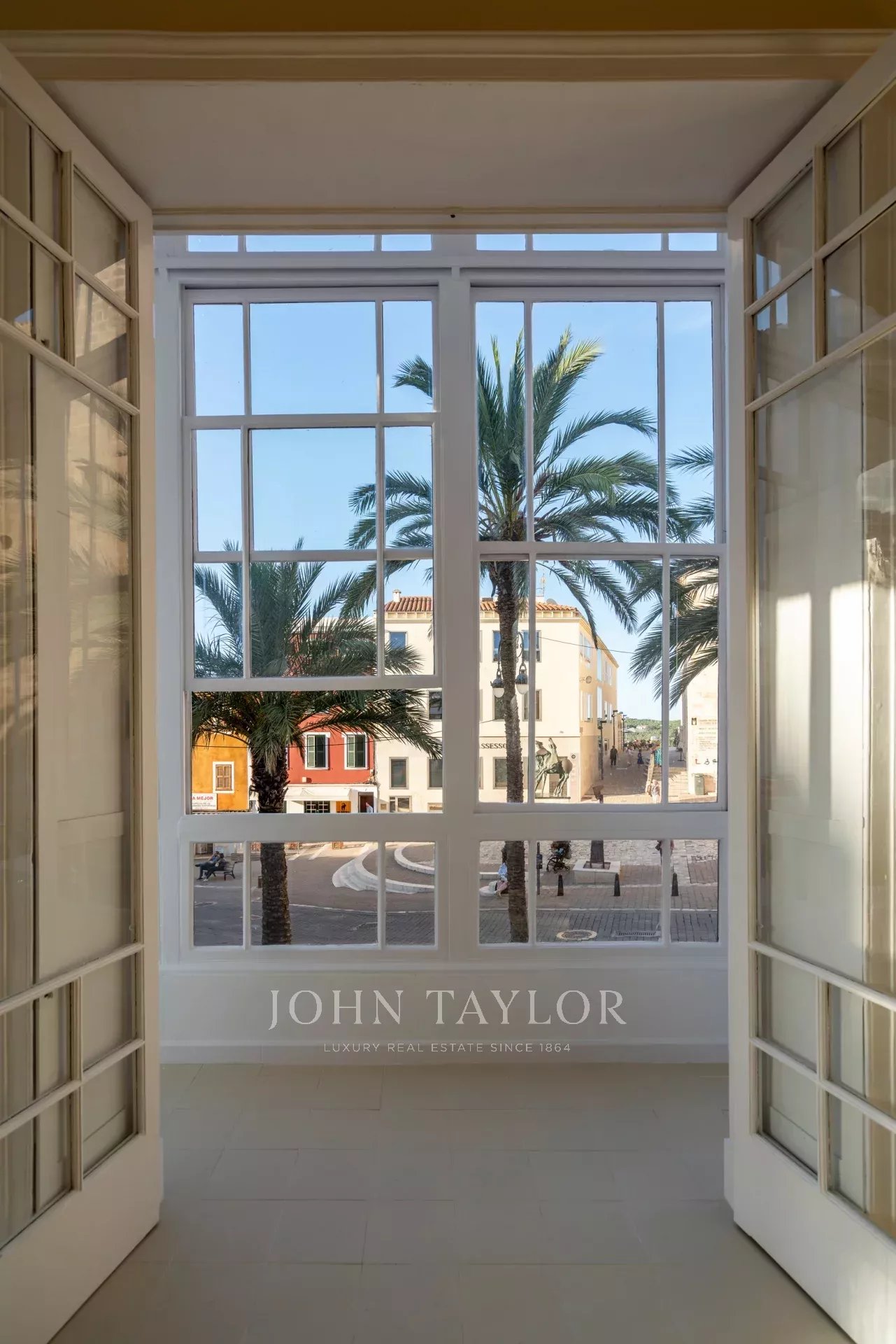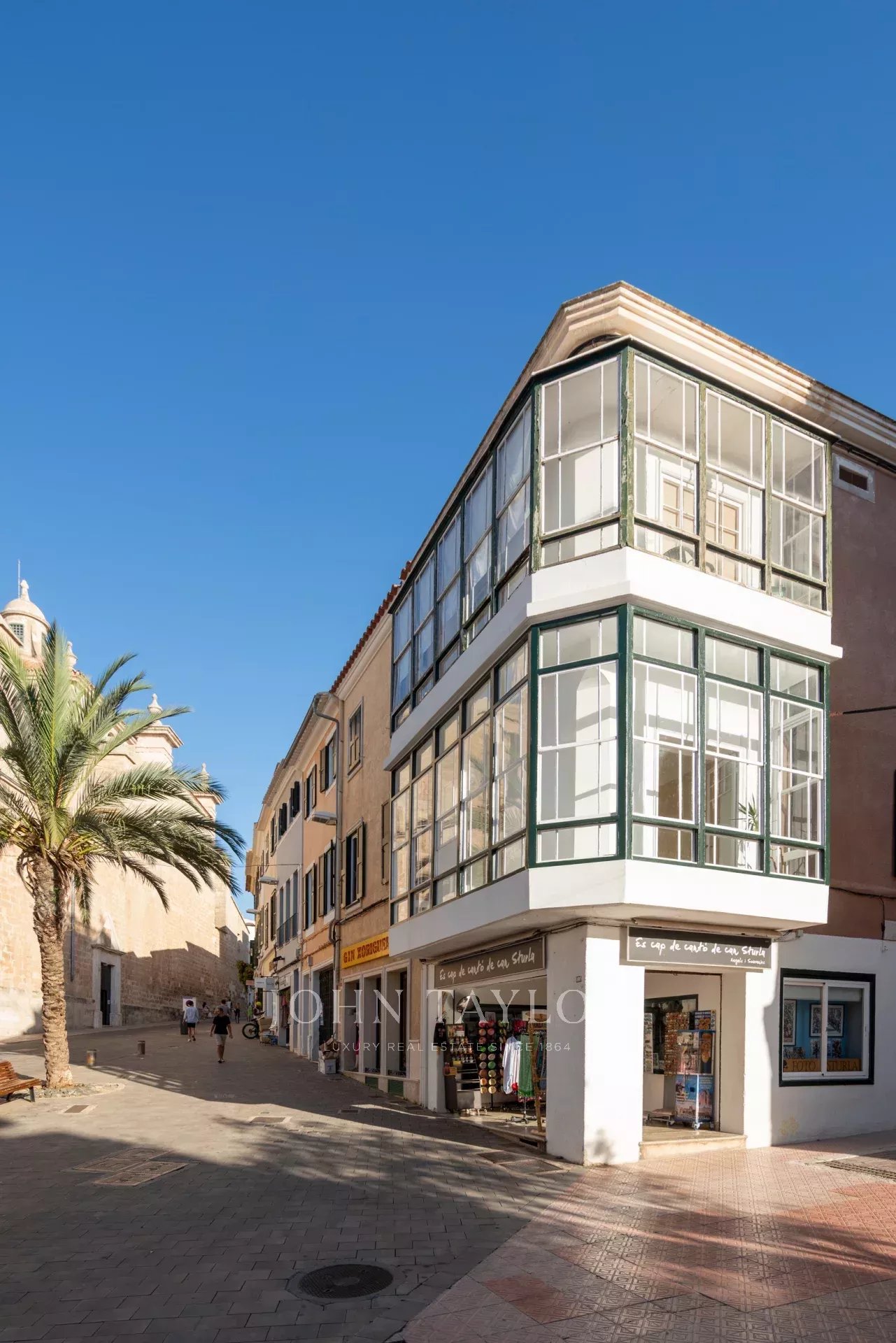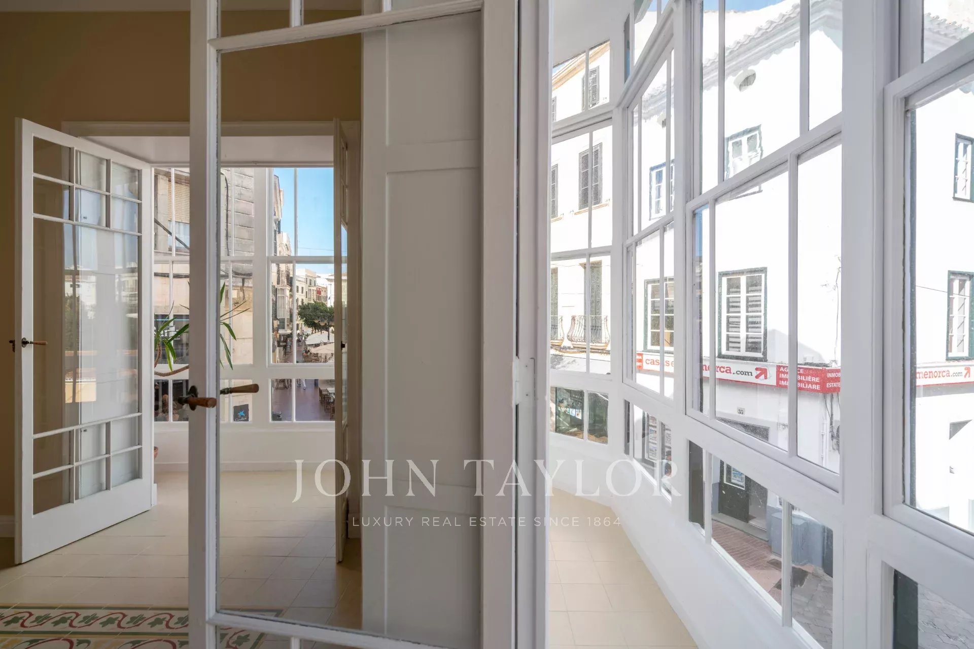 Exquisito piso de 146 m² en el corazón histórico de Mahón, situado en la confluencia de la Plaza del Carme y la calle Nord. Este luminoso piso, completamente exterior y en esquina, ha sido completamente renovado en 2023 con una nueva instalación de fontanería y electricidad, así como la rehabilitación de suelos y carpintería.