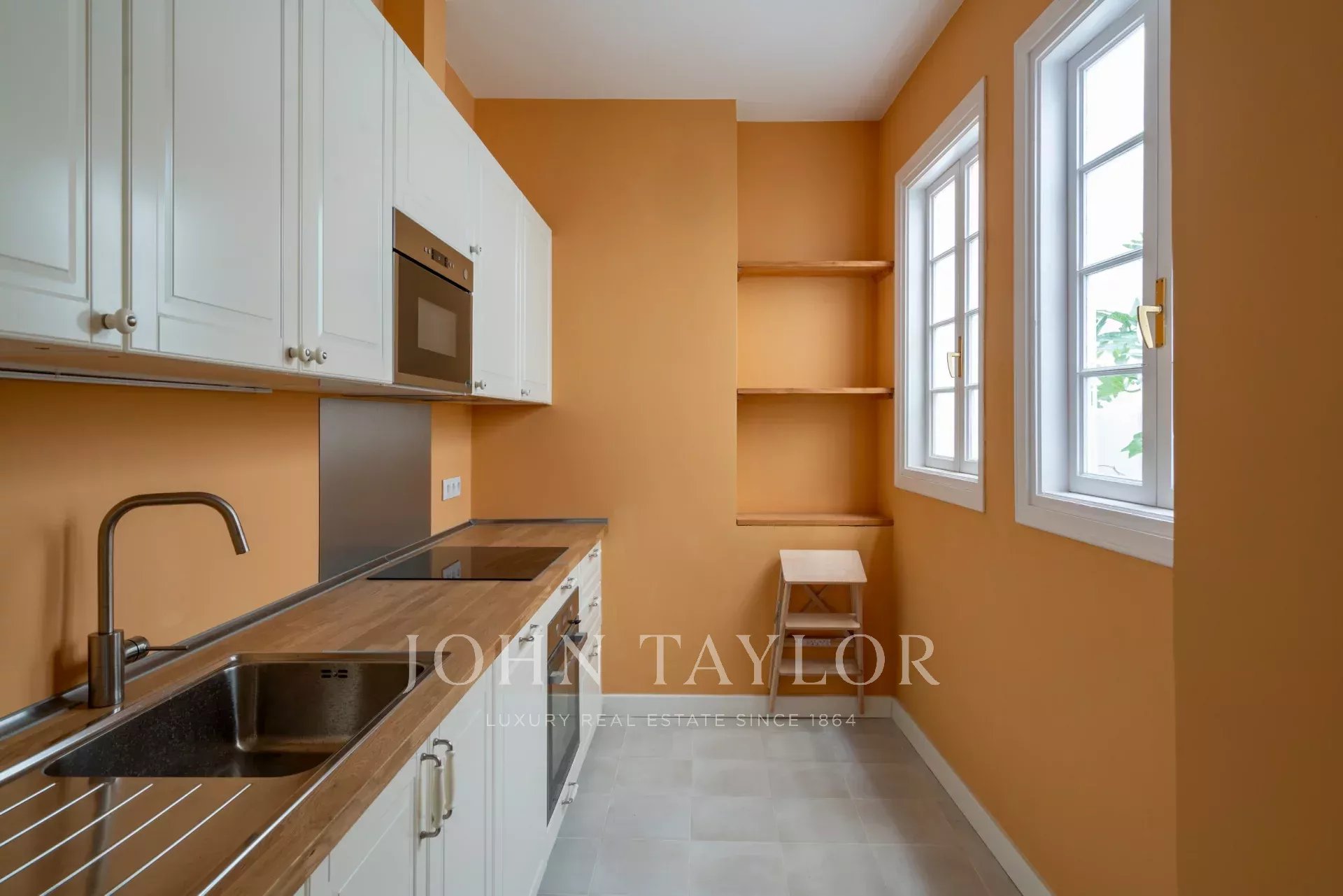 La cocina independiente está totalmente equipada con electrodomésticos de alta eficiencia energética, lo que garantiza comodidad y funcionalidad. Además, se ha preservado el encanto original menorquín en cada detalle. El apartamento cuenta con 3 habitaciones, dos baños completos, un amplio salón y un comedor independiente. Destaca especialmente una sala con un balcón acristalado, perfecto para disfrutar de las vistas como si fuera un mirador privado.