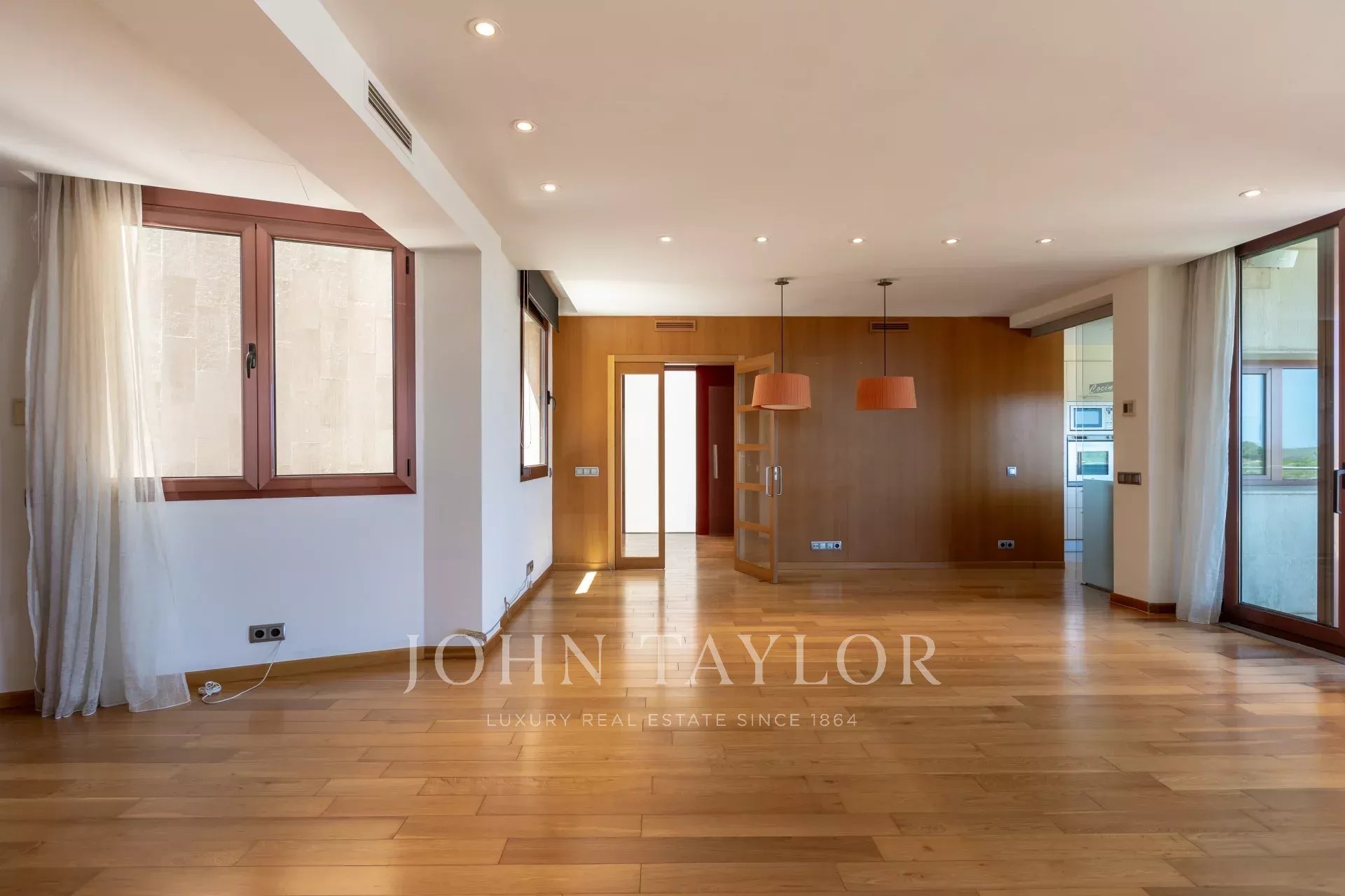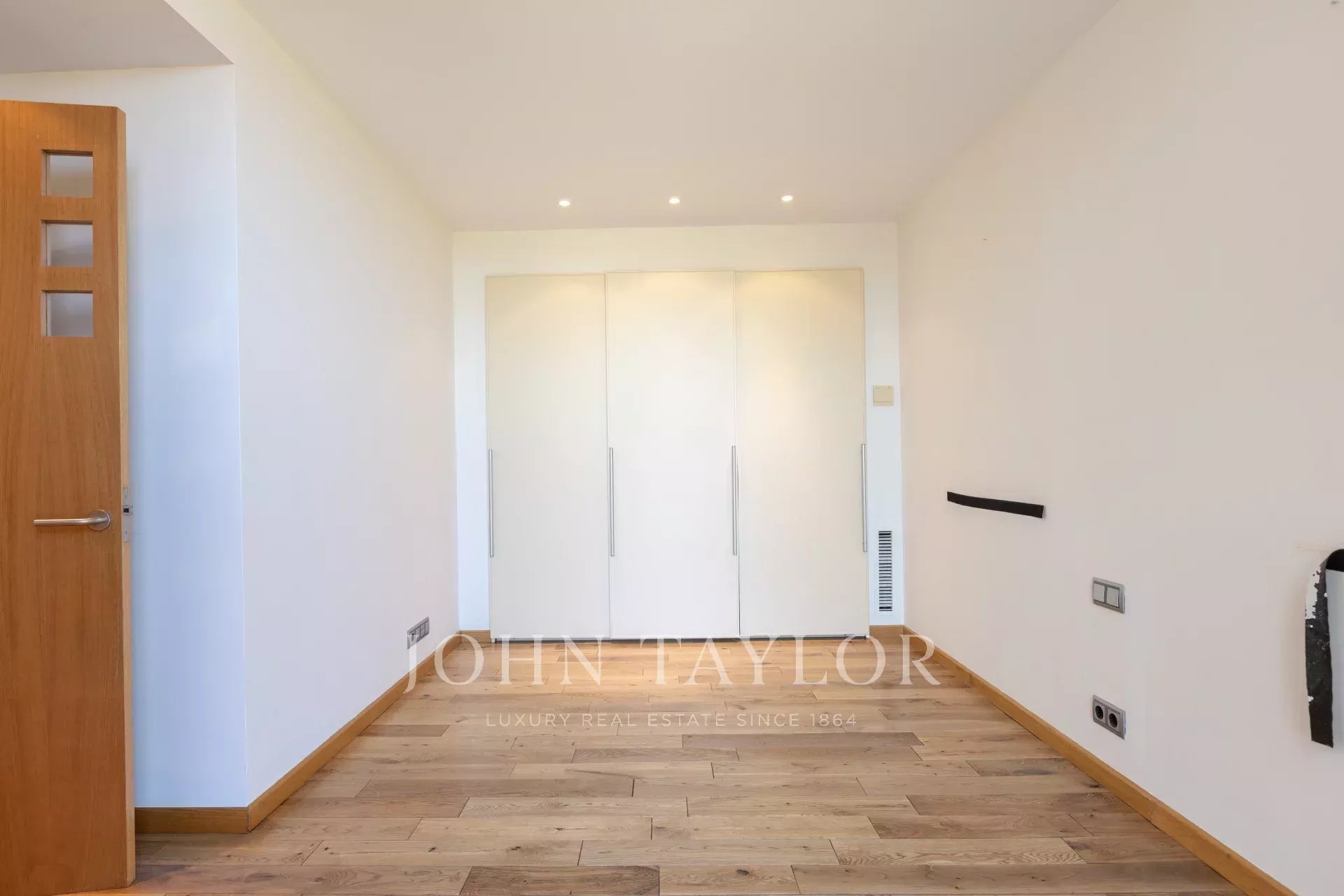 Consta de tres dormitorios, hoy uno de ellos en uso como despacho, el dormitorio doble y el principal -este con acceso directo a la segunda terraza privada del inmueble-, además de vestidor y baño en suite. Cómoda cocina equipada y zona de lavandería. Amplio salón / comedor con acceso a la amplísima terraza, idónea para el descanso, ocio y las mejores veladas sobre el imponente puerto de Mahón. Todas las dependencias son exteriores y hay aire acondicionado y calefacción en toda la vivienda. Dispone de cuidadísimos jardines privados, piscina comunitaria, dos plazas de parking, amplio trastero y ascensor.