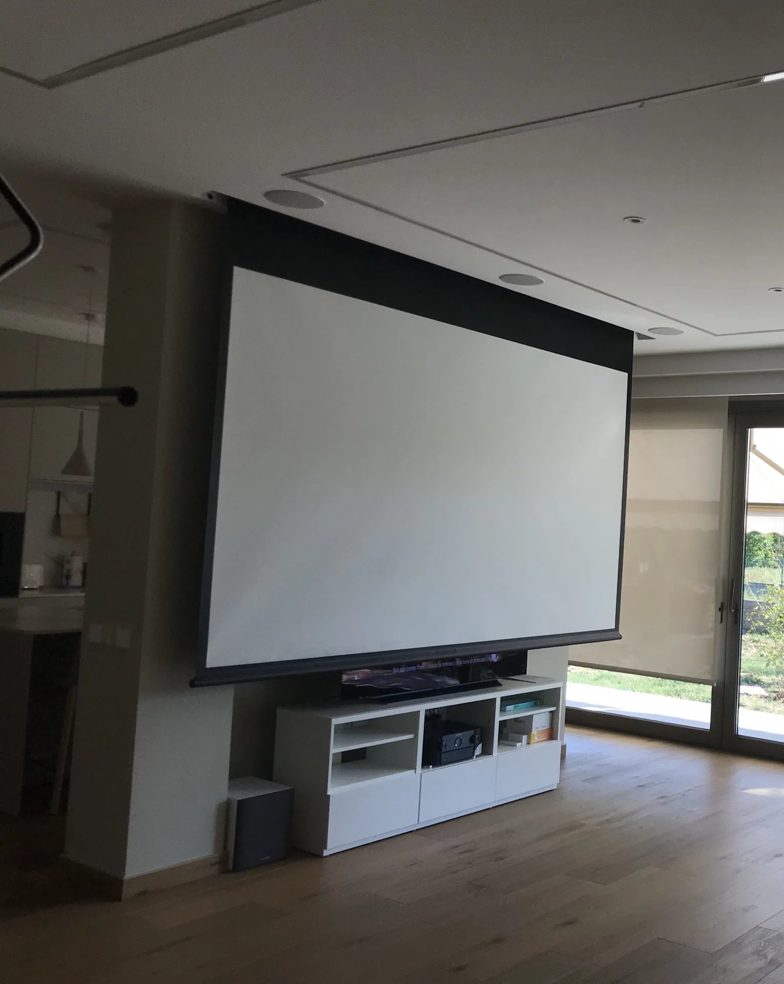 - Home Cinema System Marantz A/V 4k UHD con HEOS, pantalla 300x160, proyector Optoma 4K HDMI DLP UHD y sistema de sonido B&W (Bowers & Wilkins) ASW con subwoofer y 6 altavoces en techo.