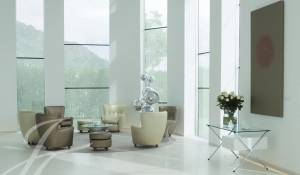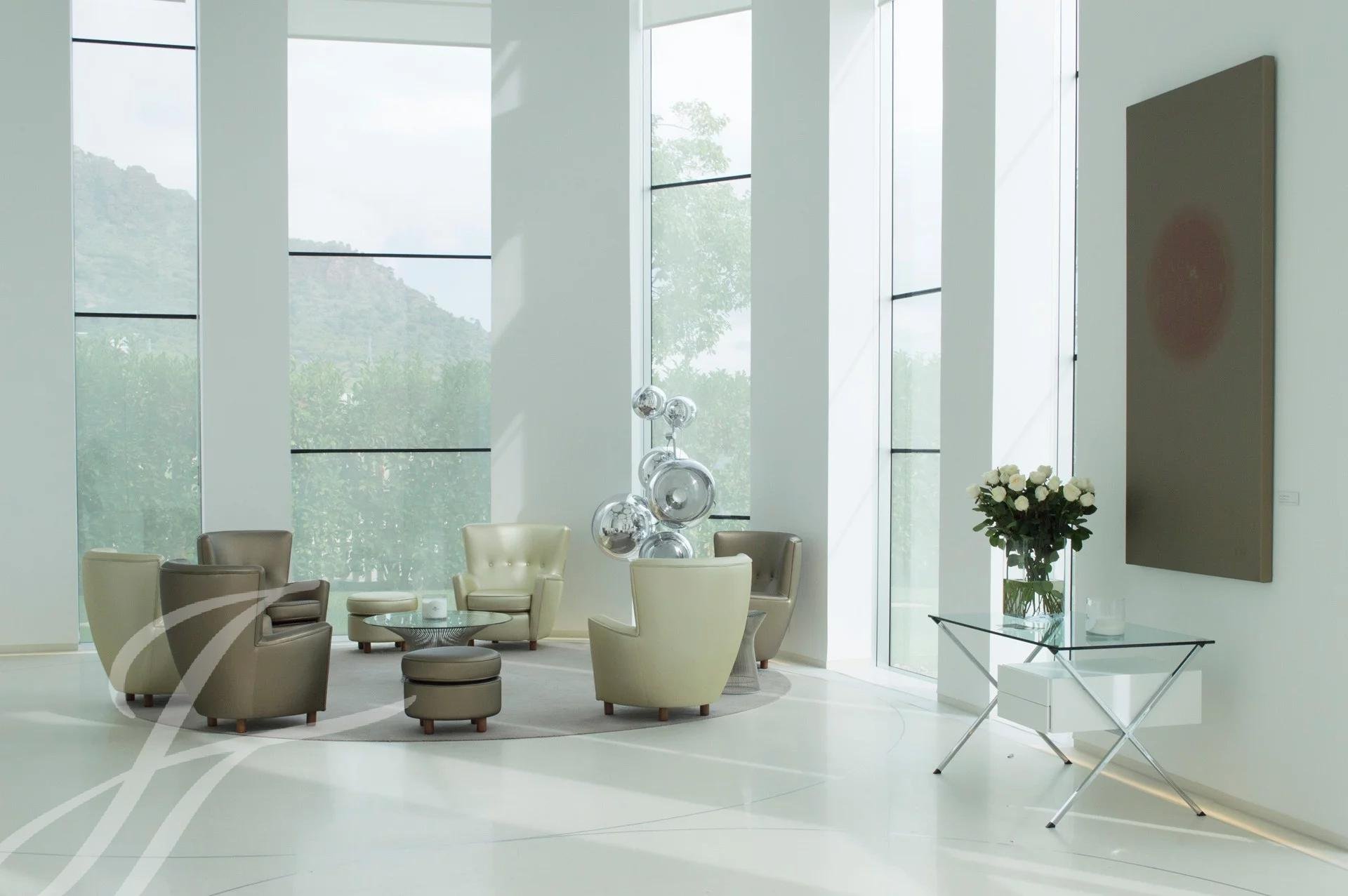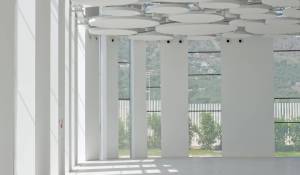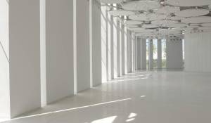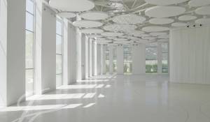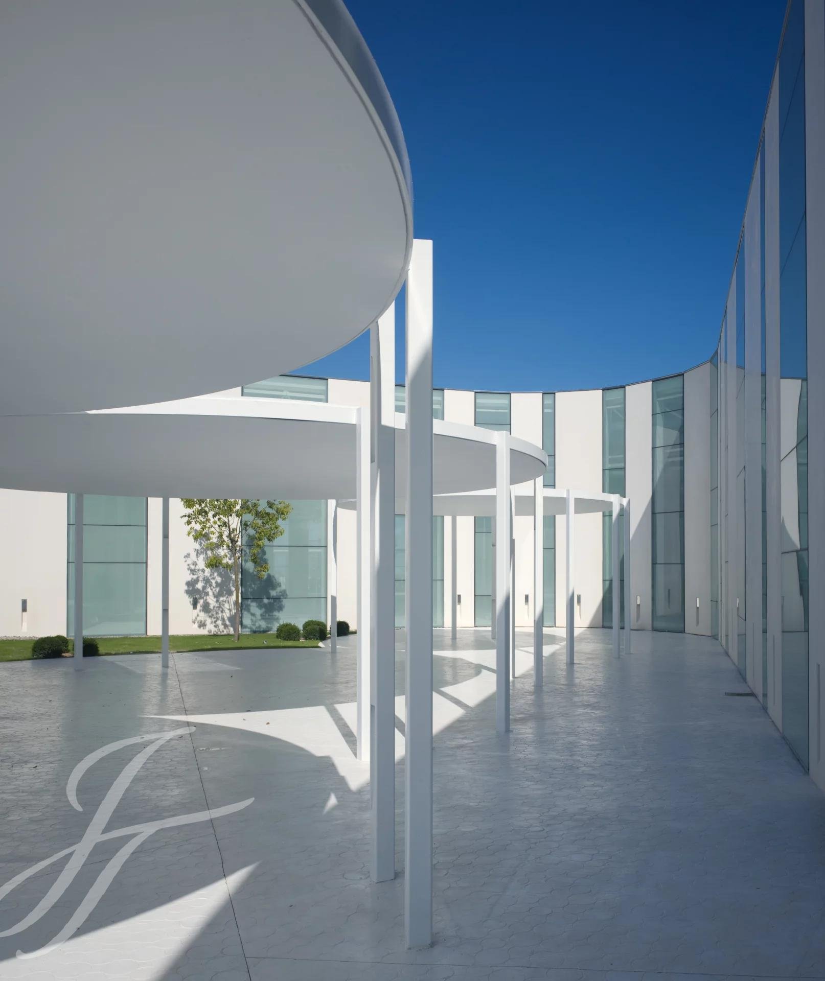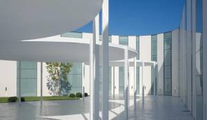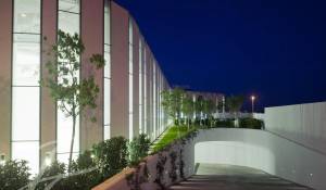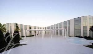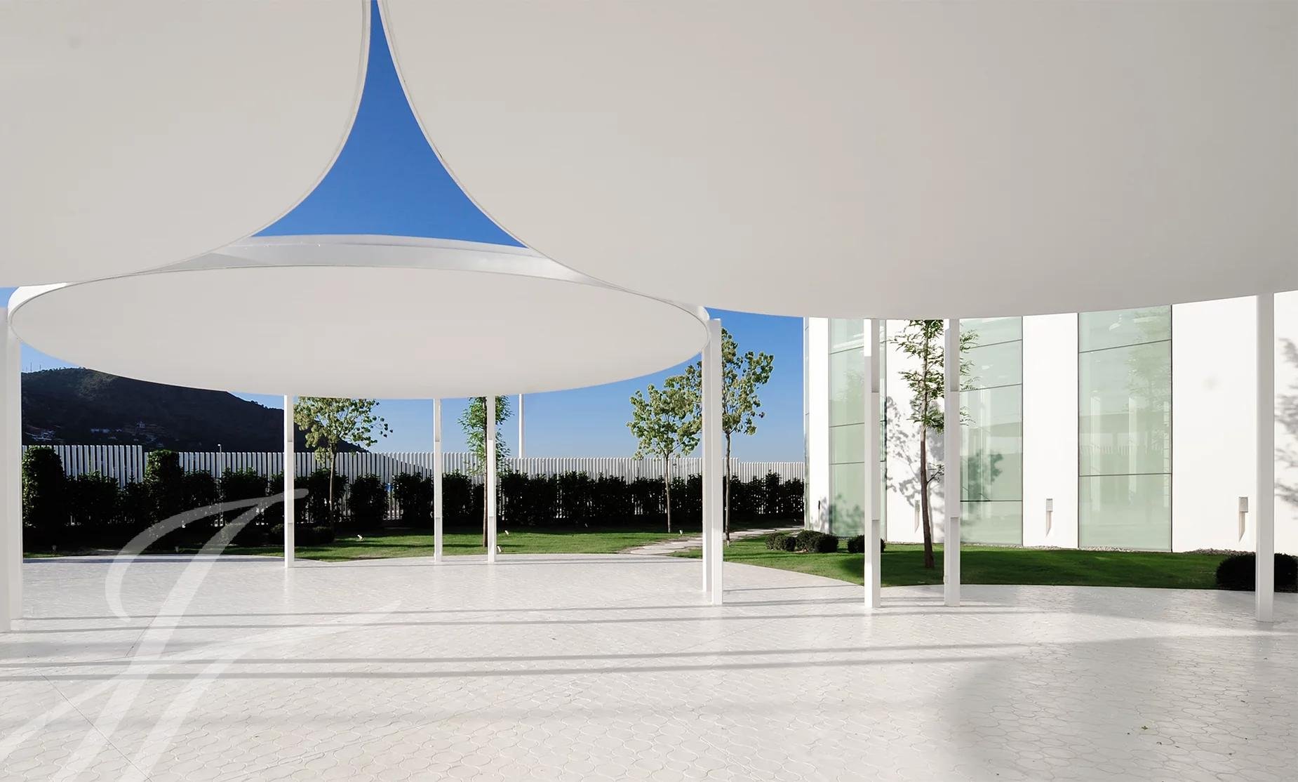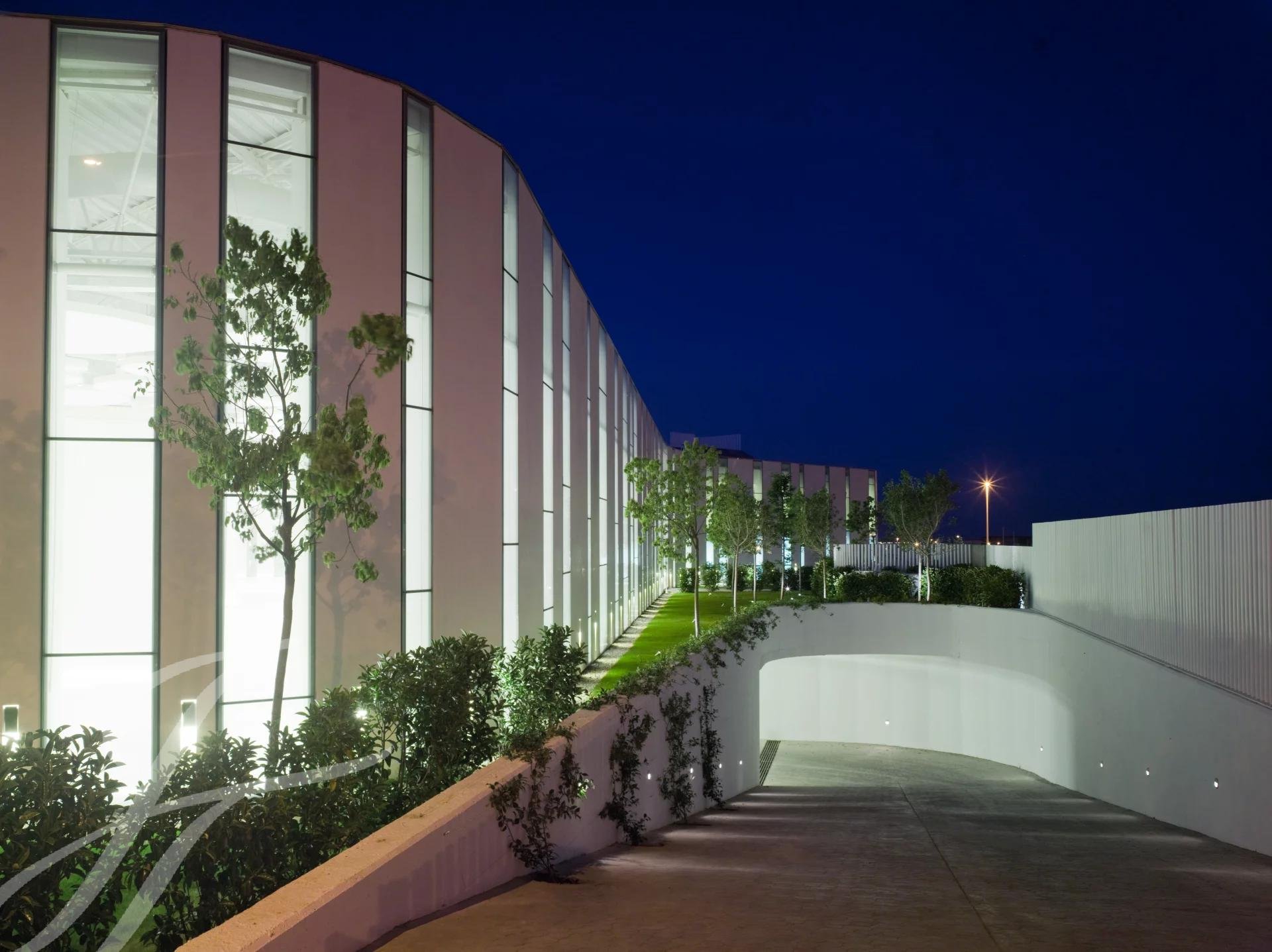 La zona exterior ajardinada está integrada en la arquitectura moderna del edificio siendo el jardín de inspiración mediterránea y con zonas de agua, diseñado con composiciones en verde y blanco. Además, cuenta con 2 terrazas exteriores de 550 y 650 metros cuadrados como complemento de las salas interiores.