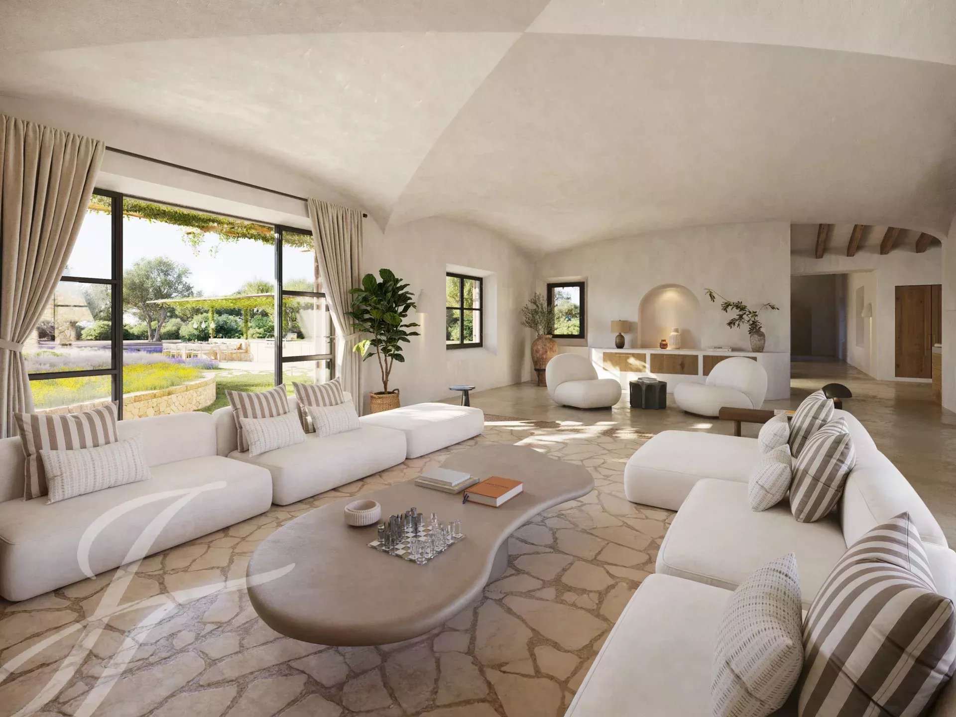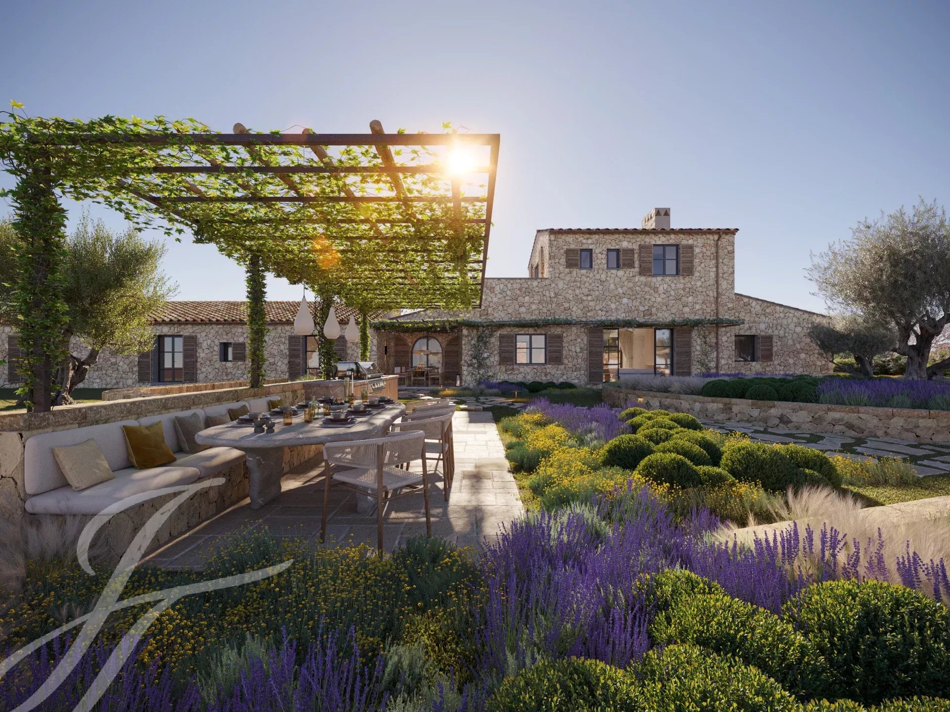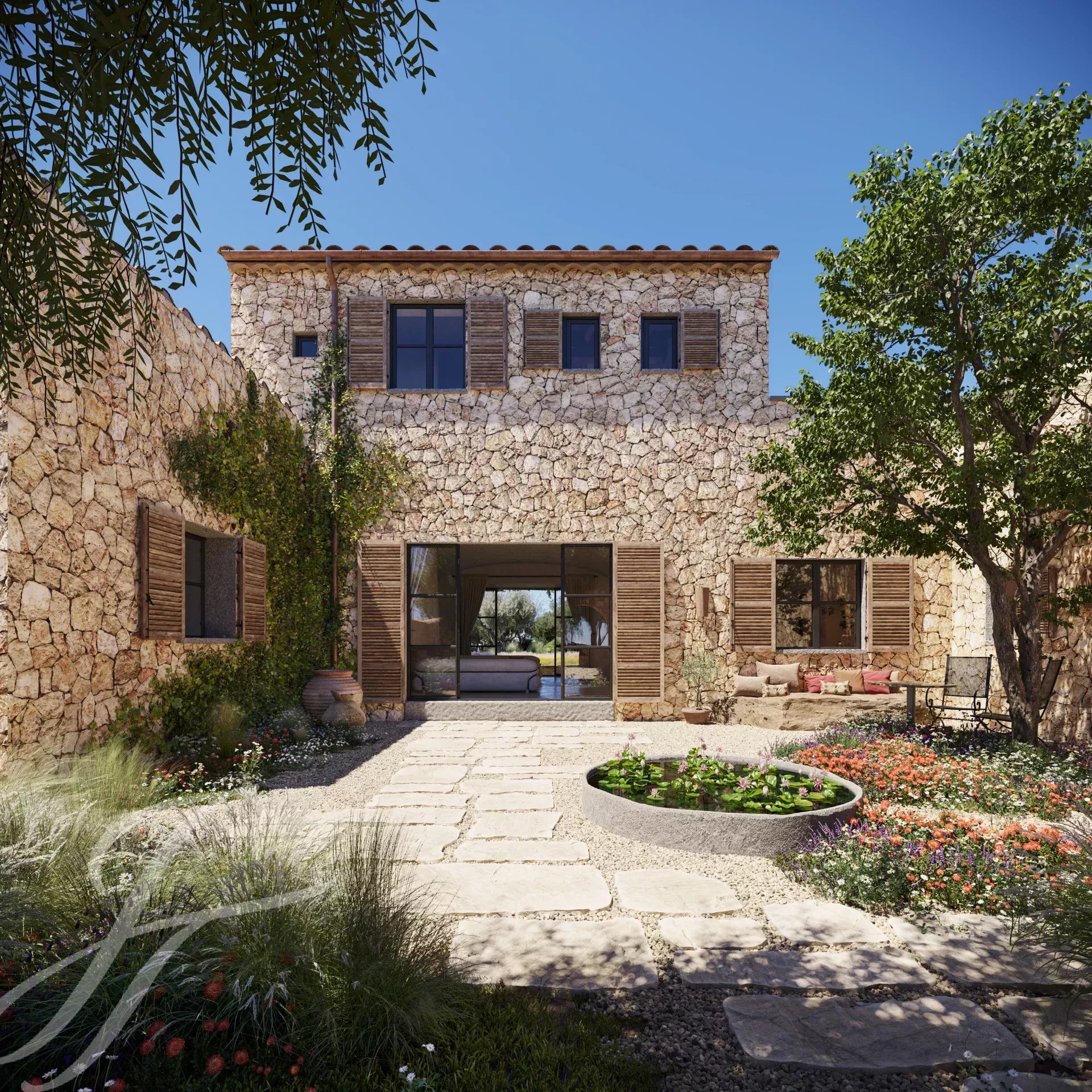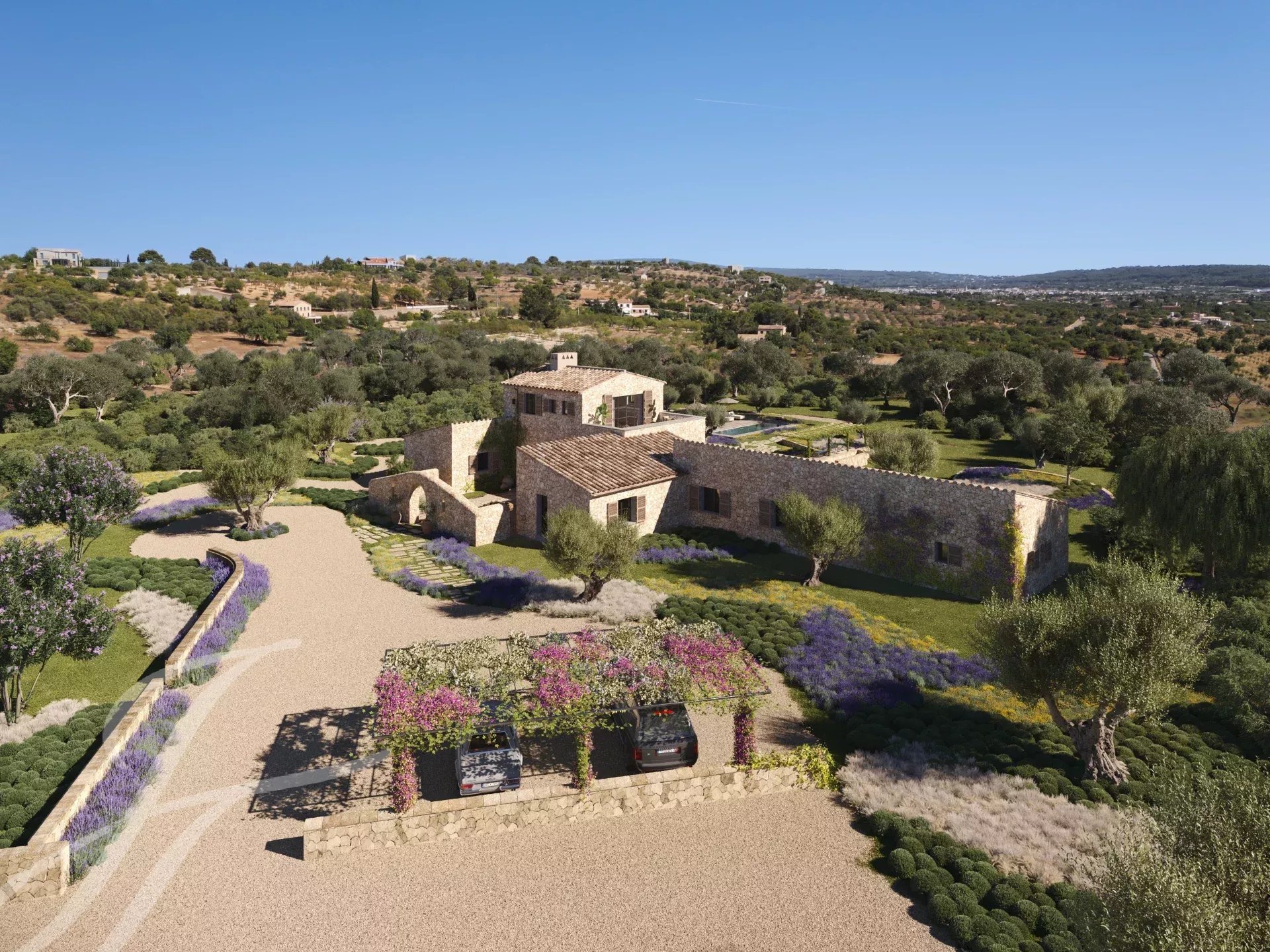 Casa Valle de los Almendros - Esta hermosa casa de campo boho-chic está en construcción en la actualidad, con finalización prevista durante Q4/2027. Situada en uno de los lugares más deseados del campo, cerca de la ciudad y del aeropuerto, asegura un acceso fácil y cómodo a la propiedad. El patio de entrada de la propiedad, la fachada de piedra, las contraventanas de madera, los techos altos con vigas de madera y también los techos abovedados junto con los suelos de piedra, las ventanas de suelo a techo y el paisaje mediterráneo crean una energía fantástica y un flujo natural en toda la casa.