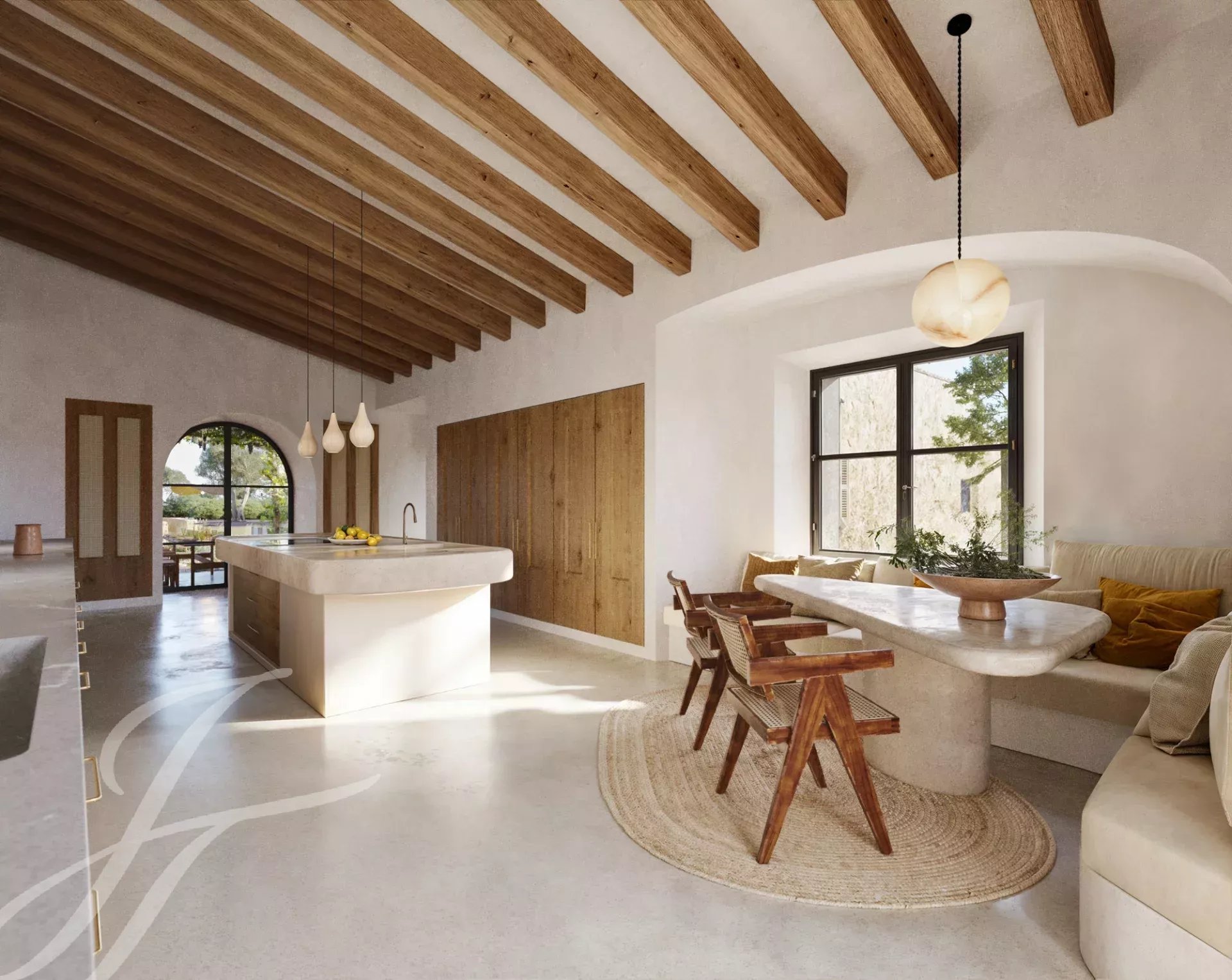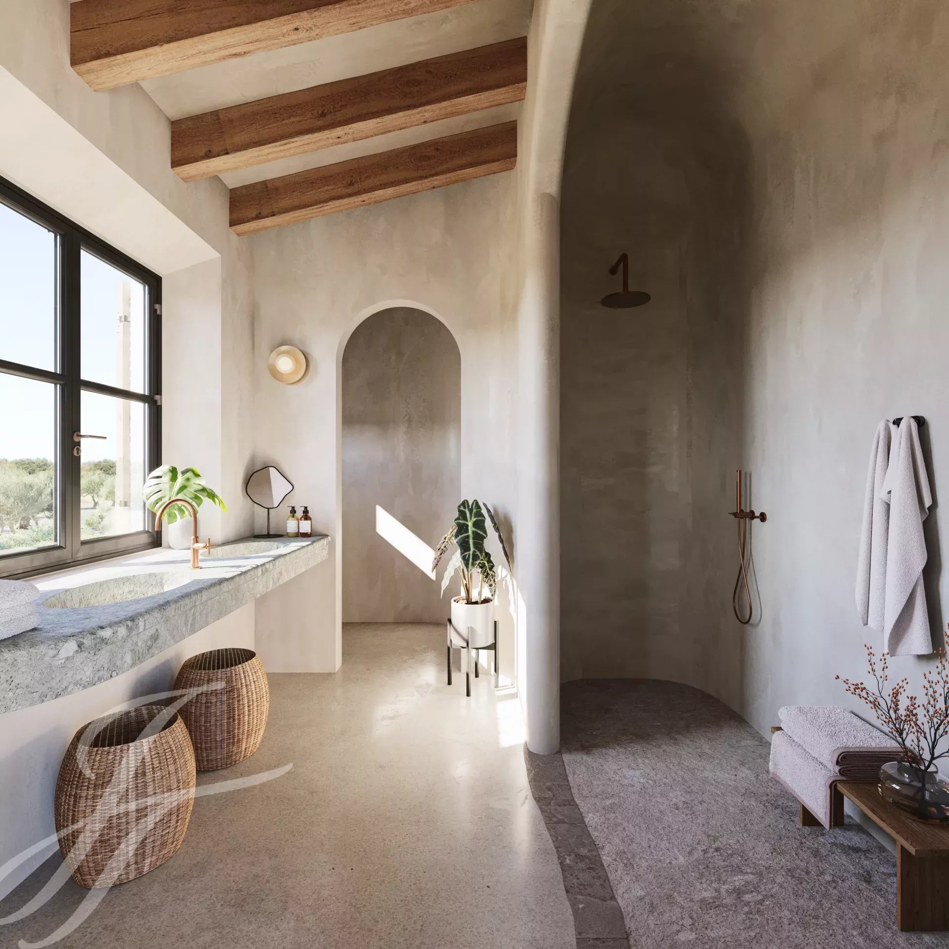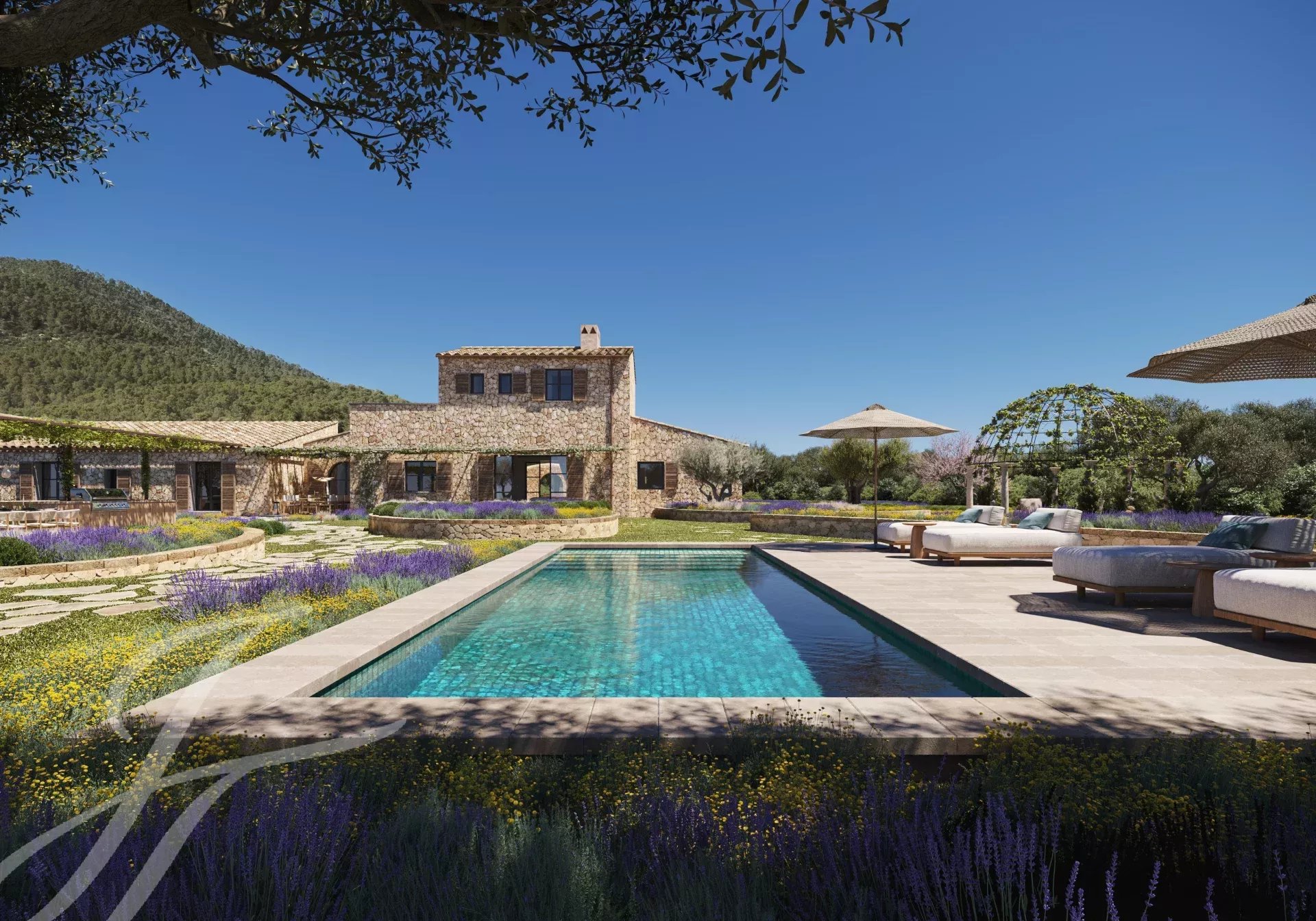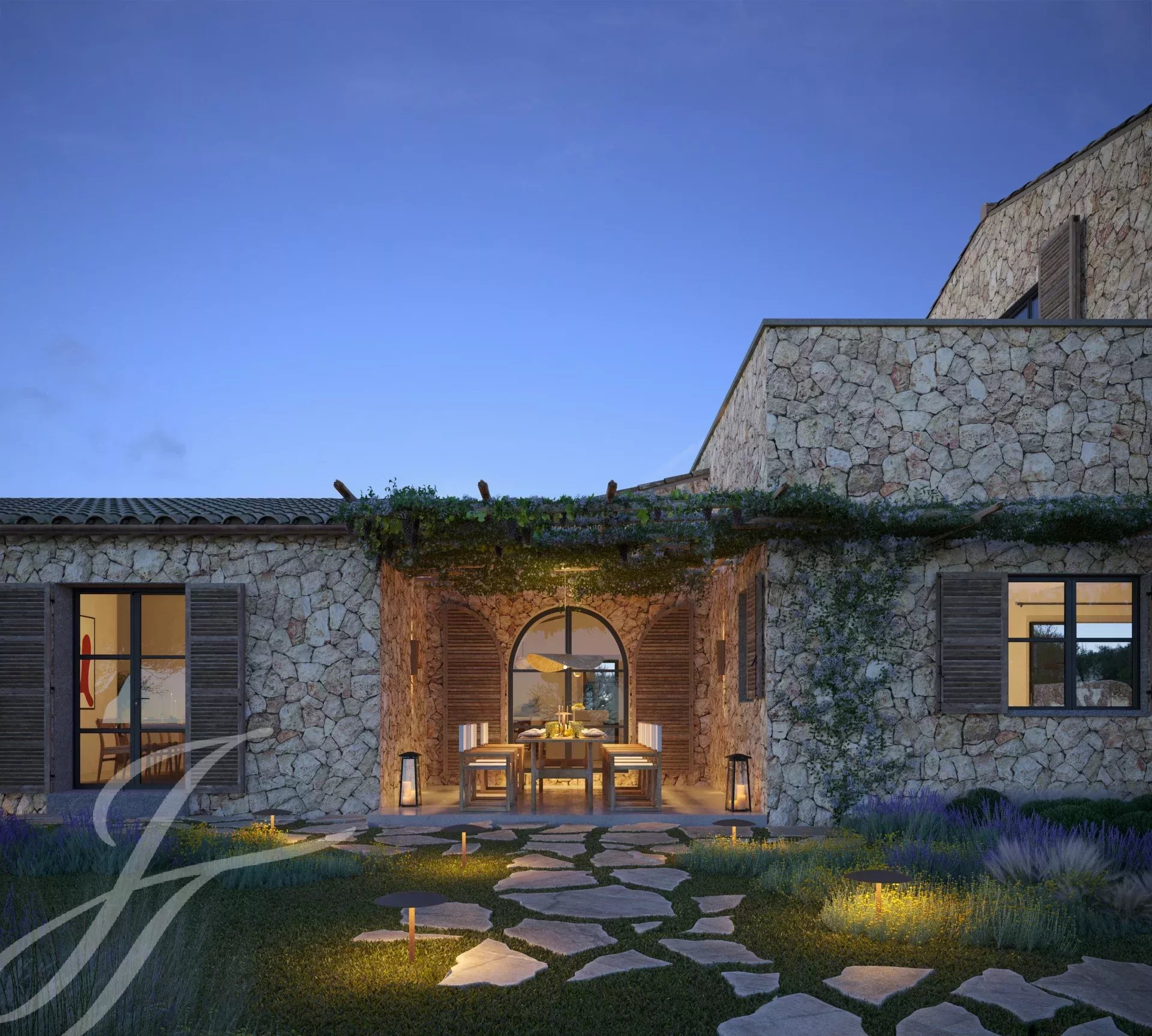 Casa Valle de los Almendros - Esta hermosa casa de campo boho-chic está en construcción en la actualidad, con finalización prevista durante Q4/2027. Situada en uno de los lugares más deseados del campo, cerca de la ciudad y del aeropuerto, asegura un acceso fácil y cómodo a la propiedad. El patio de entrada de la propiedad, la fachada de piedra, las contraventanas de madera, los techos altos con vigas de madera y también los techos abovedados junto con los suelos de piedra, las ventanas de suelo a techo y el paisaje mediterráneo crean una energía fantástica y un flujo natural en toda la casa.