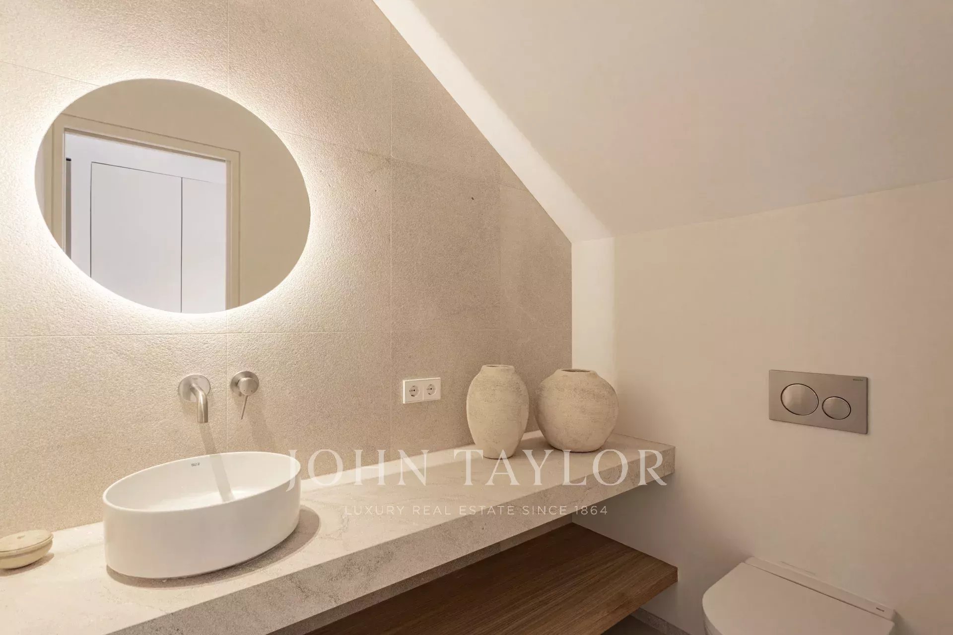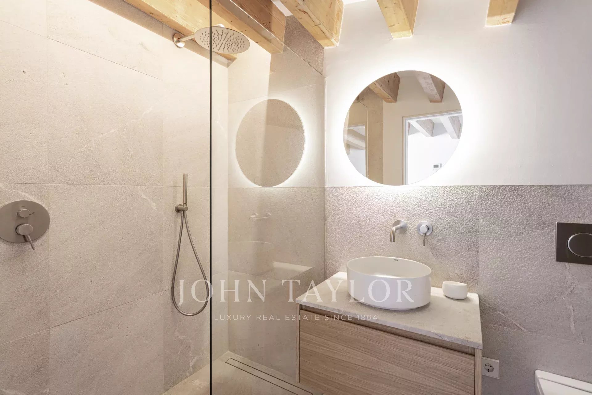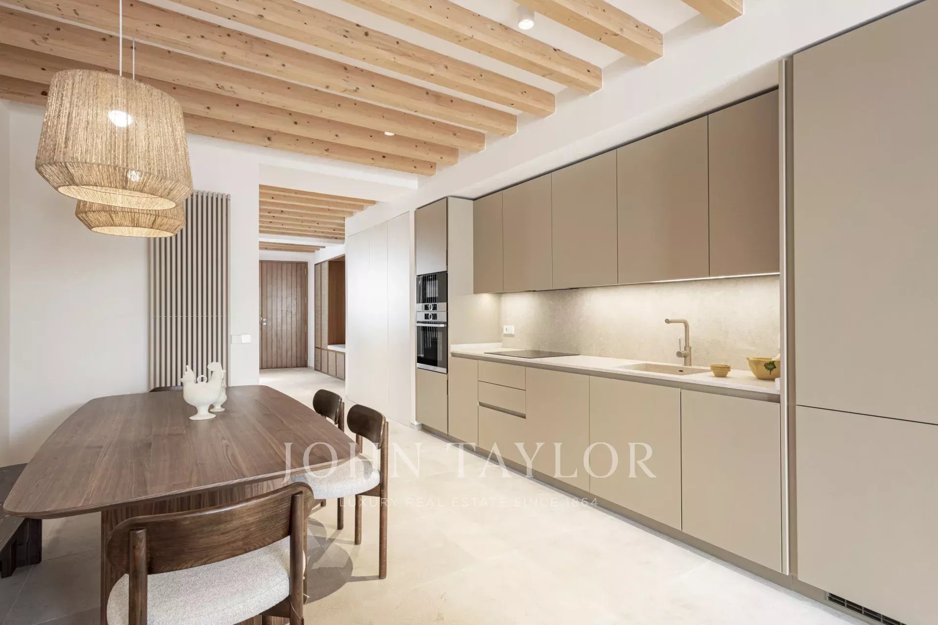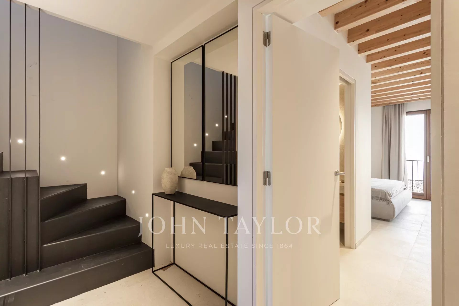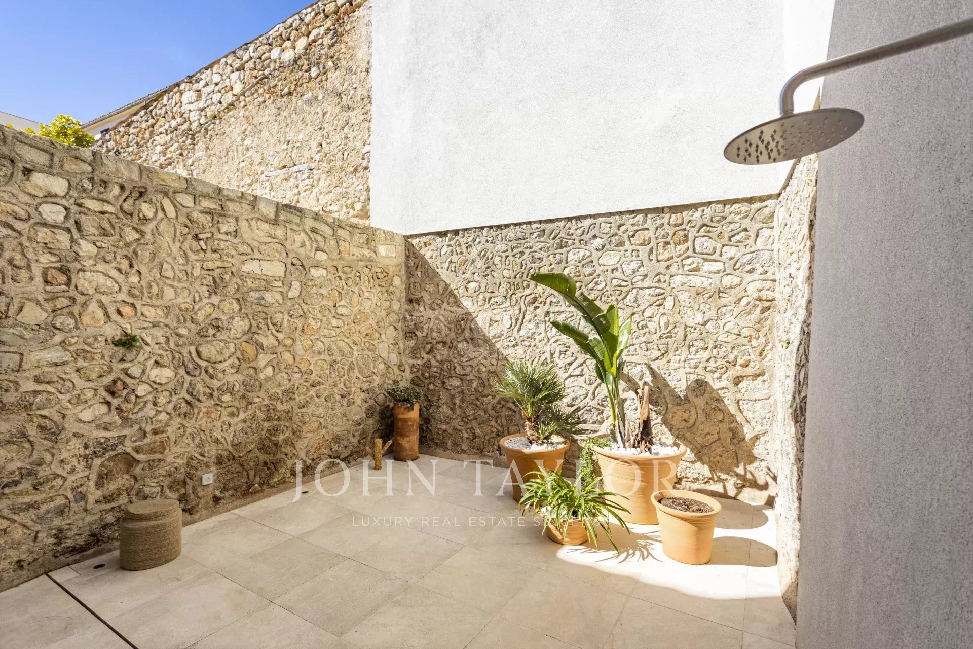Esta impresionante casa adosada de tres dormitorios, tres baños y un aseo ha sido sometida a una renovación completa, transformándola en un espacio moderno y lujoso con un toque de encanto rústico. Con una ubicación privilegiada en el centro del pueblo, a solo dos minutos a pie de la icónica iglesia, esta propiedad ofrece lo mejor de ambos mundos: comodidad urbana y el ambiente tranquilo de un entorno rural. Al ingresar a la casa, serás recibido por una sensación de calidez y elegancia. Las paredes de piedra y las vigas de madera aportan carácter y autenticidad a los espacios, mientras que los materiales de alta gama utilizados en toda la propiedad garantizan un nivel incomparable de calidad y confort. La planta baja alberga en un solo espacio la sala de estar provista de chimenea, así como un comedor y una cocina de diseño totalmente equipada con electrodomésticos de última generación y acabados de primera calidad. Desde aquí, se accede a una de las dos terrazas, donde podrás disfrutar de comidas al aire libre o simplemente relajarte bajo el cálido sol mediterráneo. La propiedad dispone de radiadores en todas las estancias además de aire acondicionado por conducto.