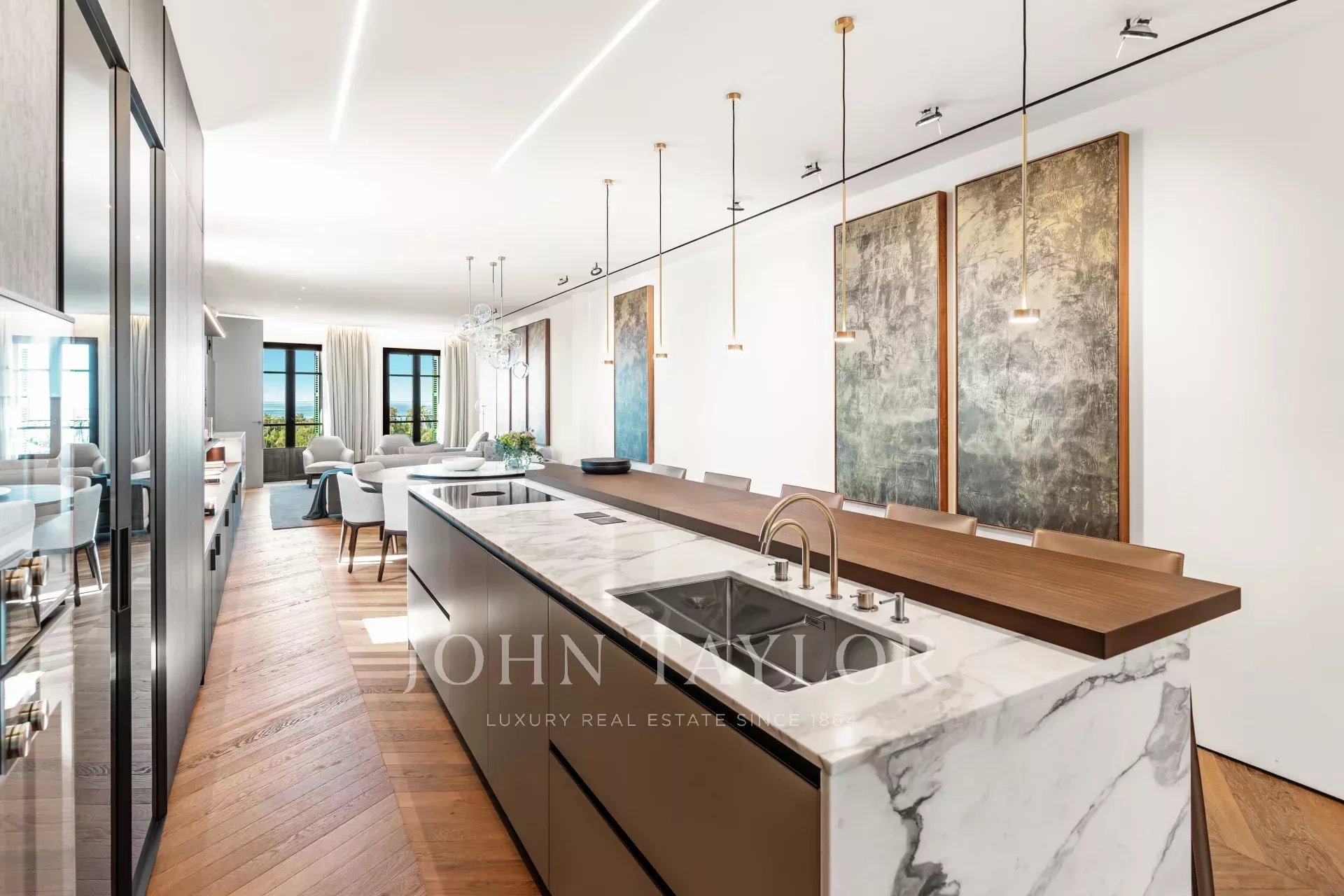 La propiedad ofrece 792 m2 de superficie habitable interior construida en cuatro plantas, accesibles mediante ascensor. El elegante interior se ha transformado para ofrecer cuatro exquisitas suites con armarios empotrados y vistas al mar, tres elegantes salones diáfanos con chimeneas, un spa con sauna y baño turco, un gimnasio y una zona de ocio realmente espectacular. Una impresionante terraza adicional de 120 m2 en la azotea con barbacoa de gas, amplio comedor, salón y zona chill-out es el lugar perfecto para disfrutar del exterior de la propiedad, ya sea para tomar el sol, relajarse o entretenerse con amigos y familiares.