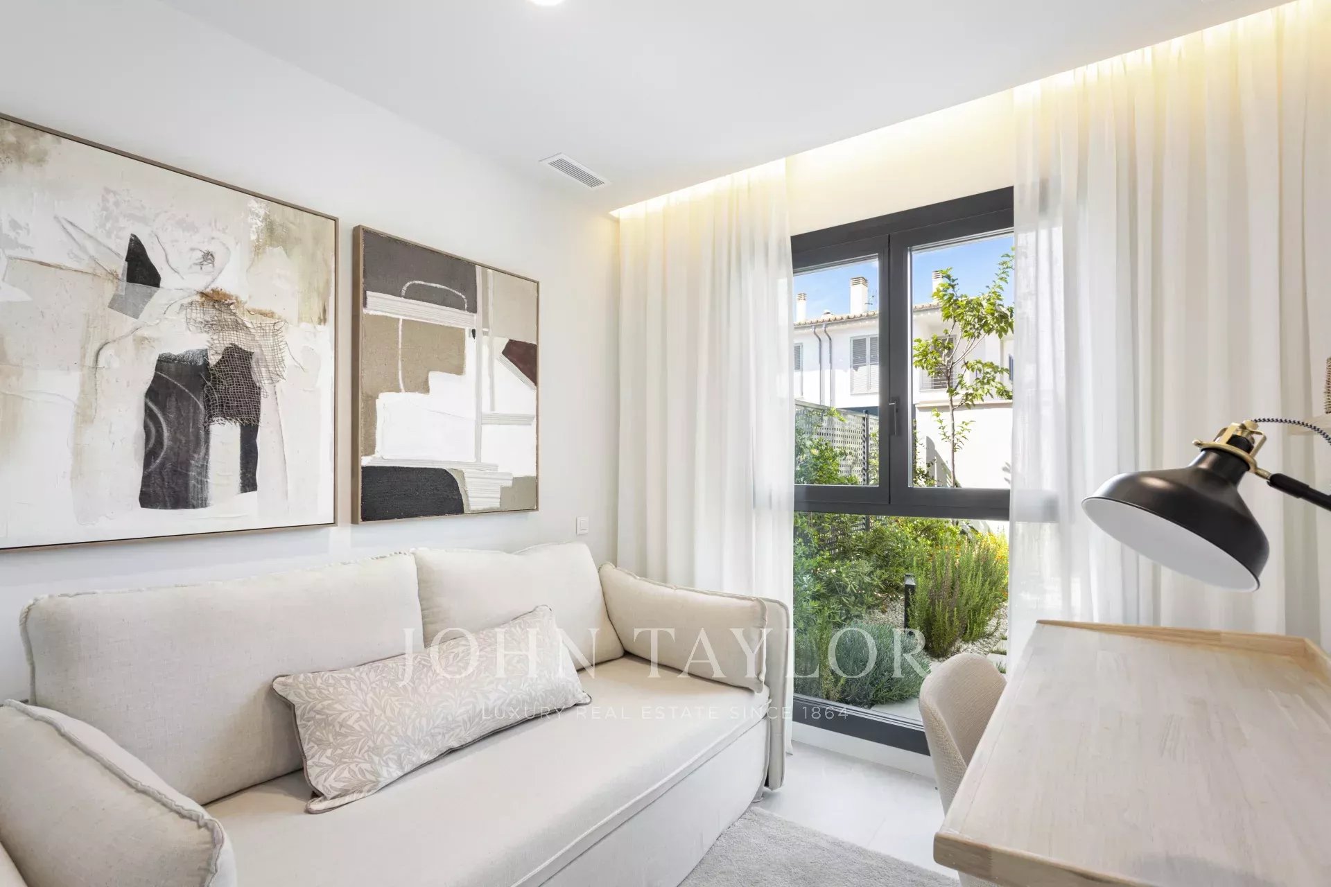 En la parte trasera, un jardín privado con porche y piscina invita a relajarte, recibir invitados y disfrutar del maravilloso clima de Mallorca mientras cuidas de tu bienestar.