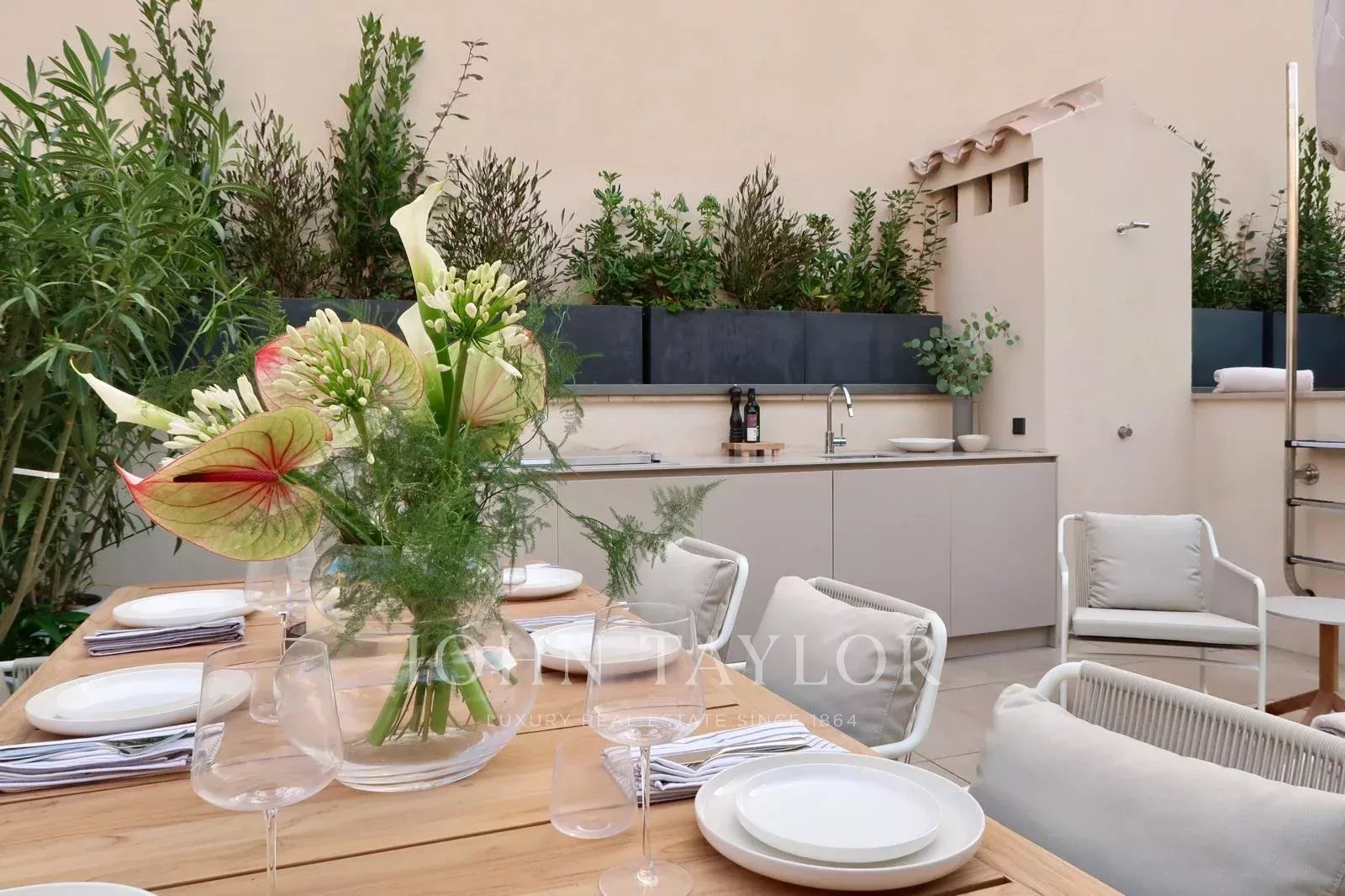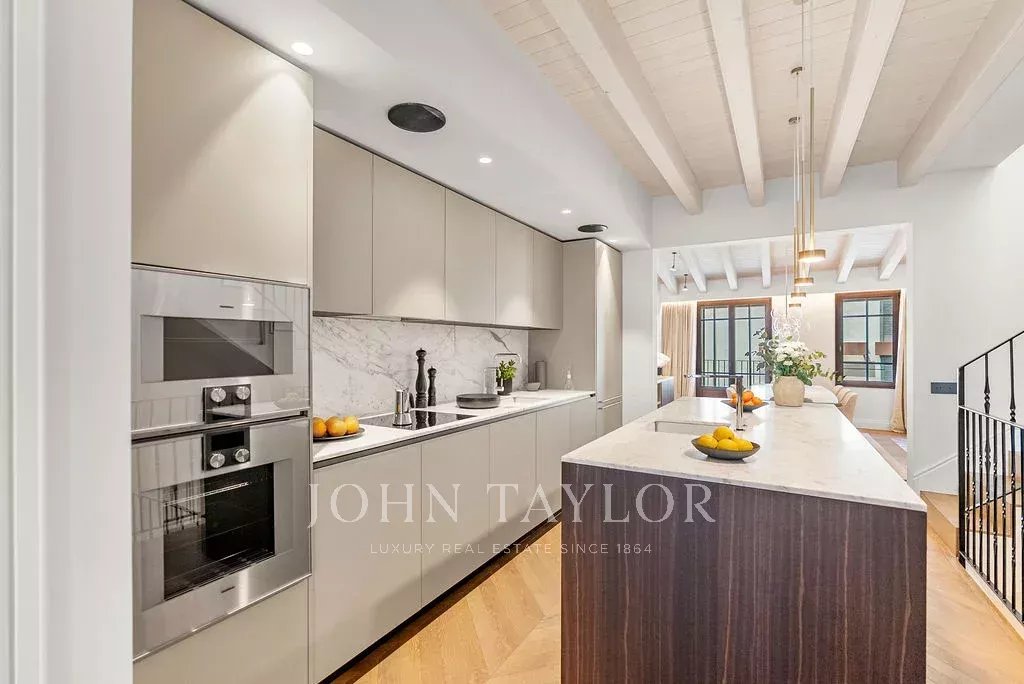 Townhouse Llorenc cuenta con una gran variedad de marcas de primera calidad y elementos hechos a medida, como carpintería Poliform, electrodomésticos Gaggenau y Miele, iluminación Giopato & Coombes, sistemas de audio Bang & Olufsen, muebles de exterior Roda y textiles Loro Piana. Otros elementos destacados son los detalles de mármol diseñados a medida, la iluminación de Flos, los accesorios de Vola y los altavoces Sonance Invisible, todos ellos seleccionados para crear una experiencia de vida incomparable.