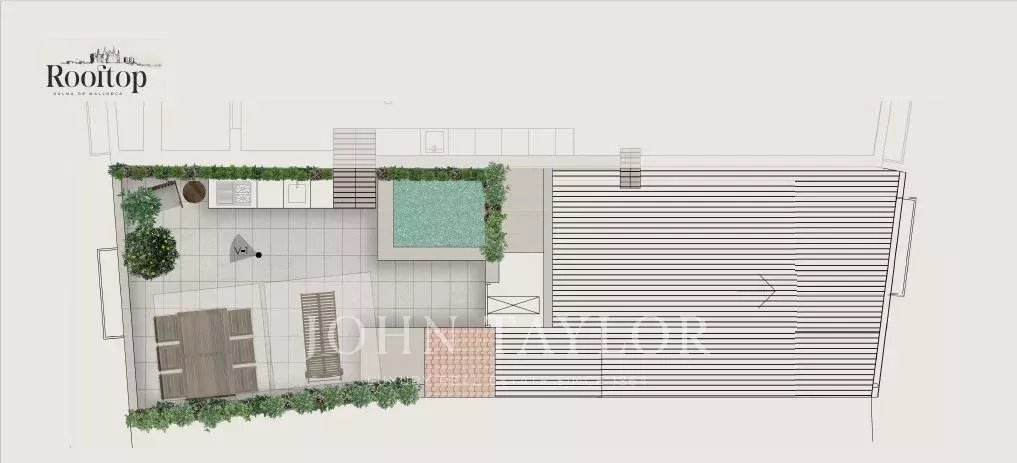 Terraza en la azotea: La joya de la corona de la propiedad, la terraza de la azotea, ofrece un espacio idílico para la relajación y el entretenimiento. Disfrute de una piscina privada, una cocina de verano, una ducha exterior y zonas dedicadas a comer, descansar y relajarse, todo ello con impresionantes vistas del horizonte histórico de Palma.