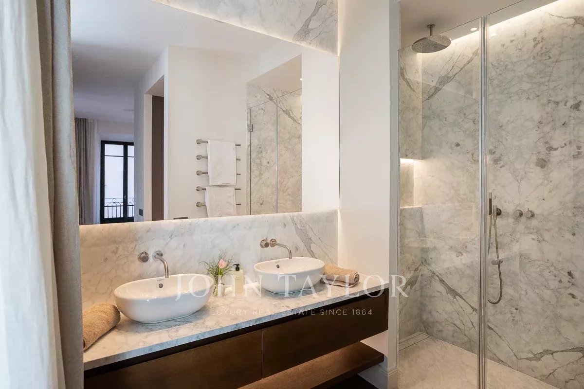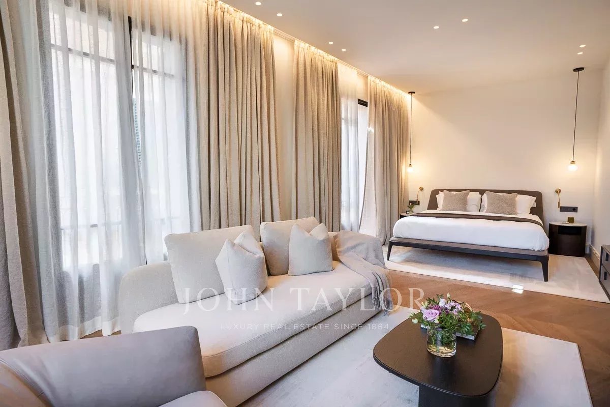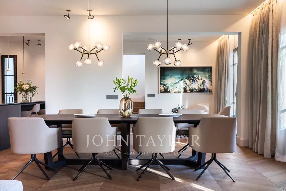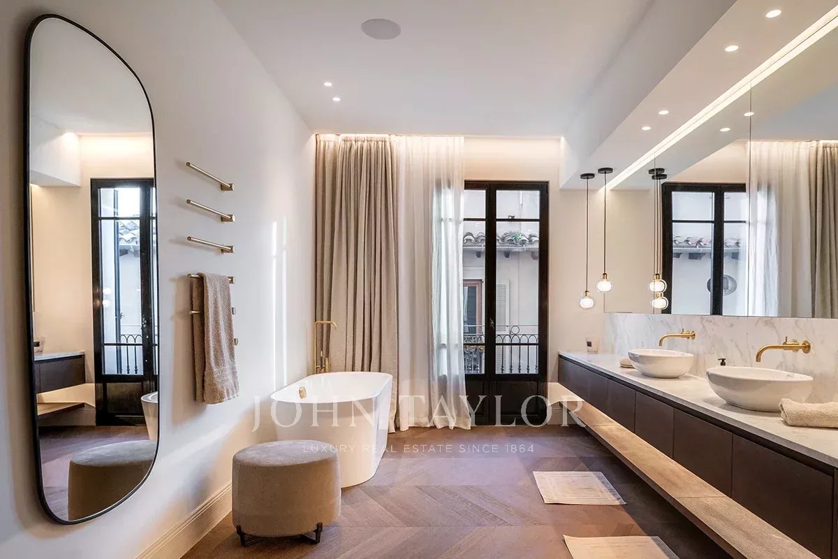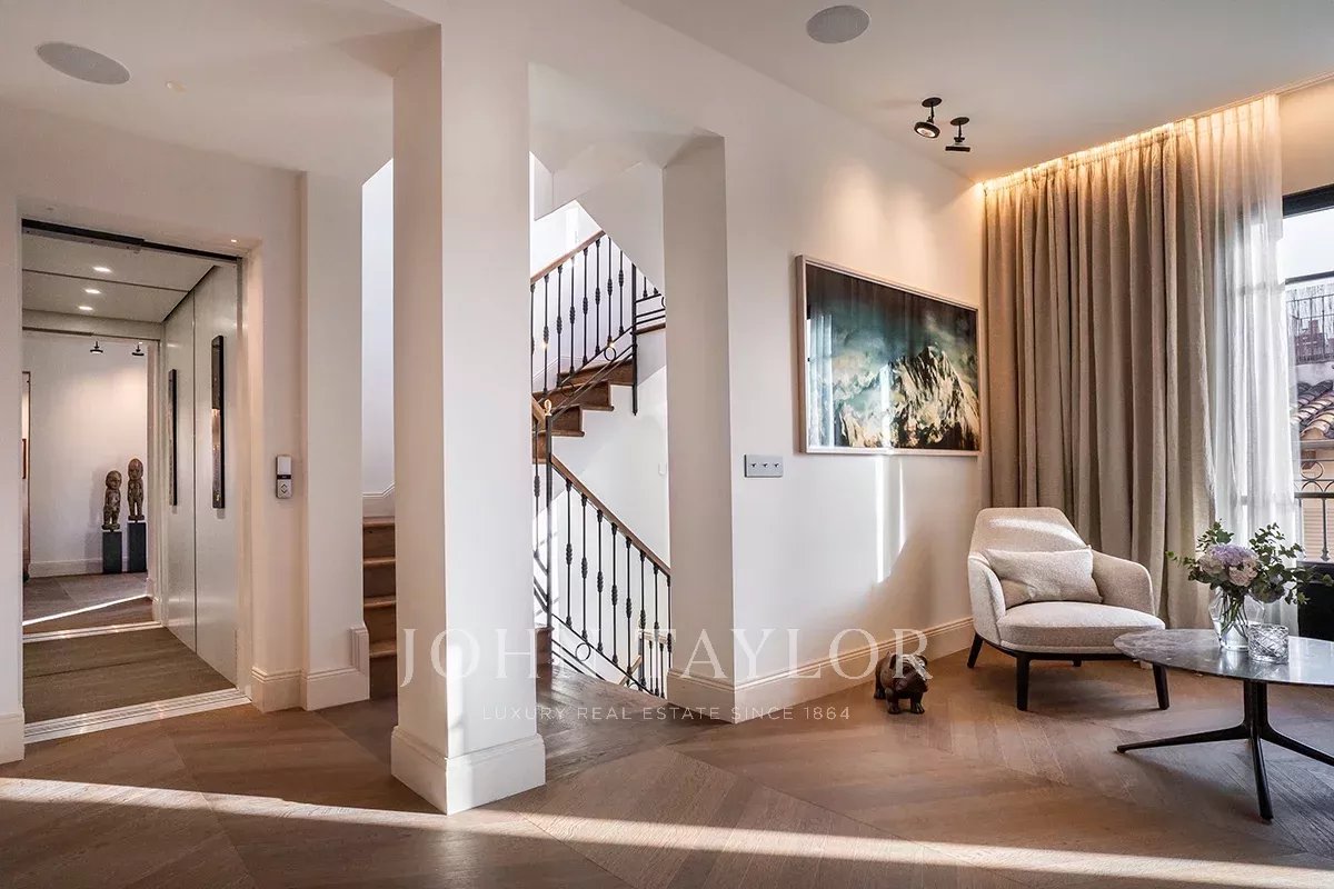 Las principales características de la propiedad son 5 dormitorios y 5 baños, incluyendo una suite principal única en su piso privado y un apartamento de invitados / personal, 4 aseos, una oficina privada del propietario, una impresionante sala de estar con un bar de cócteles personalizado, una biblioteca privada con vistas al mar, 3 cocinas, incluyendo un área perfecta para la celebración de veladas, eventos o reuniones de la junta, una de las mejores terrazas privadas de 80 metros cuadrados en el casco antiguo y una exclusiva "Terraza Champagne" con vistas panorámicas al Mediterráneo / montaña. La propiedad se completa con calefacción por suelo radiante, aire acondicionado central y aparcamiento privado.