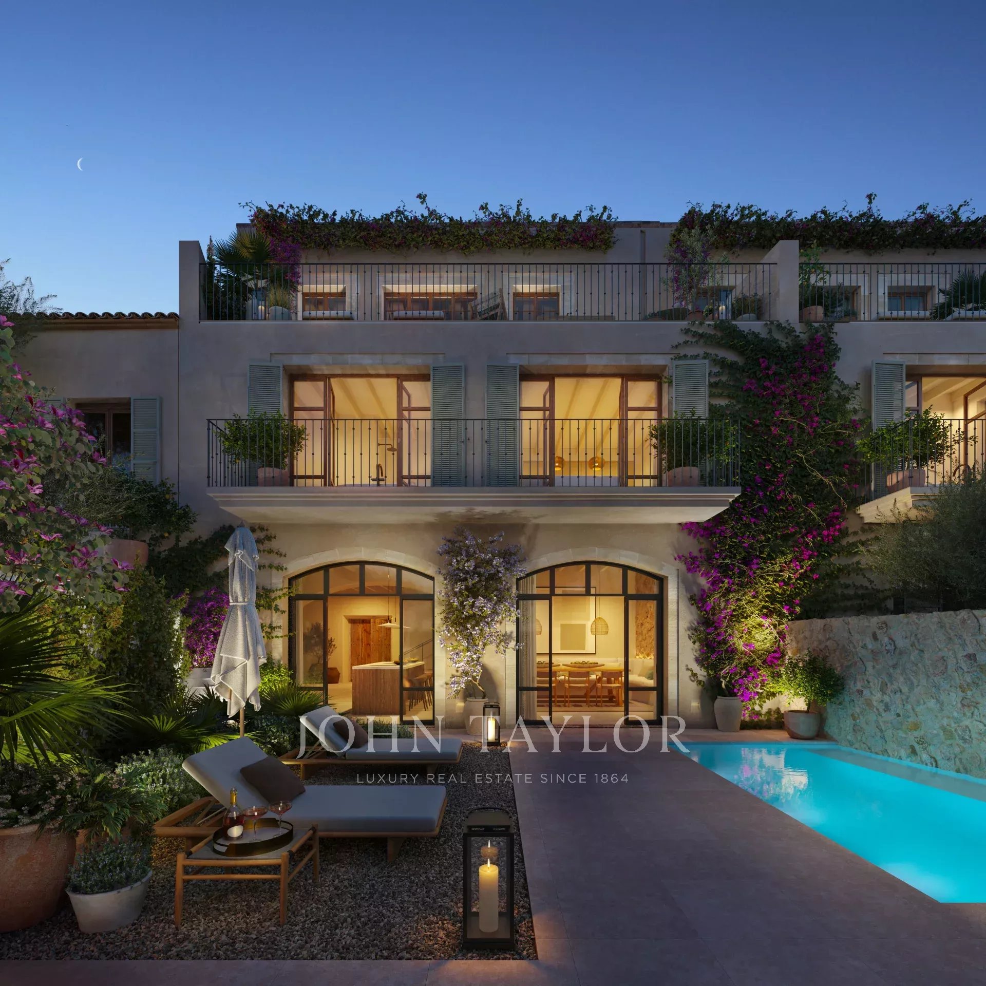 Esta casa adosada con piscina se está construyendo en una calle tranquila del acogedor y hermoso pueblo de Santa María, a pocos pasos del centro de la ciudad con sus animados cafés, restaurantes y gente. La propiedad tendrá una fachada tradicional y un interior moderno y de alta calidad. Las grandes puertas de madera dan paso a una maravillosa casa, distribuida en 3 plantas. También viene con un garaje privado, un jardín con piscina, así como una terraza en cada nivel de la casa que ofrece una impresionante vista a la montaña de Tramuntana. Esta propiedad, que combina a la perfección la arquitectura tradicional mallorquina con la vida contemporánea, no deja nada que desear.