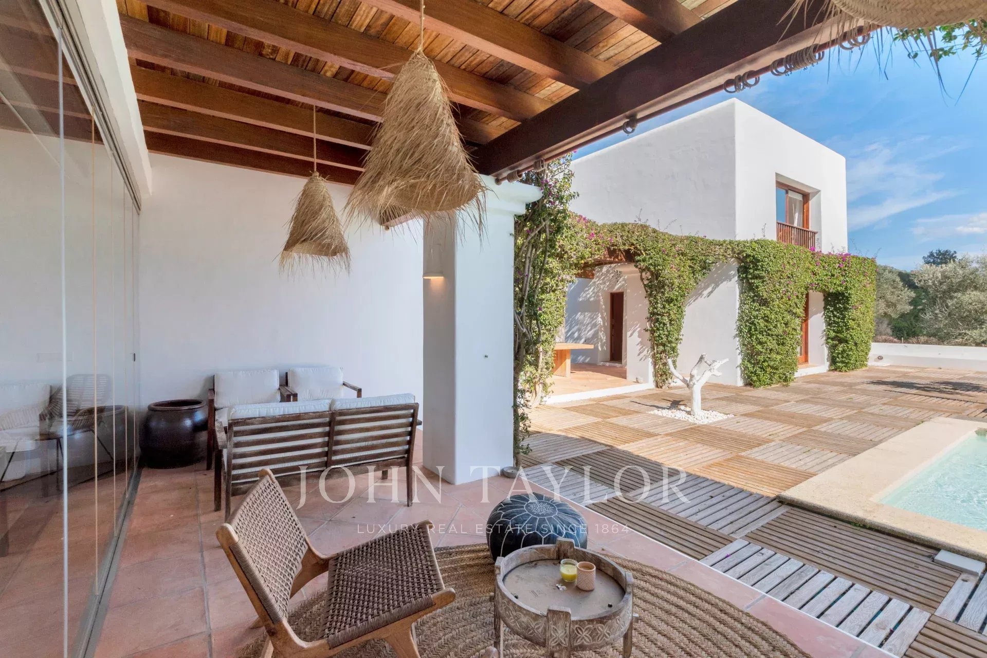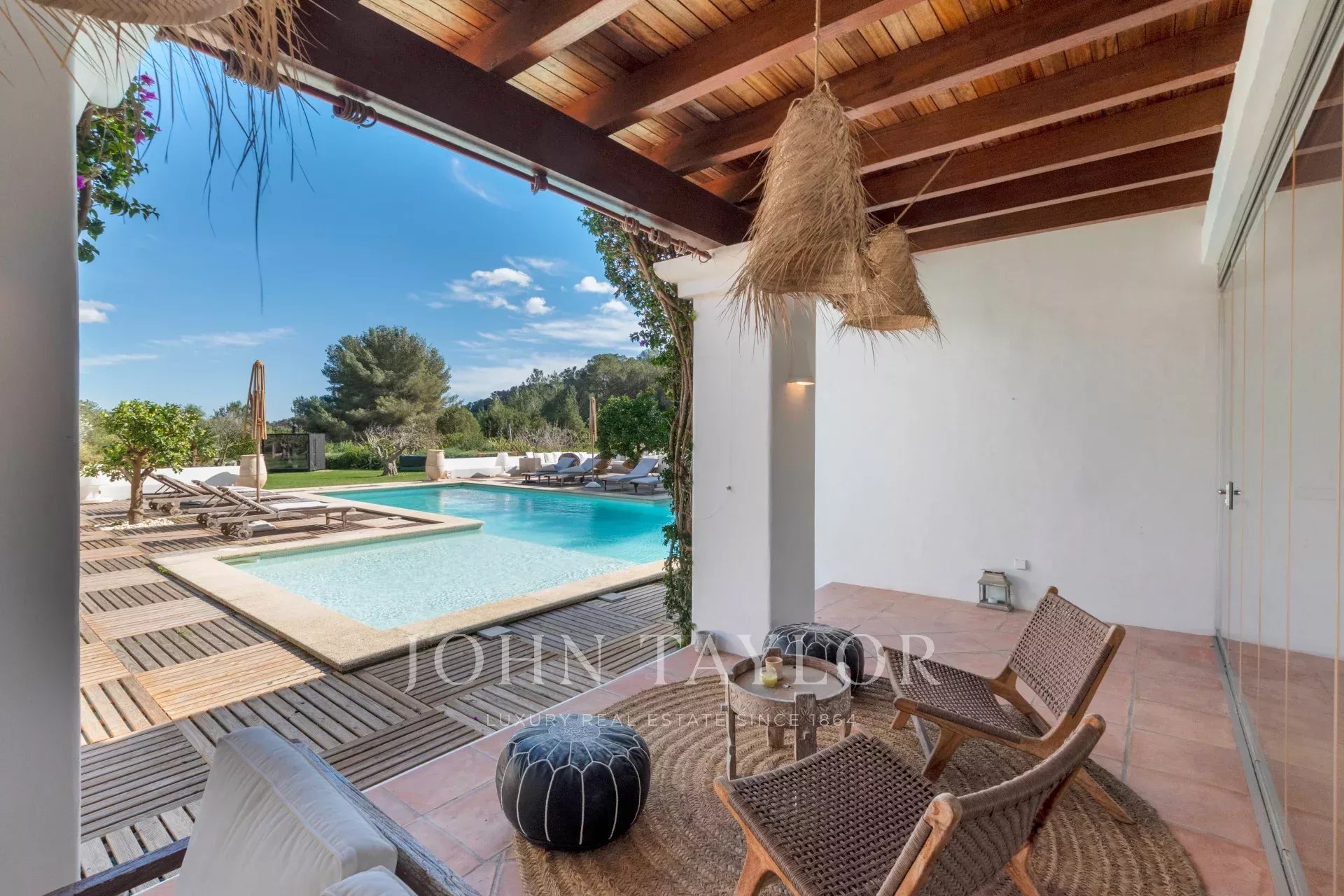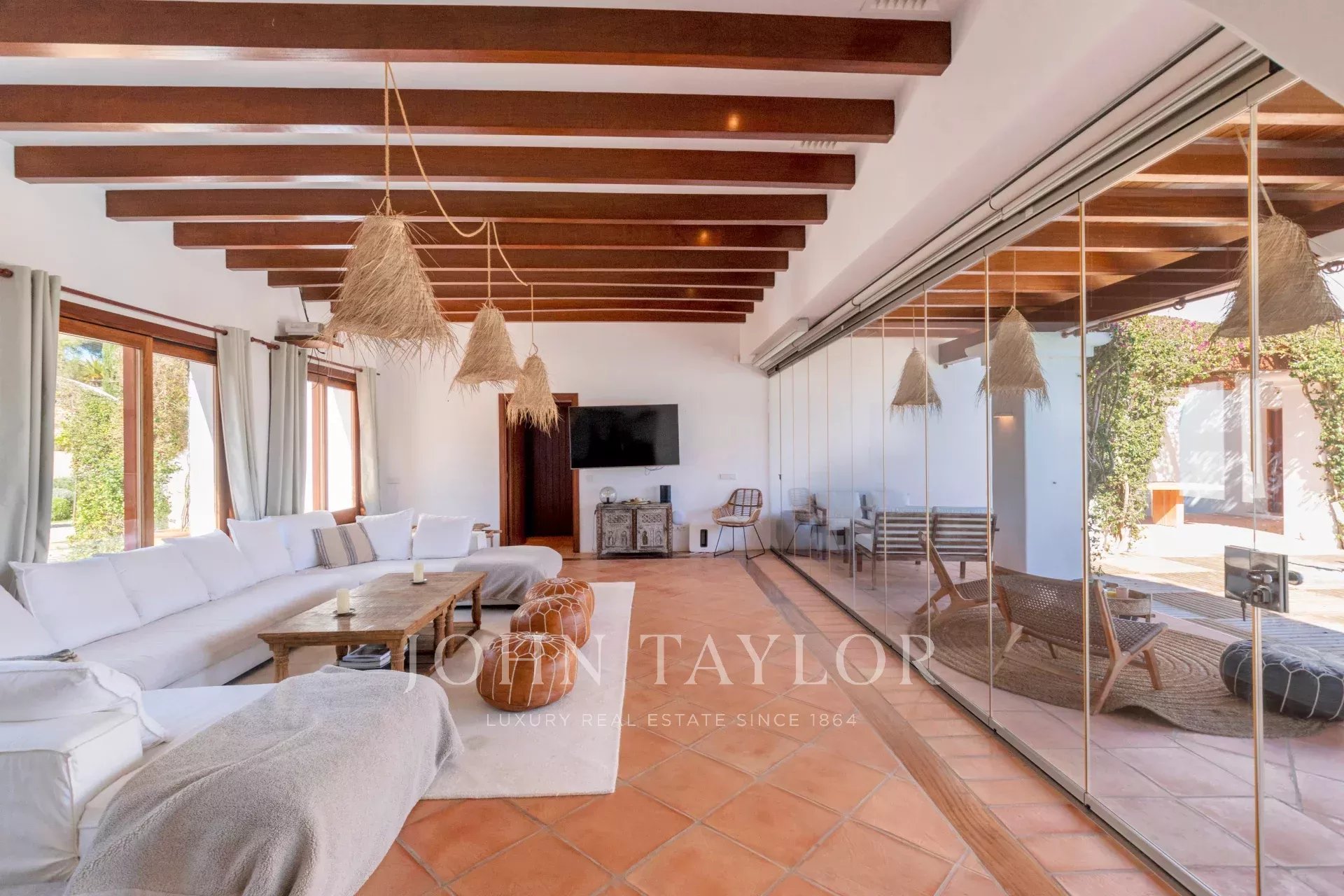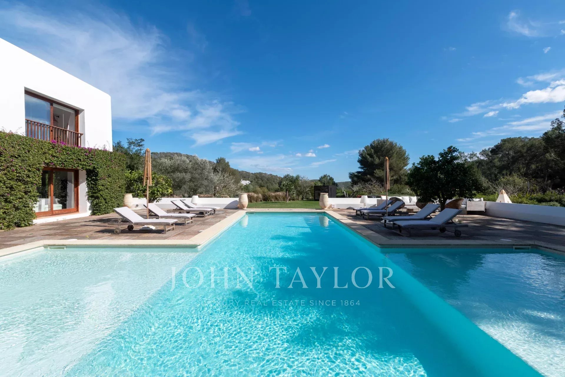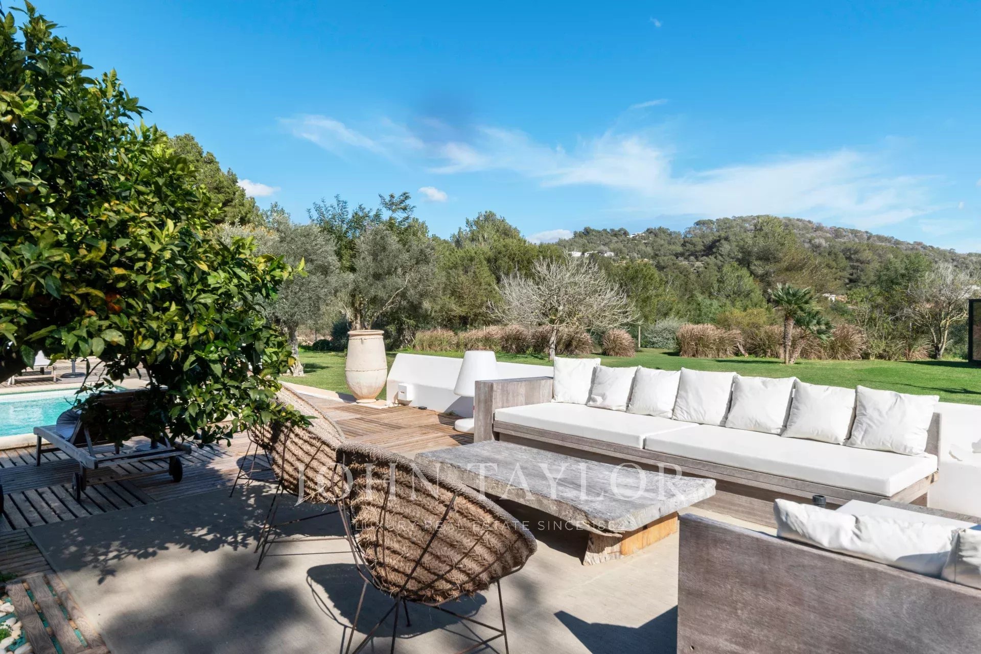Las generosas dimensiones de la finca, su exquisita estética y su impecable mantenimiento se combinan con una ubicación privilegiada, a solo 10 minutos de la vibrante marina de Ibiza.