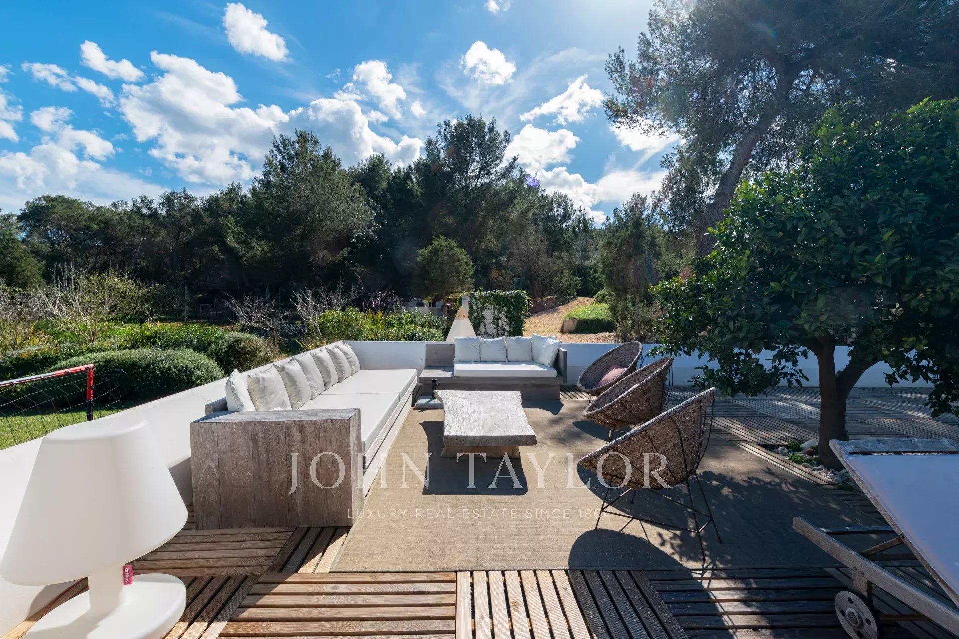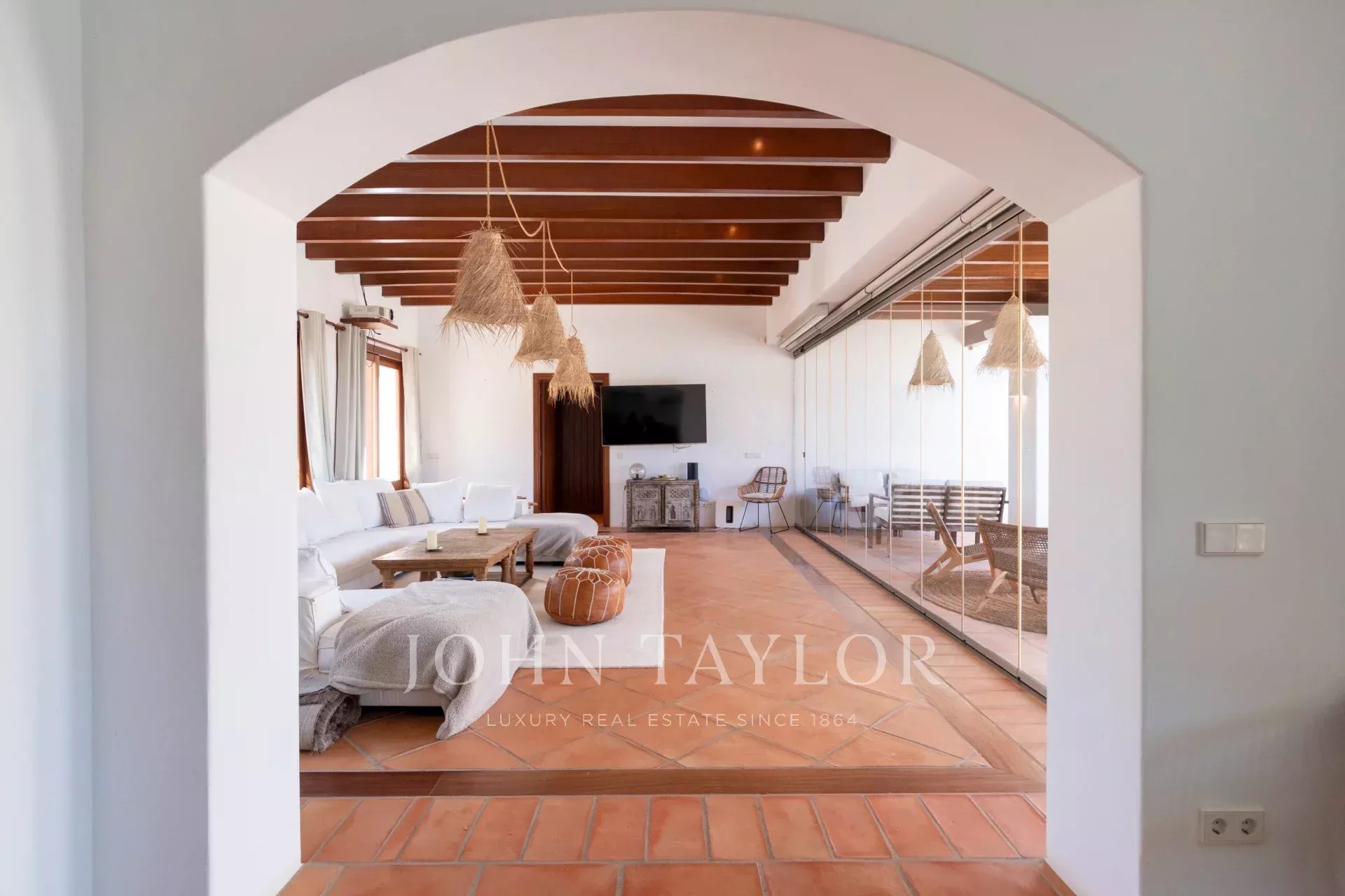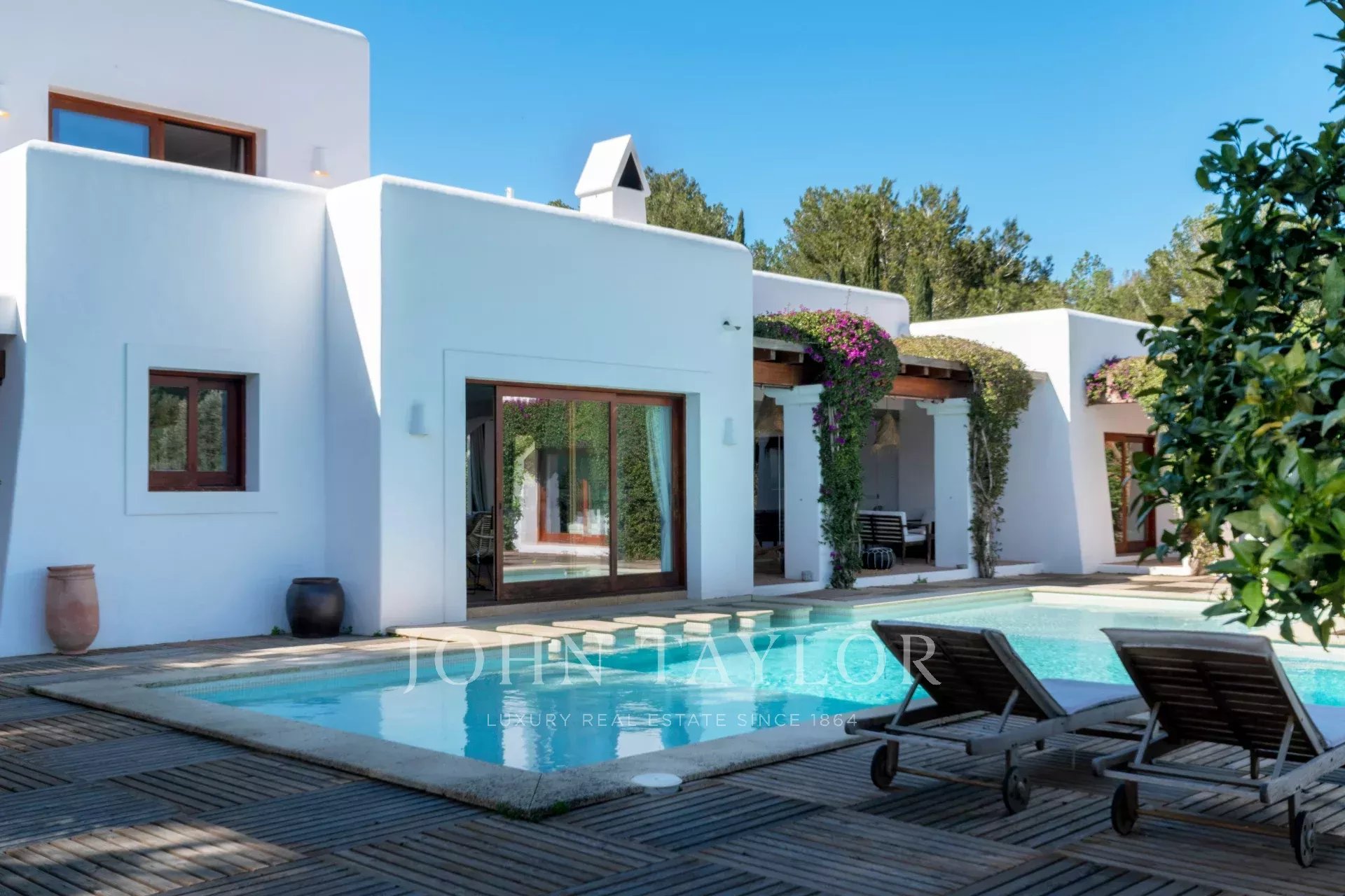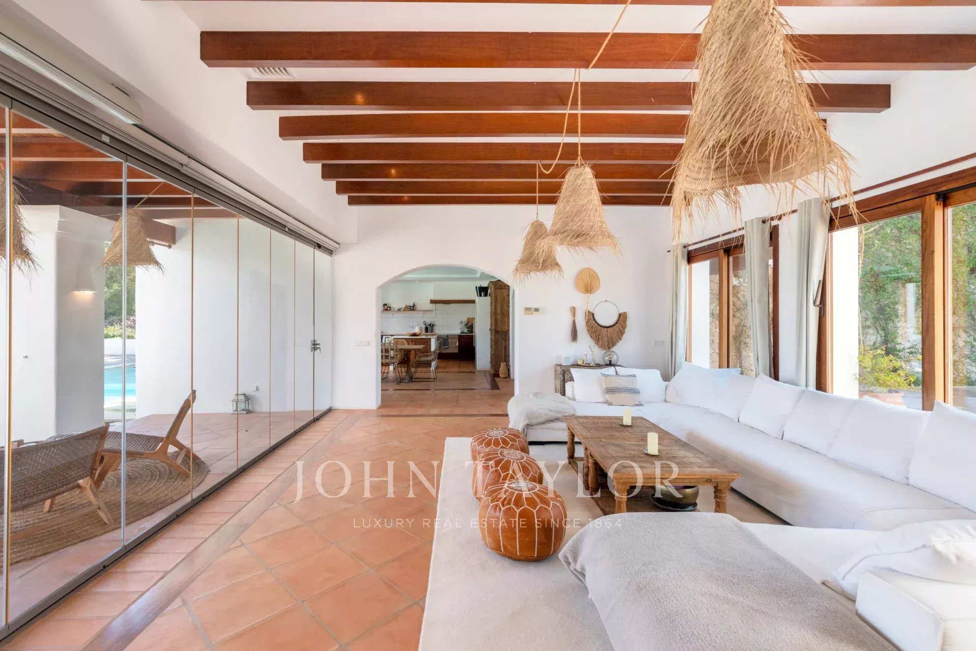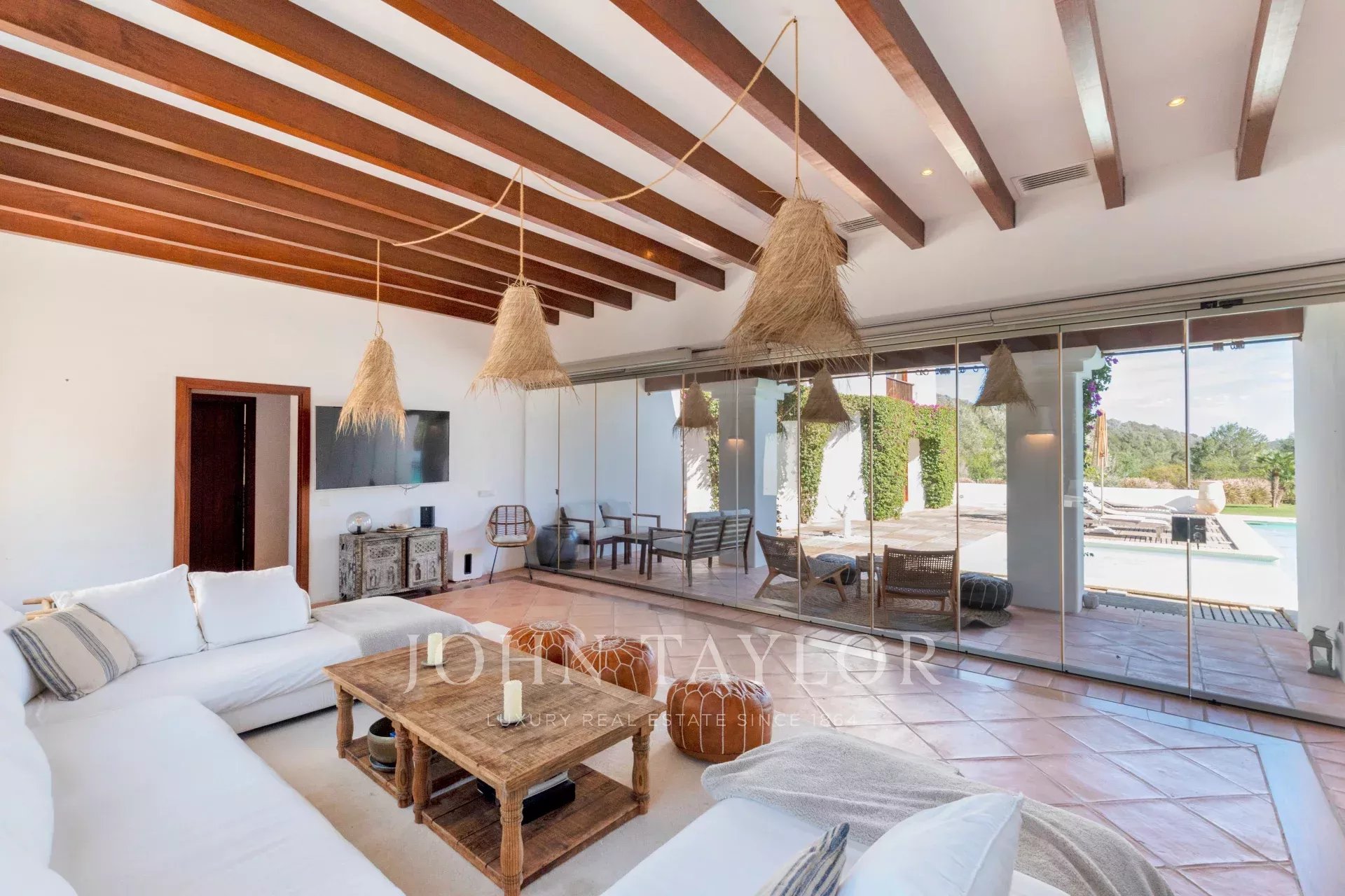 Las generosas dimensiones de la finca, su exquisita estética y su impecable mantenimiento se combinan con una ubicación privilegiada, a solo 10 minutos de la vibrante marina de Ibiza.