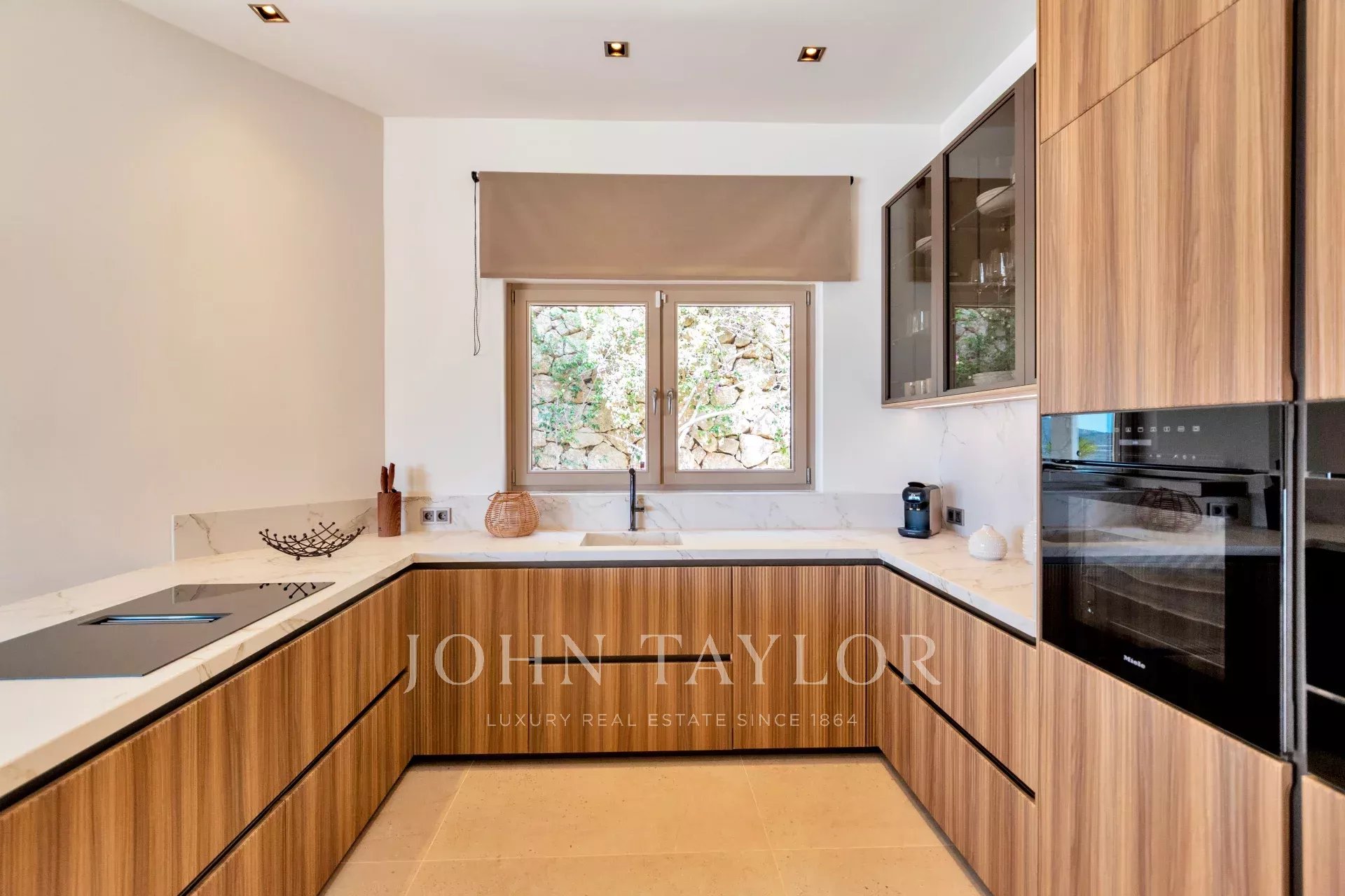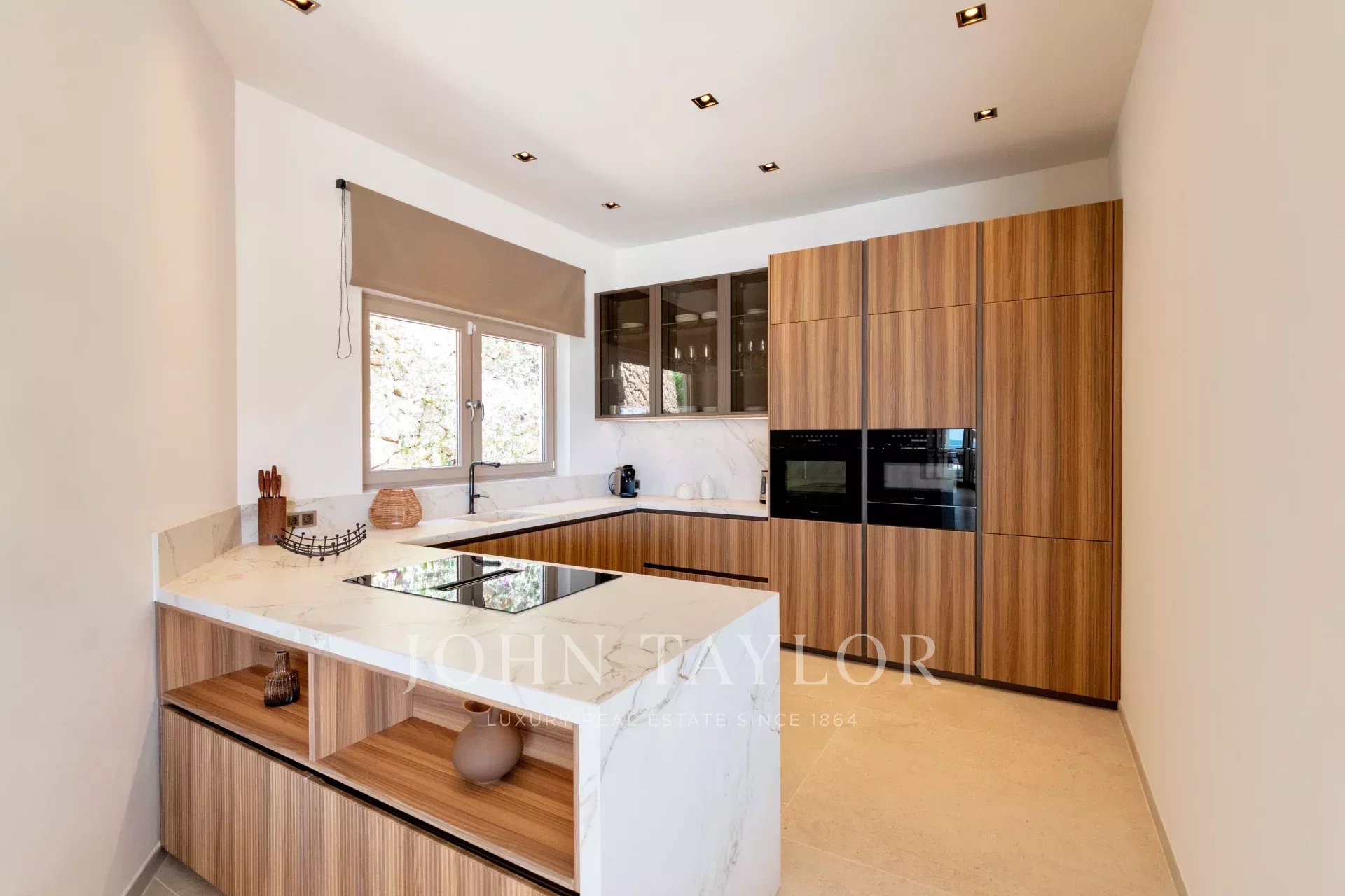 En la parte superior de la propiedad se encuentra un exclusivo garaje diseñado como showroom, con capacidad para varios vehículos. Además, la villa se corona con una amplia terraza del tamaño de la propiedad, ideal para eventos sociales, tomar el sol o simplemente disfrutar de las vistas en completa privacidad.