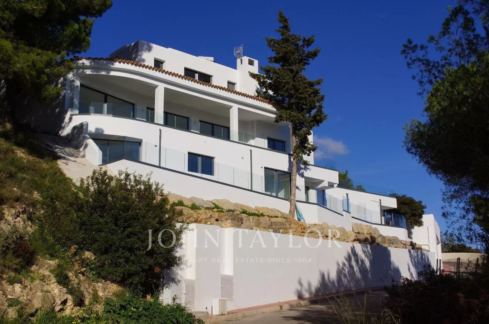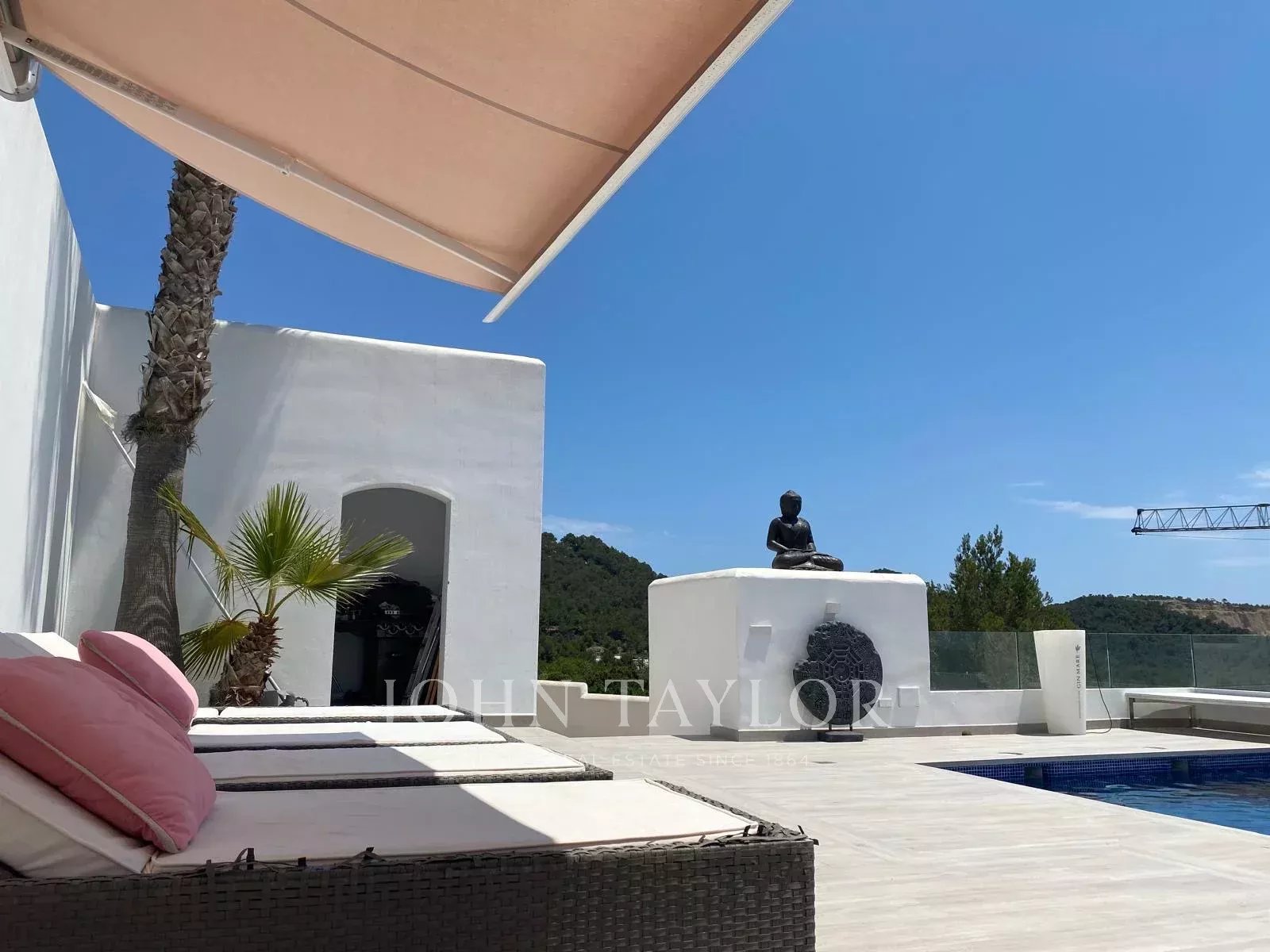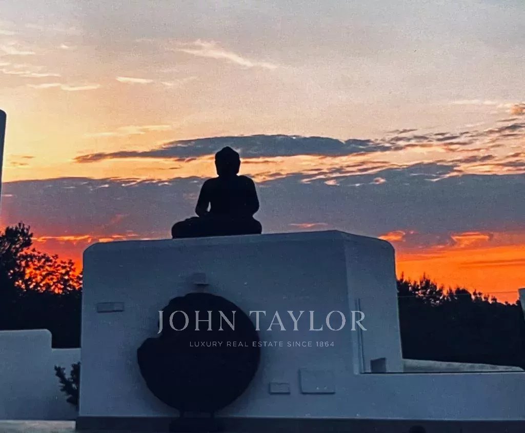 Esta villa independiente se encuentra en la exclusiva urbanización cerrada de Can Furnet, una de las zonas residenciales más cotizadas de Ibiza. Situada en una posición elevada al final de una calle sin salida, la propiedad ofrece privacidad y vistas panorámicas de la isla, incluyendo Formentera y el paisaje natural circundante.