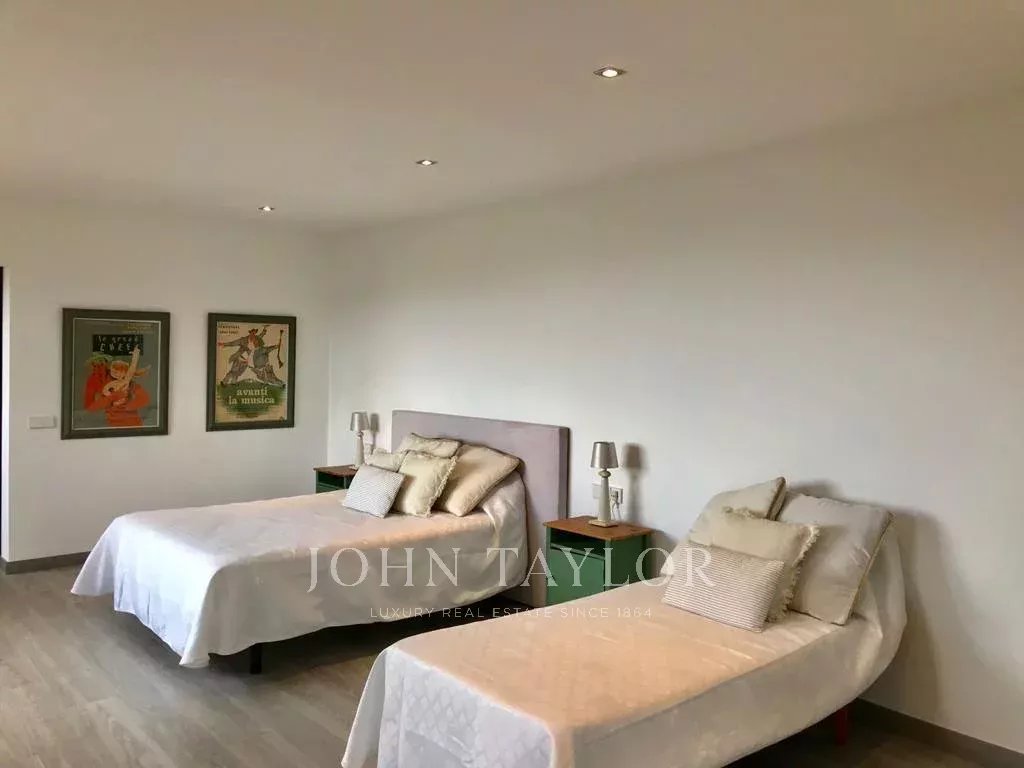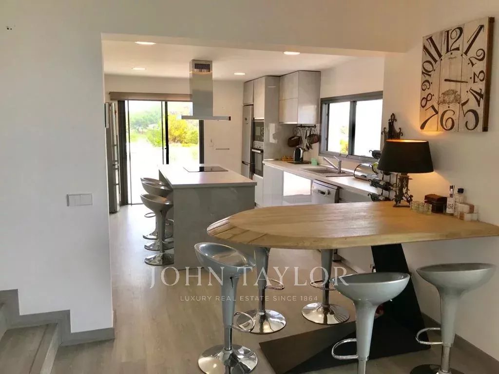 Con 560 m² construidos, la villa dispone de amplios interiores con gran potencial de reforma, ideales para adaptarlos a una vivienda familiar o a un espacio para recibir invitados. Cuenta con cinco dormitorios con baño en suite, garantizando comodidad y privacidad. Terrazas y balcones rodean la casa, invitando a disfrutar del ambiente mediterráneo, mientras que su orientación suroeste permite luz natural durante todo el día y vistas al atardecer.