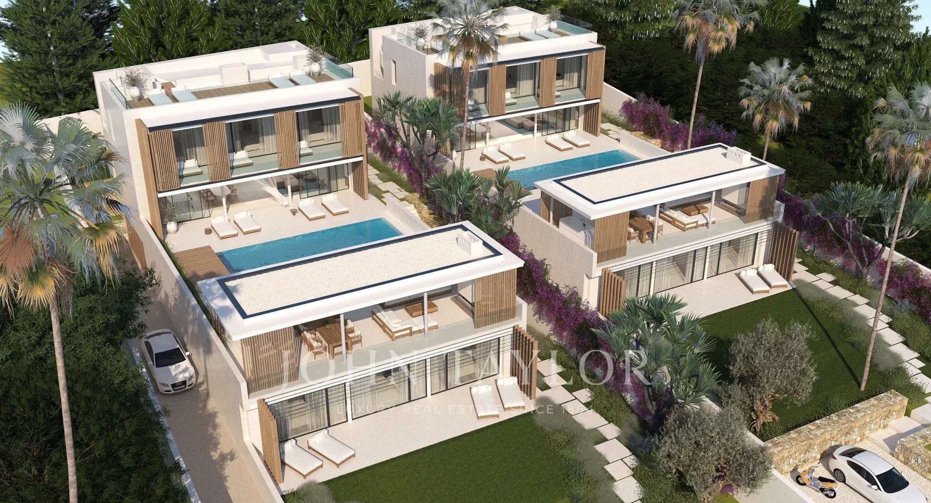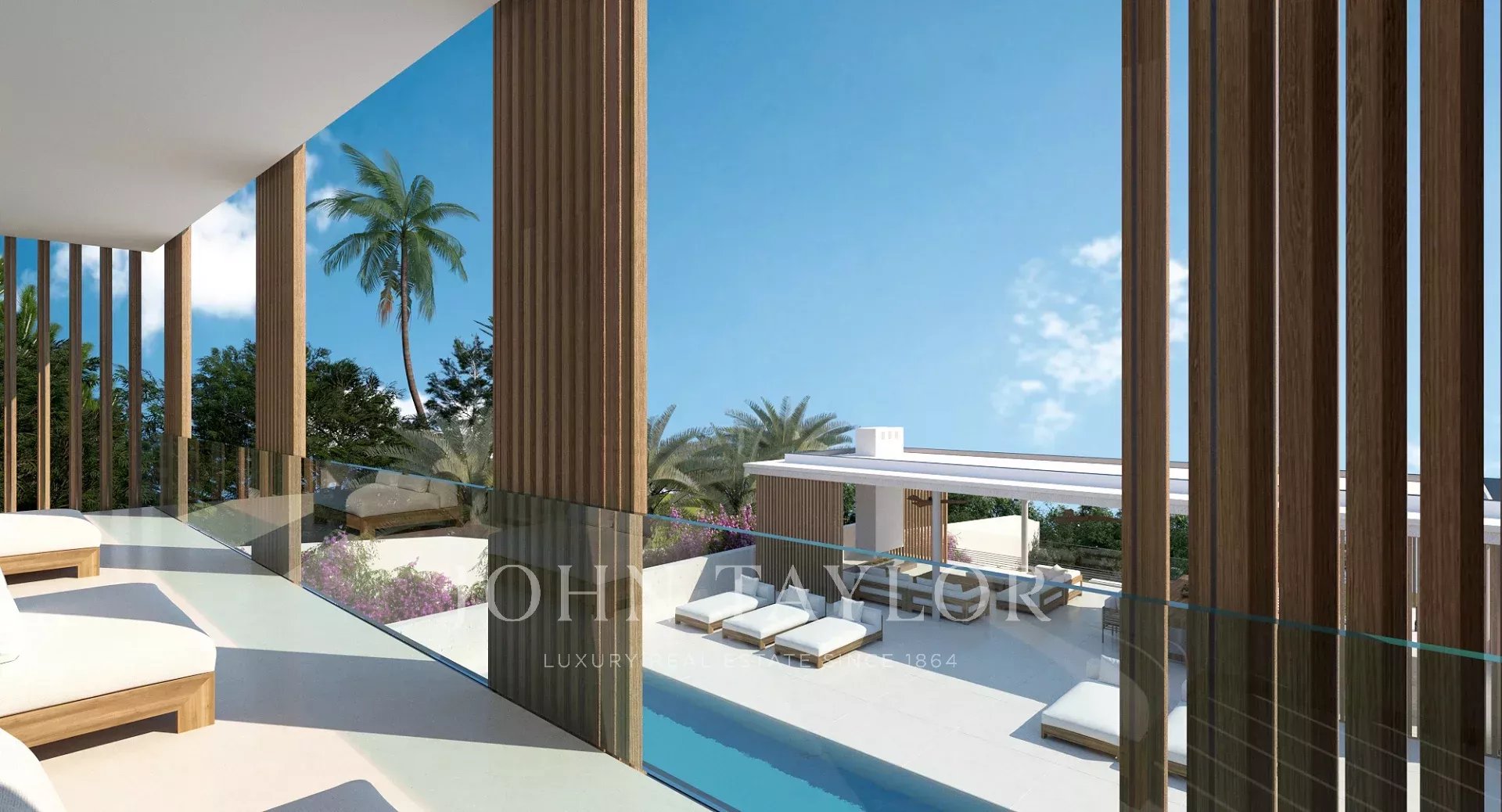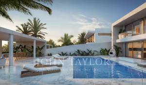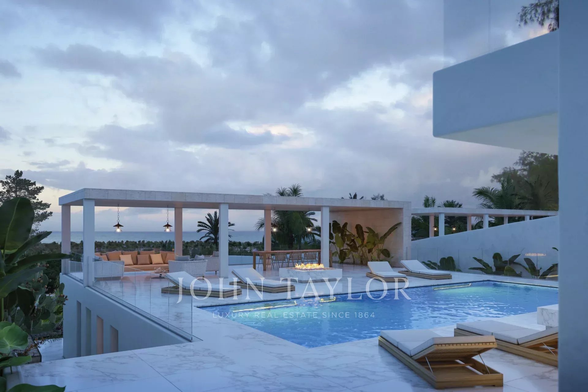 Este exclusivo proyecto residencial ofrece una villa independiente de nueva construcción situada en primera línea, con espectaculares vistas al mar y a la isla de Formentera. Forma parte de un conjunto de dos villas gemelas, de las cuales una ya ha sido vendida, quedando disponible únicamente la Villa B (lado derecho).