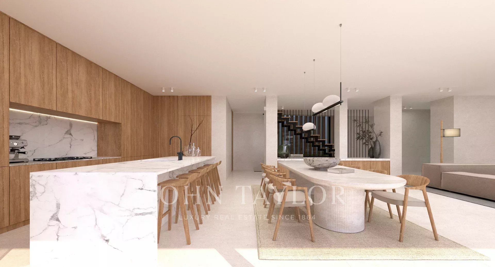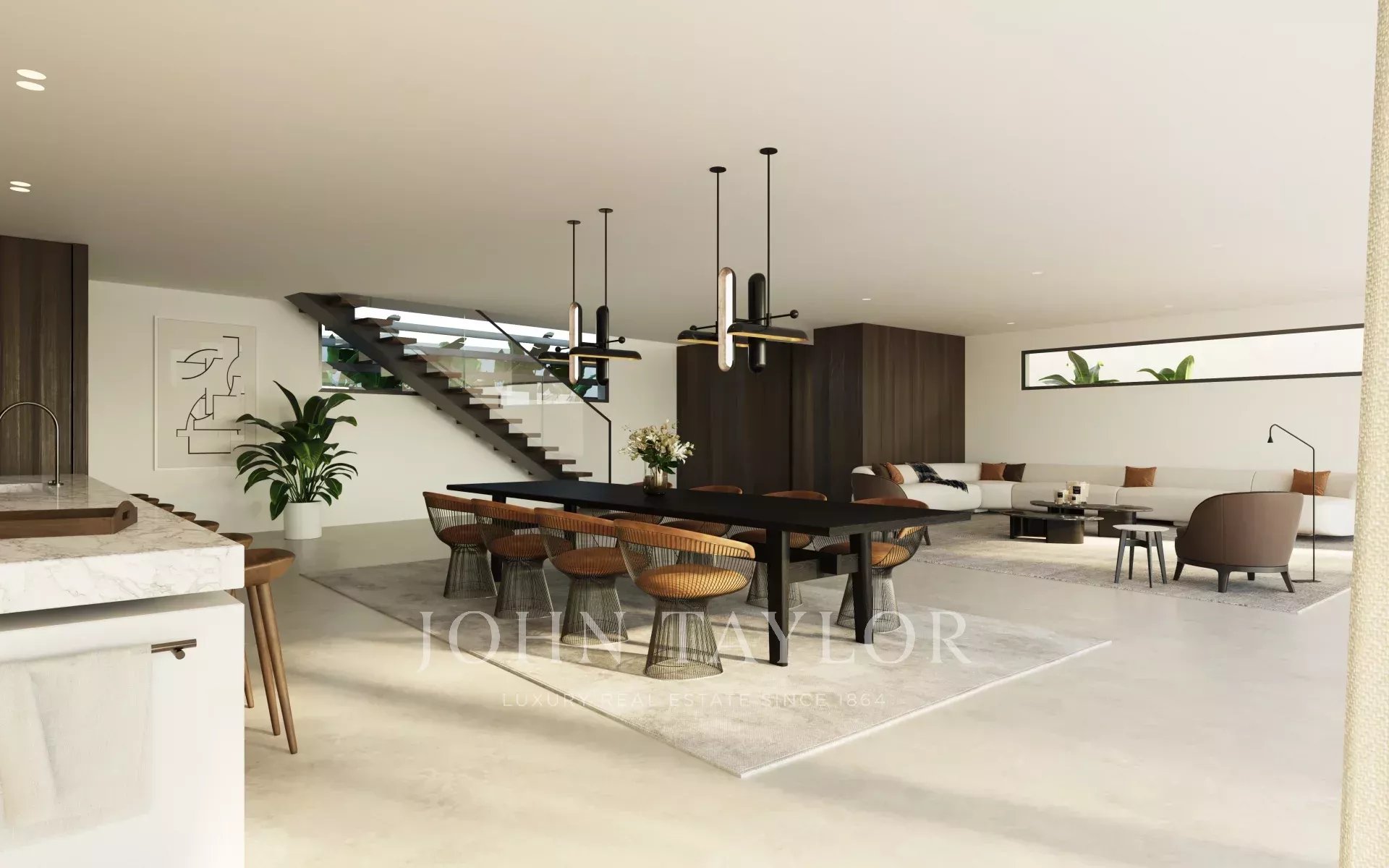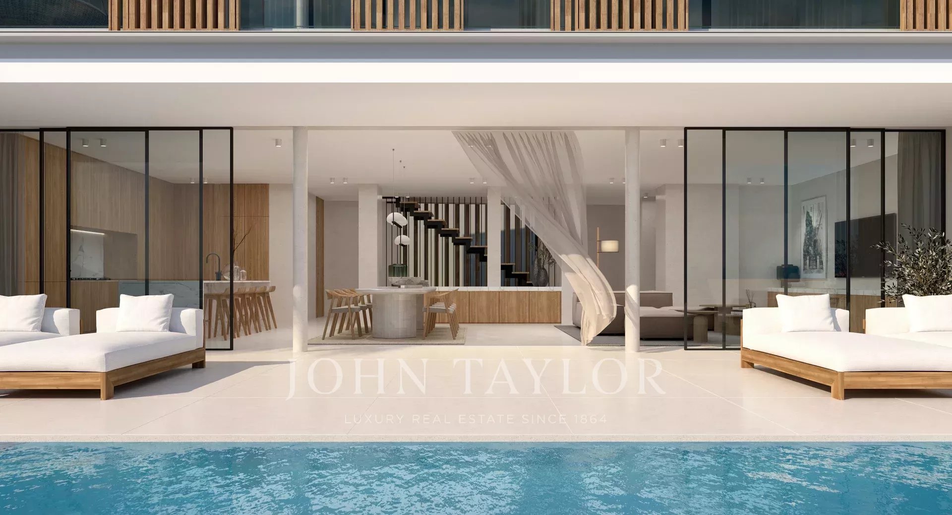 La villa destaca por su distribución abierta, grandes ventanales y una conexión fluida entre interiores y exteriores, permitiendo disfrutar de las vistas al mar desde prácticamente todas las estancias y terrazas.