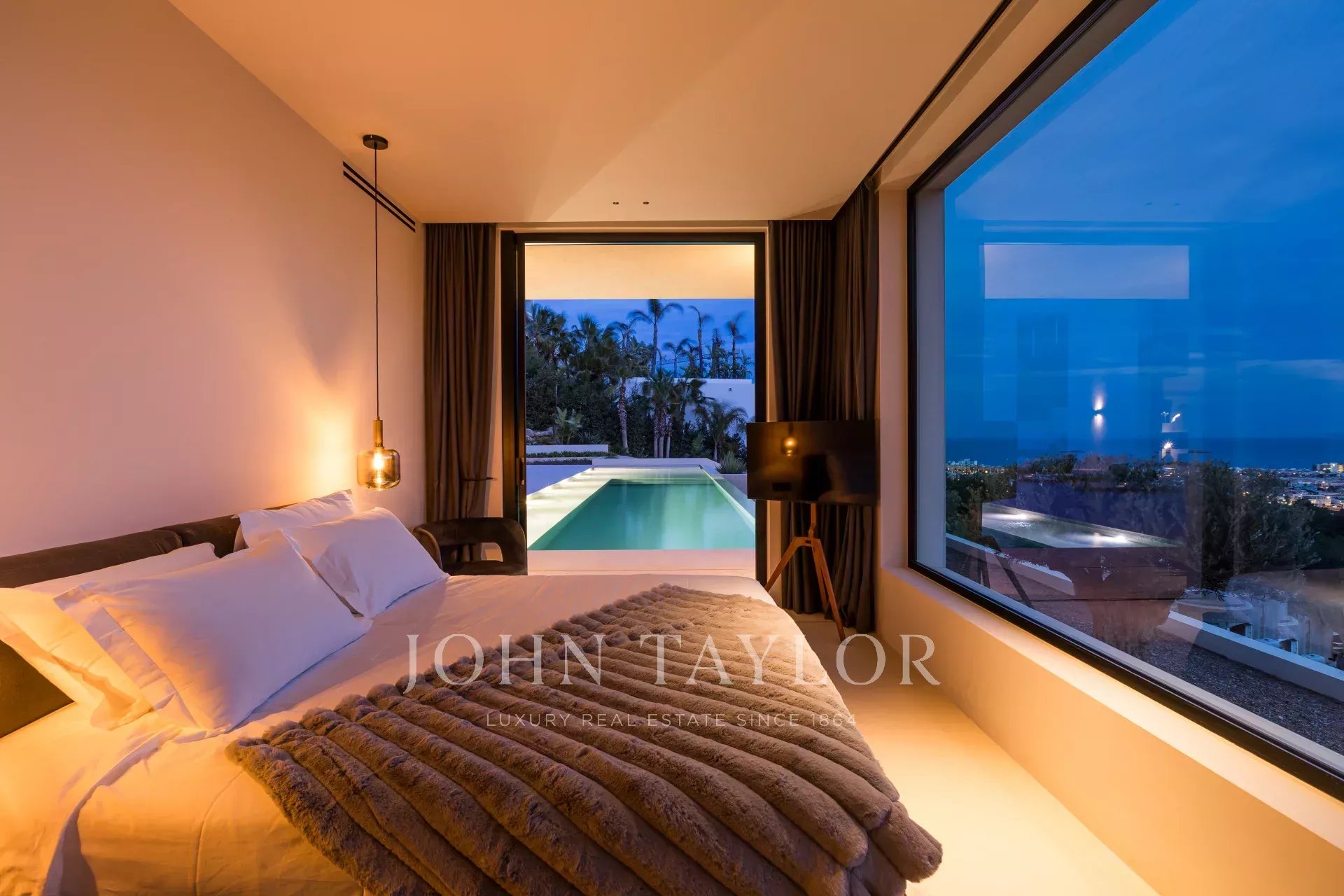 Villa de lujo estilo moderno de nueva construcción, en un exclusivo barrio cerca de Ibiza ciudad, magnificas vistas al mar y a la ciudad de Ibiza.