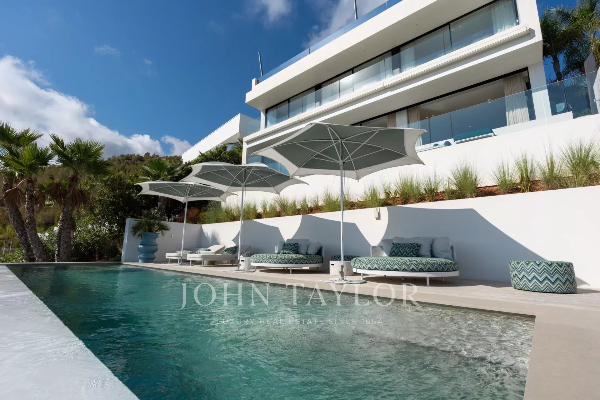 Finalizada en 2022, esta propiedad de lujo destaca por su diseño vanguardista, sus acabados de máxima calidad y su ubicación privilegiada a tan solo cinco minutos del centro de Ibiza ciudad.