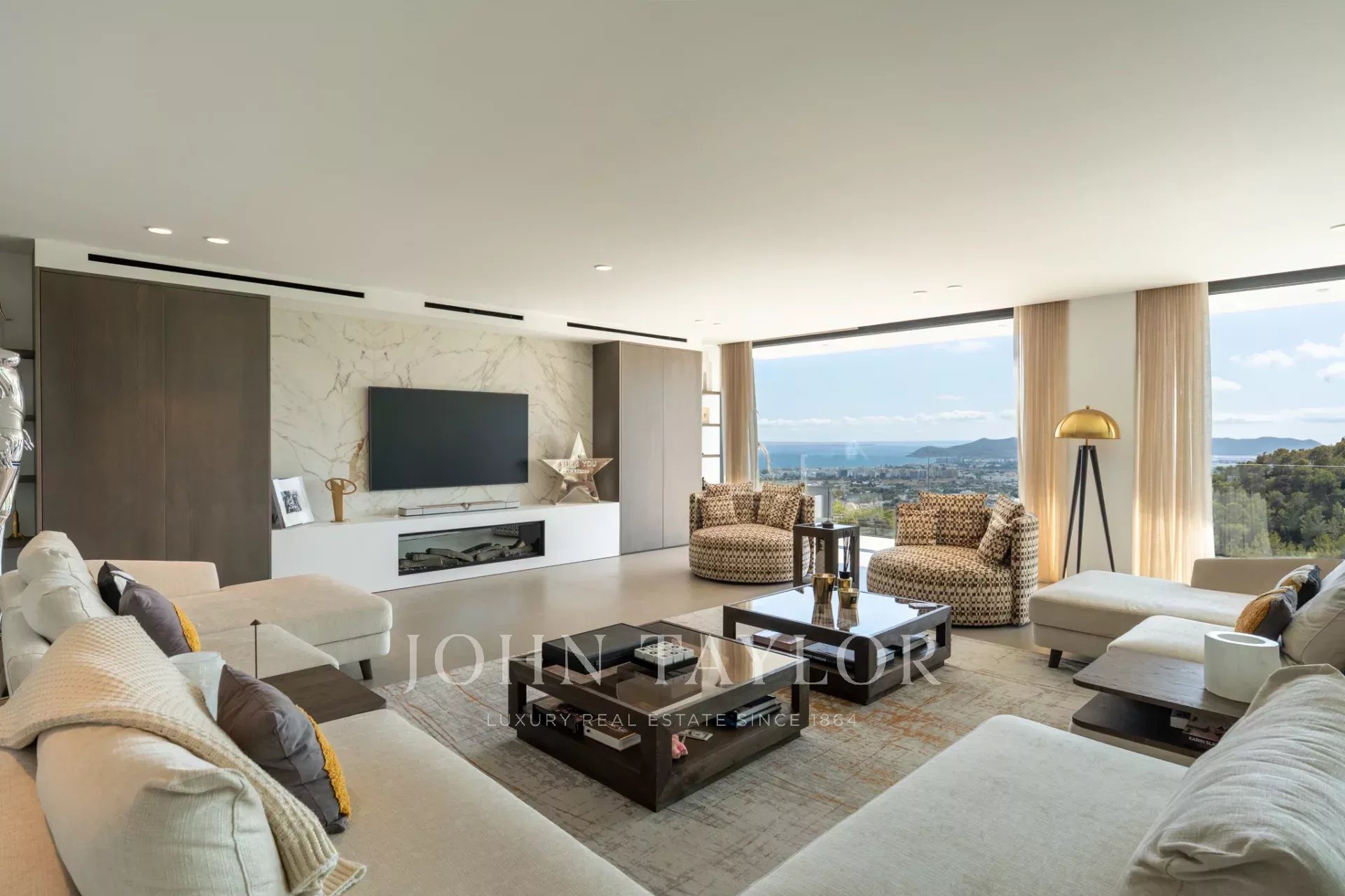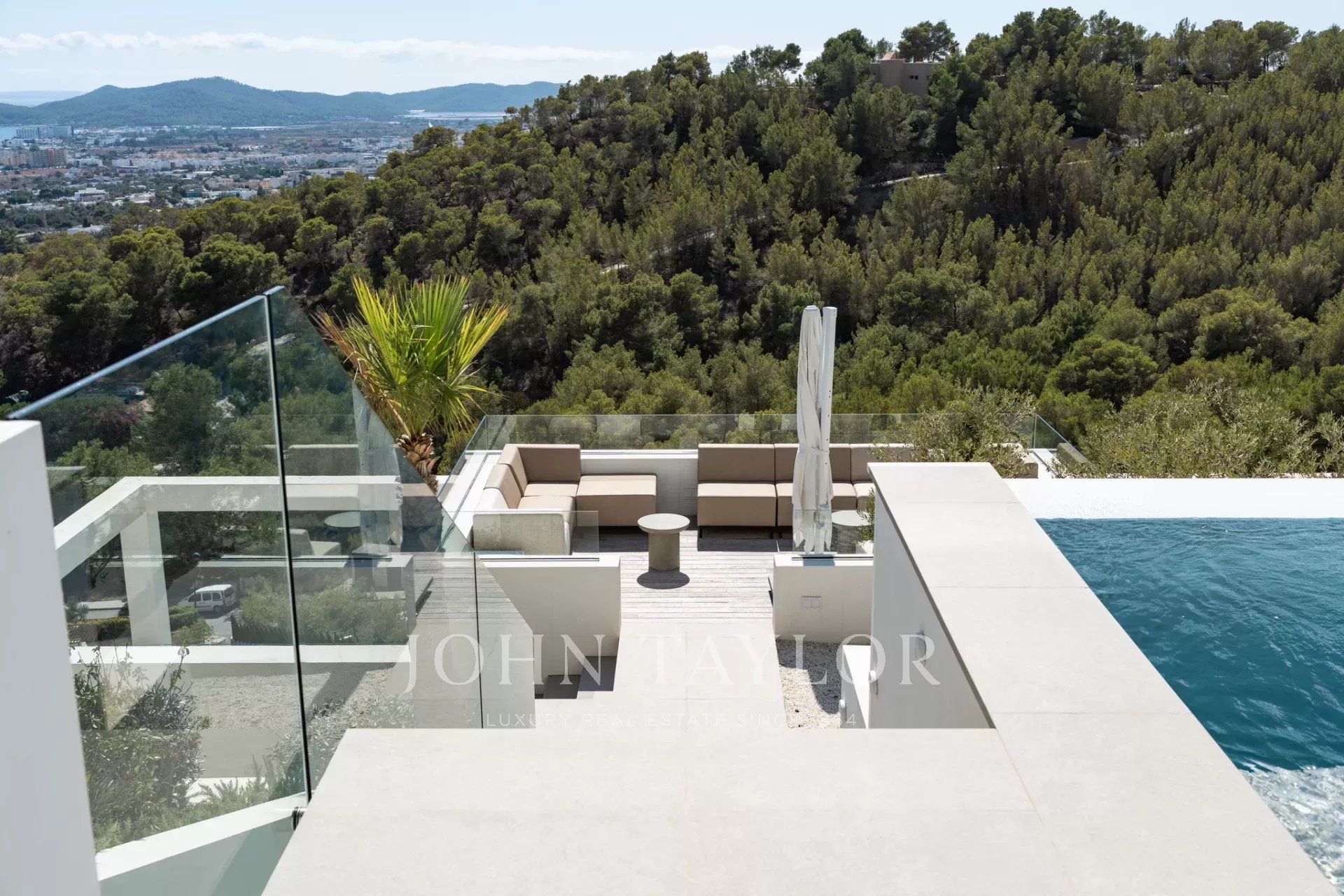 Con una superficie construida de aproximadamente 550 m², la villa se alza sobre una amplia parcela que aprovecha al máximo la luz natural, la amplitud y las vistas panorámicas al mar Mediterráneo y a la isla de Formentera. Su posición elevada garantiza privacidad y tranquilidad, disfrutando además de orientación suroeste, perfecta para contemplar los inolvidables atardeceres sobre las montañas.