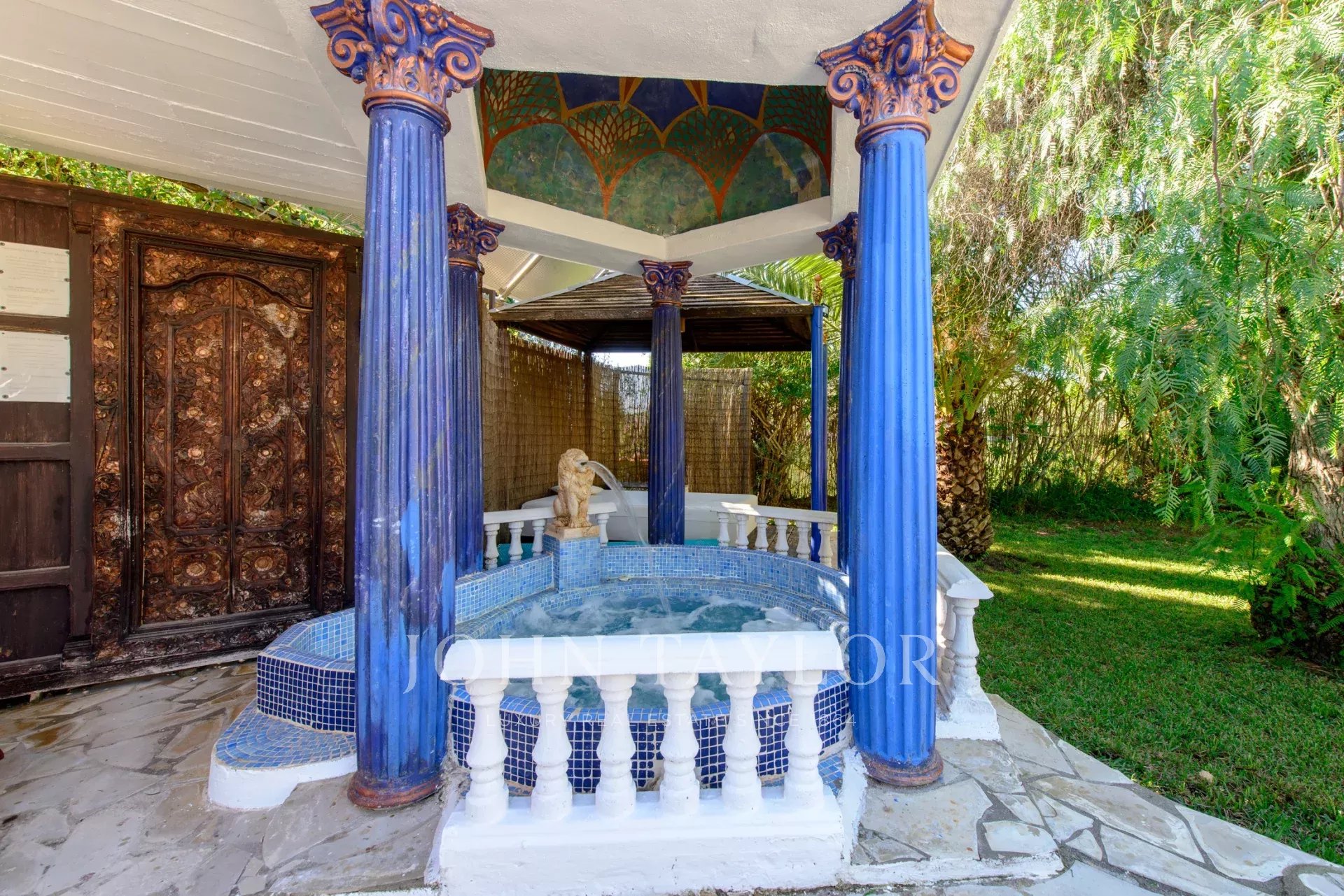 Además, la propiedad cuenta con un sistema de paneles solares, que proporciona agua caliente para el jacuzzi y, opcionalmente, puede usarse para calentar la piscina. También tiene un gran garaje y espacio para hasta seis coches en la parcela, así como un anexo independiente que puede servir como oficina o espacio adicional según las necesidades del propietario.