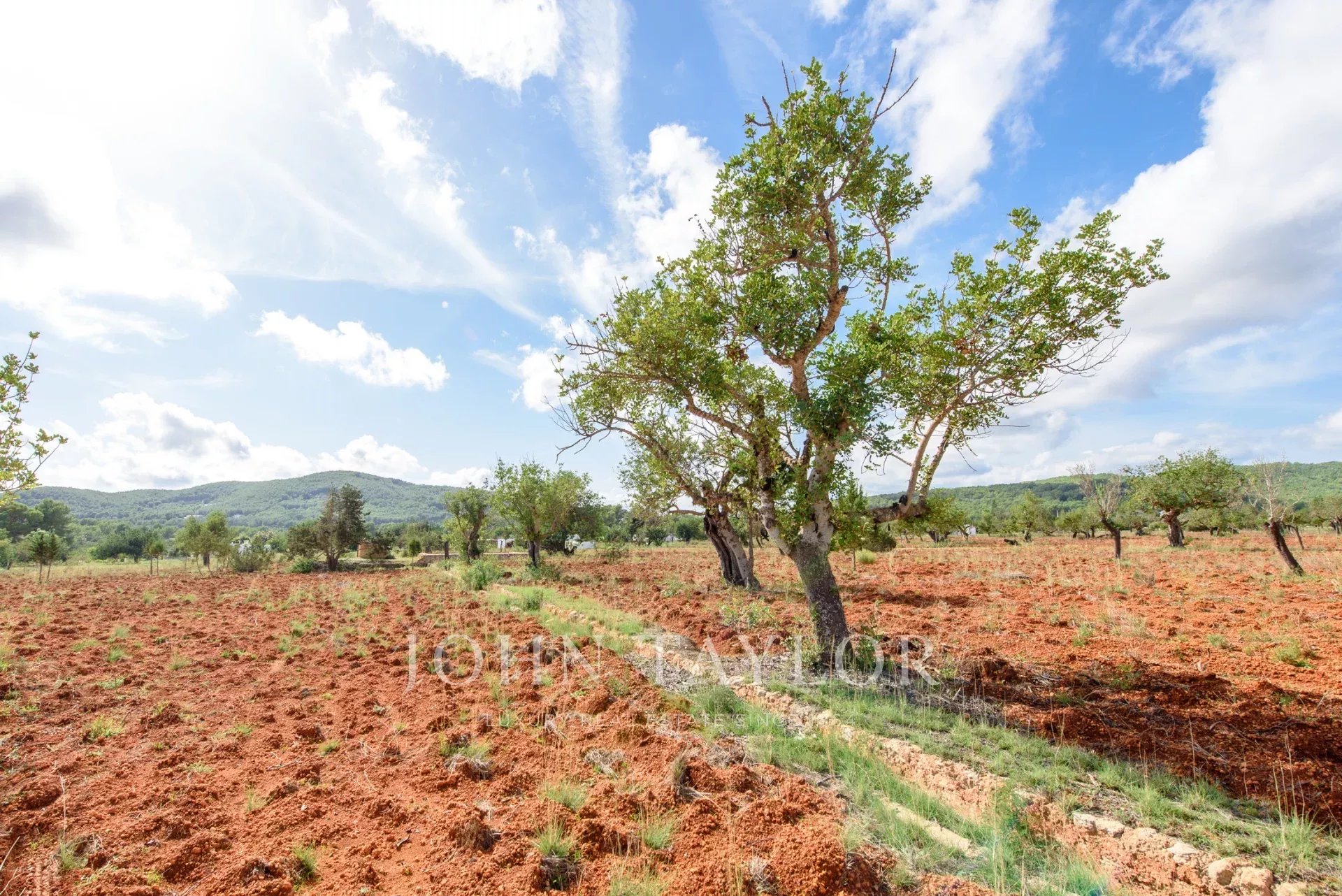 Terreno llano y fértil con árboles frutales