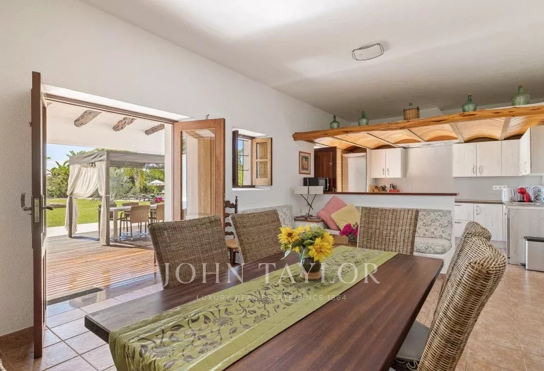 Bienvenido a una finca de campo auténtica con muros macizos originales, situada con vistas a la costa de Es Canar. Esta villa, amueblada con el estilo típico de las casas de campo de Ibiza, es ideal para familias o grupos de amigos. Disfrutarás de amplias áreas al aire libre, un extenso jardín y una gran piscina que se convierte en el centro de la diversión.