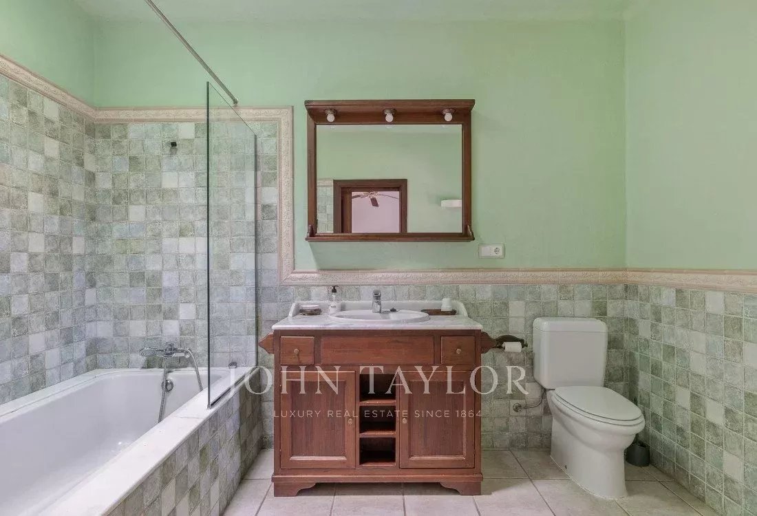 Al acceder a la propiedad, te recibirá la vista de la villa principal y un amplio aparcamiento, discretamente ubicado detrás de la villa. Al frente, encontrarás un encantador patio y una extensa área ajardinada.