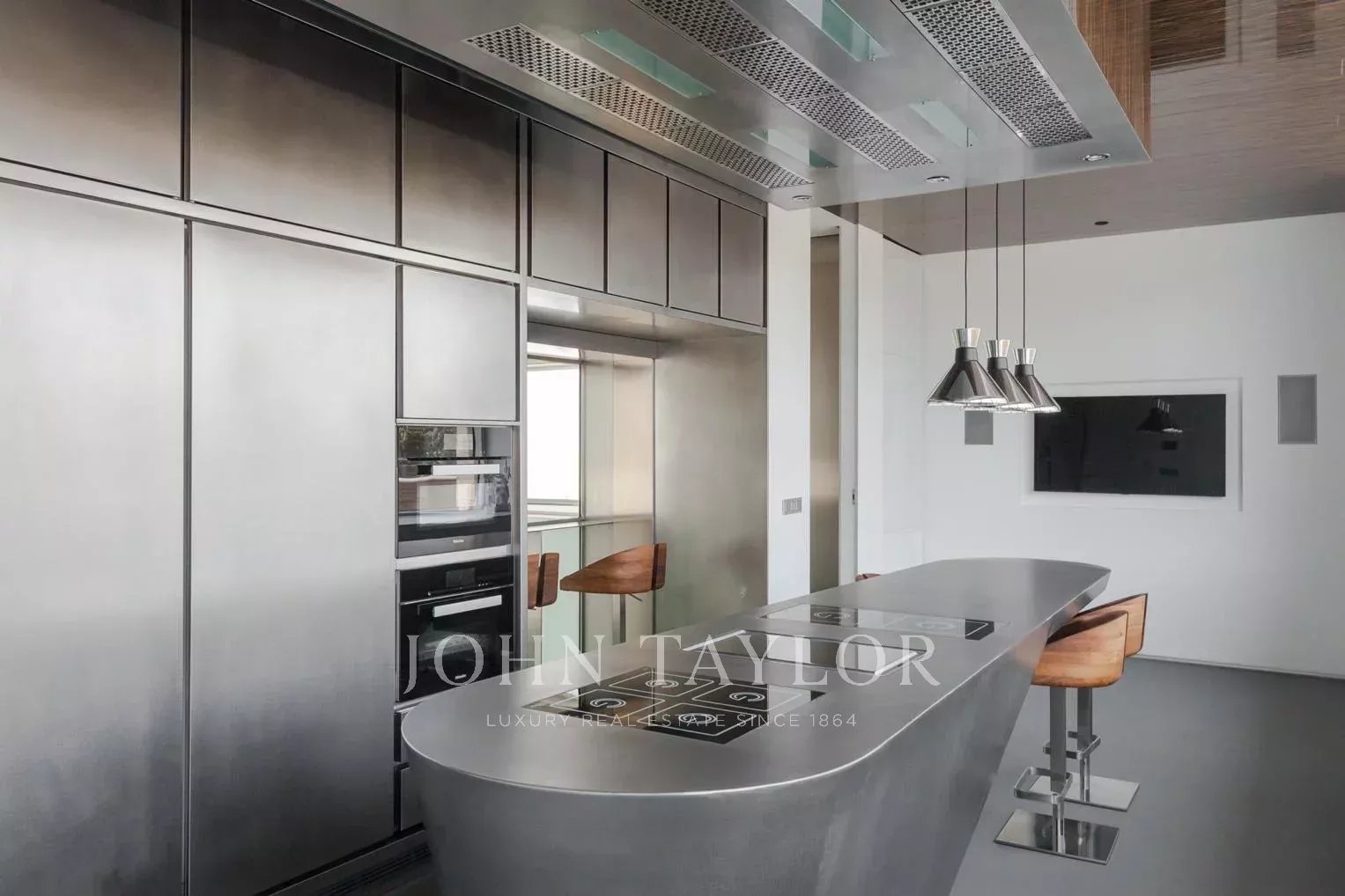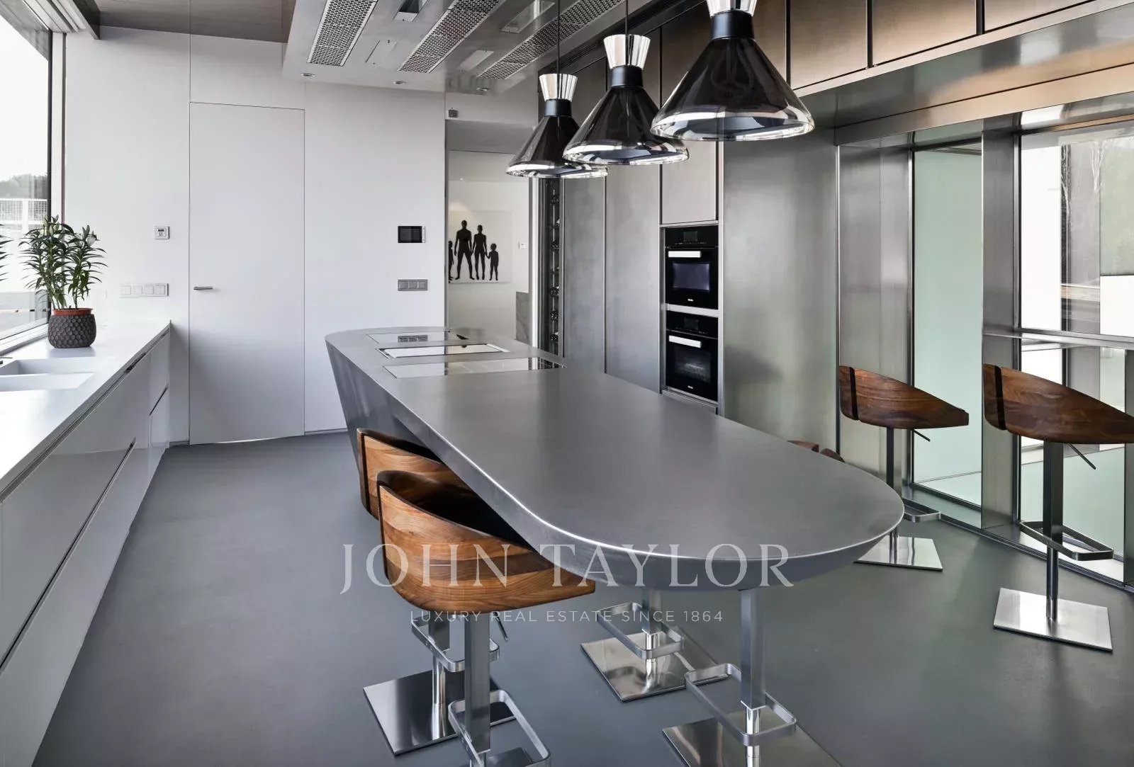 Cocina diseñada en exclusiva por Ferrá Adriá, profesional en sus fuegos y planchas. Una escultura de acero que hará las delicias del paladar.