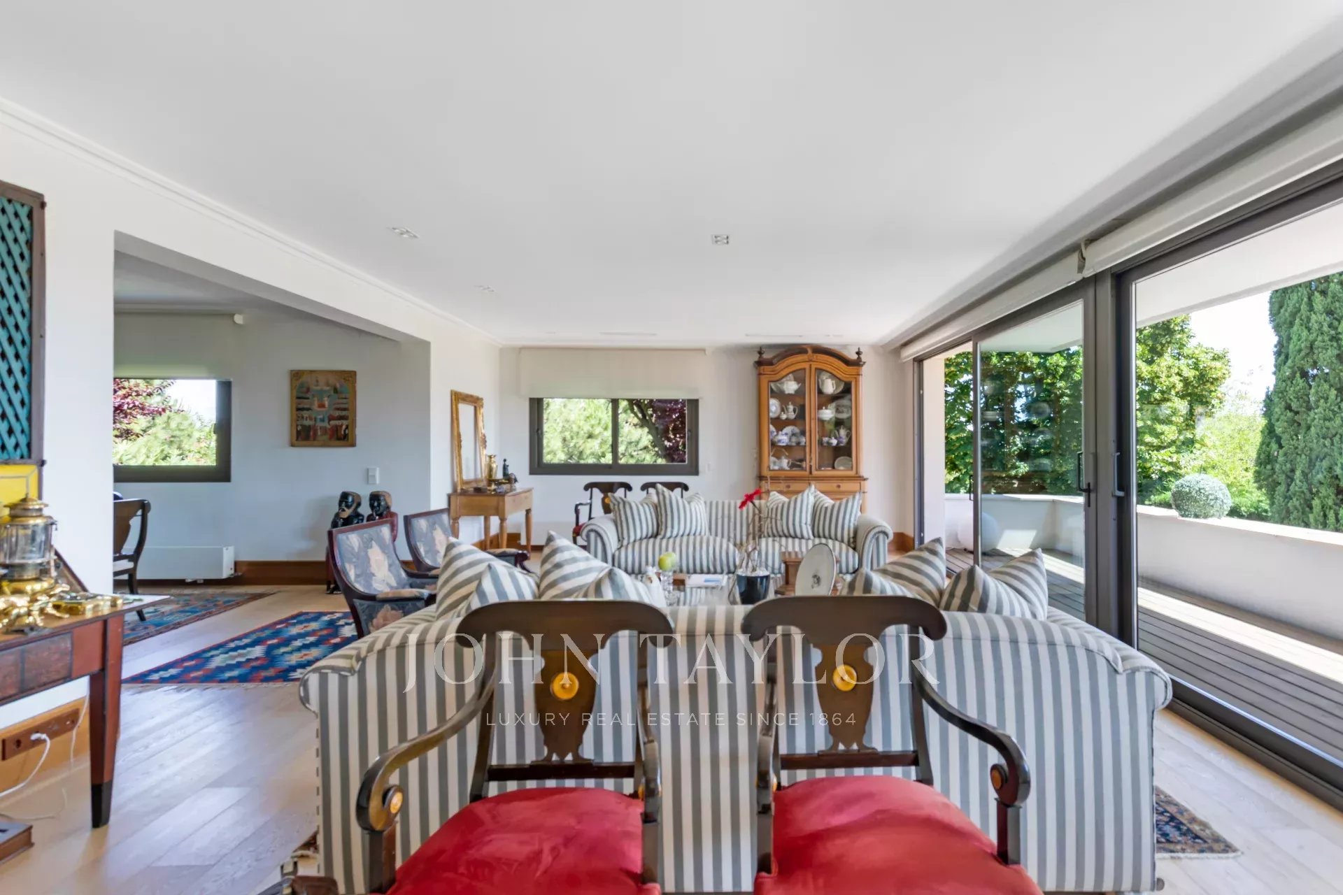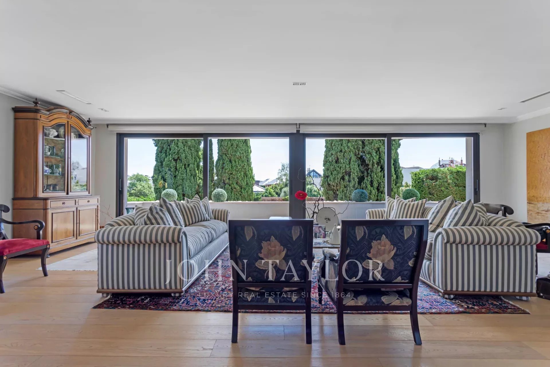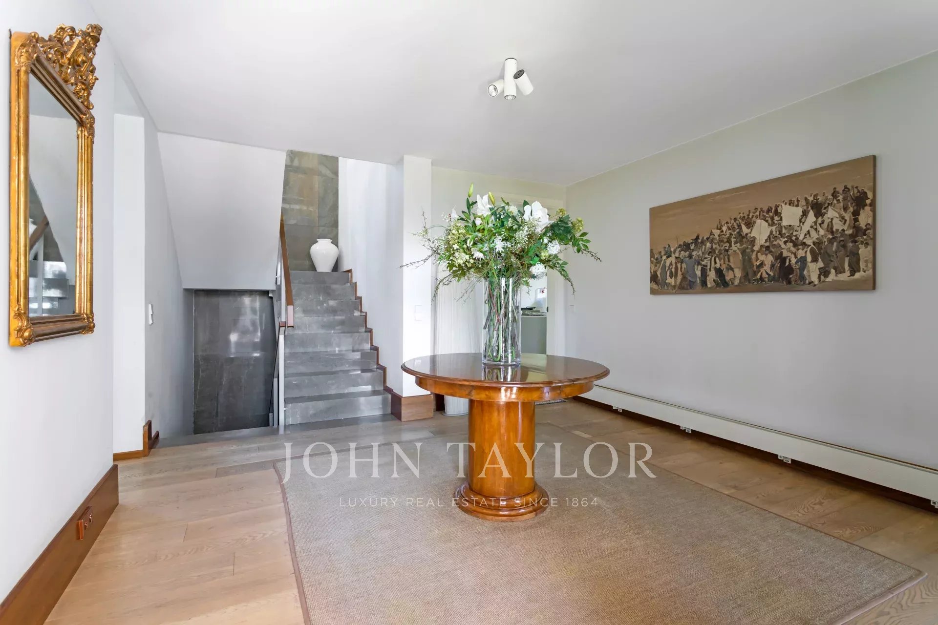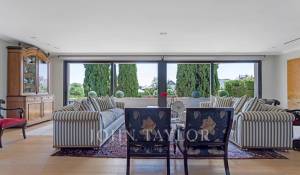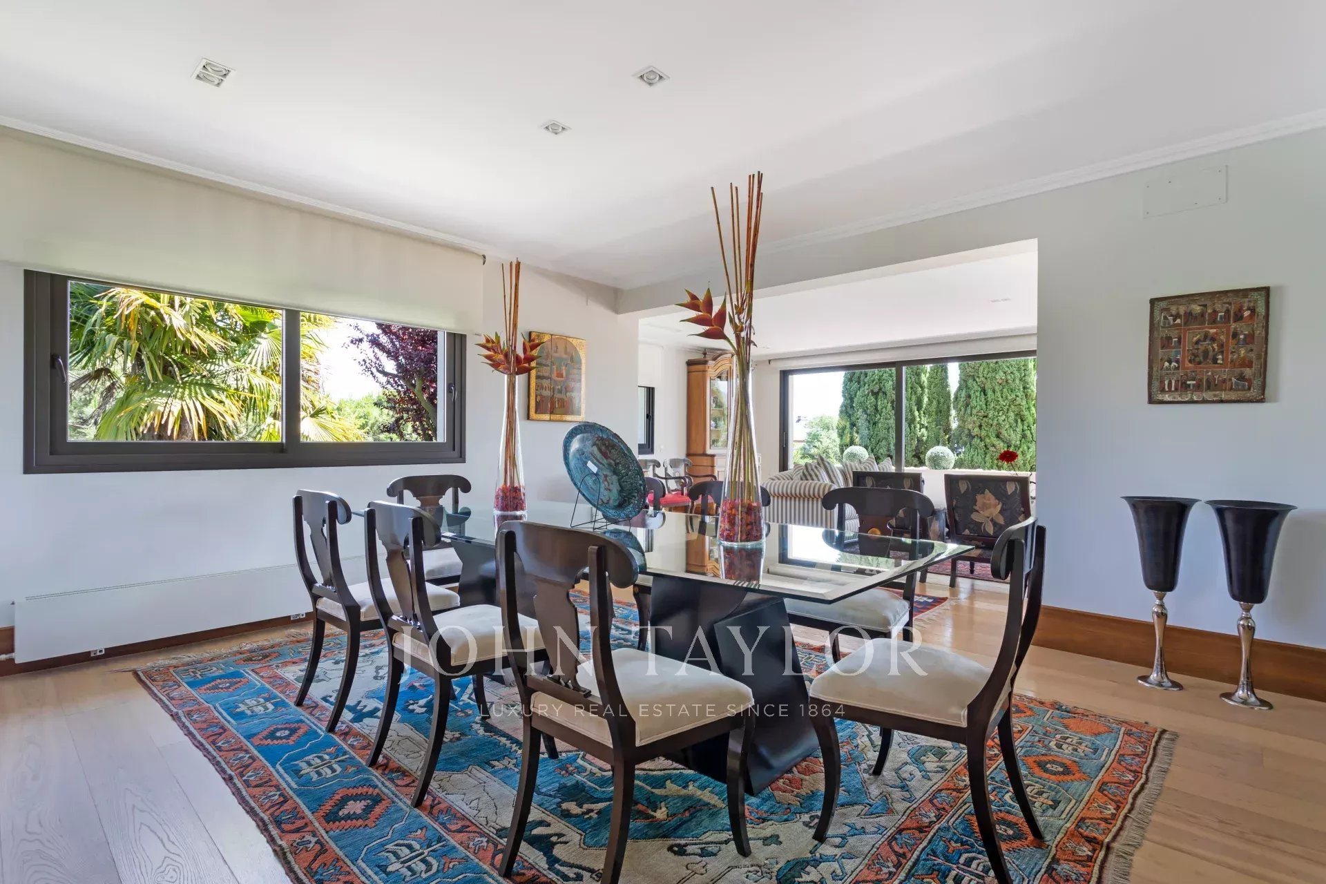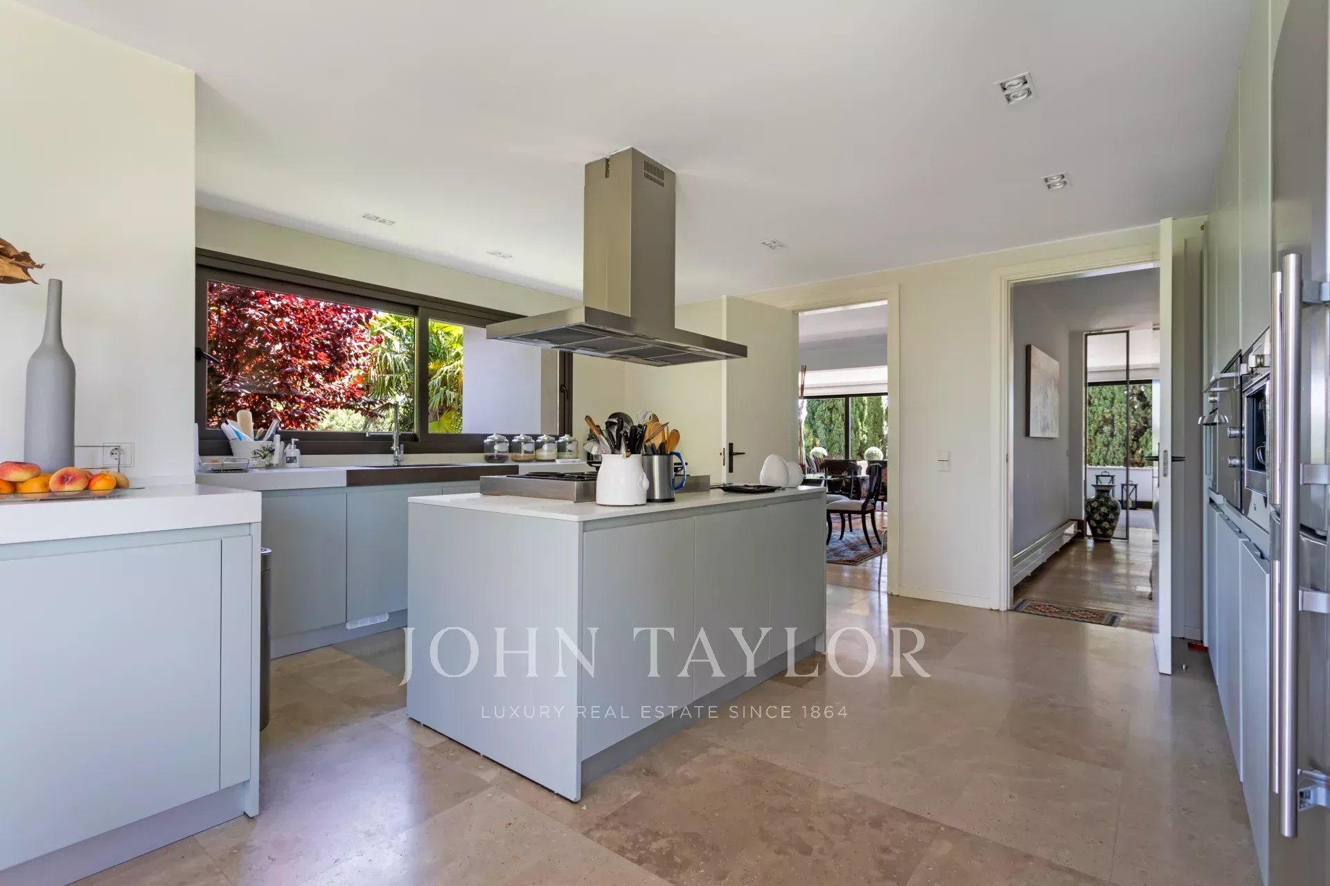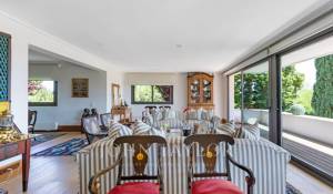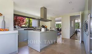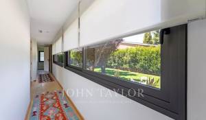 En la planta principal, un magnífico hall ofrece una distribución abierta que conecta tanto las áreas privadas como las comunes de la casa. El amplio y acogedor salón está diseñado para ser un espacio multifuncional, ideal tanto para relajarse como para recibir visitas. El comedor, elegantemente decorado, tiene suficiente espacio para grandes reuniones familiares o cenas formales. La cocina es uno de los puntos más destacados de la casa. Con una isla central que sirve como espacio de trabajo adicional y lugar para reuniones informales, la cocina está equipada con electrodomésticos de última generación y muebles de diseño. El office, contiguo a la cocina, cuenta con grandes ventanales que permiten una abundante entrada de luz natural y ofrece acceso directo al jardín y al jardín japonés, creando un ambiente sereno y relajante.