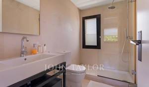 En la planta superior se encuentran las habitaciones, cada una con su propio baño en suite, garantizando la máxima privacidad y comodidad. La suite principal incluye un amplio vestidor y un baño de lujo con acabados en mármol y una bañera de hidromasaje. Las habitaciones secundarias son igualmente espaciosas y están diseñadas con el mismo nivel de detalle y calidad.