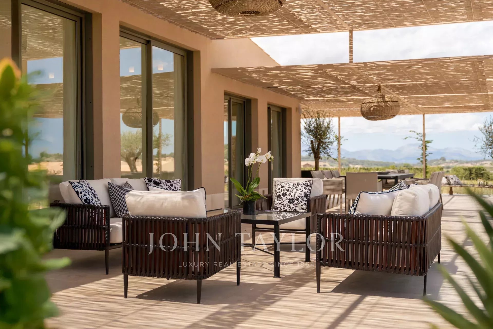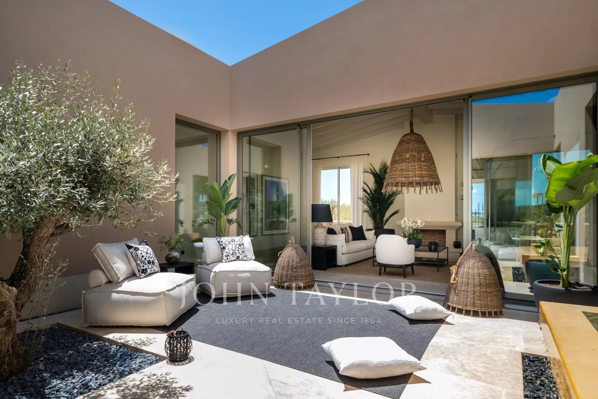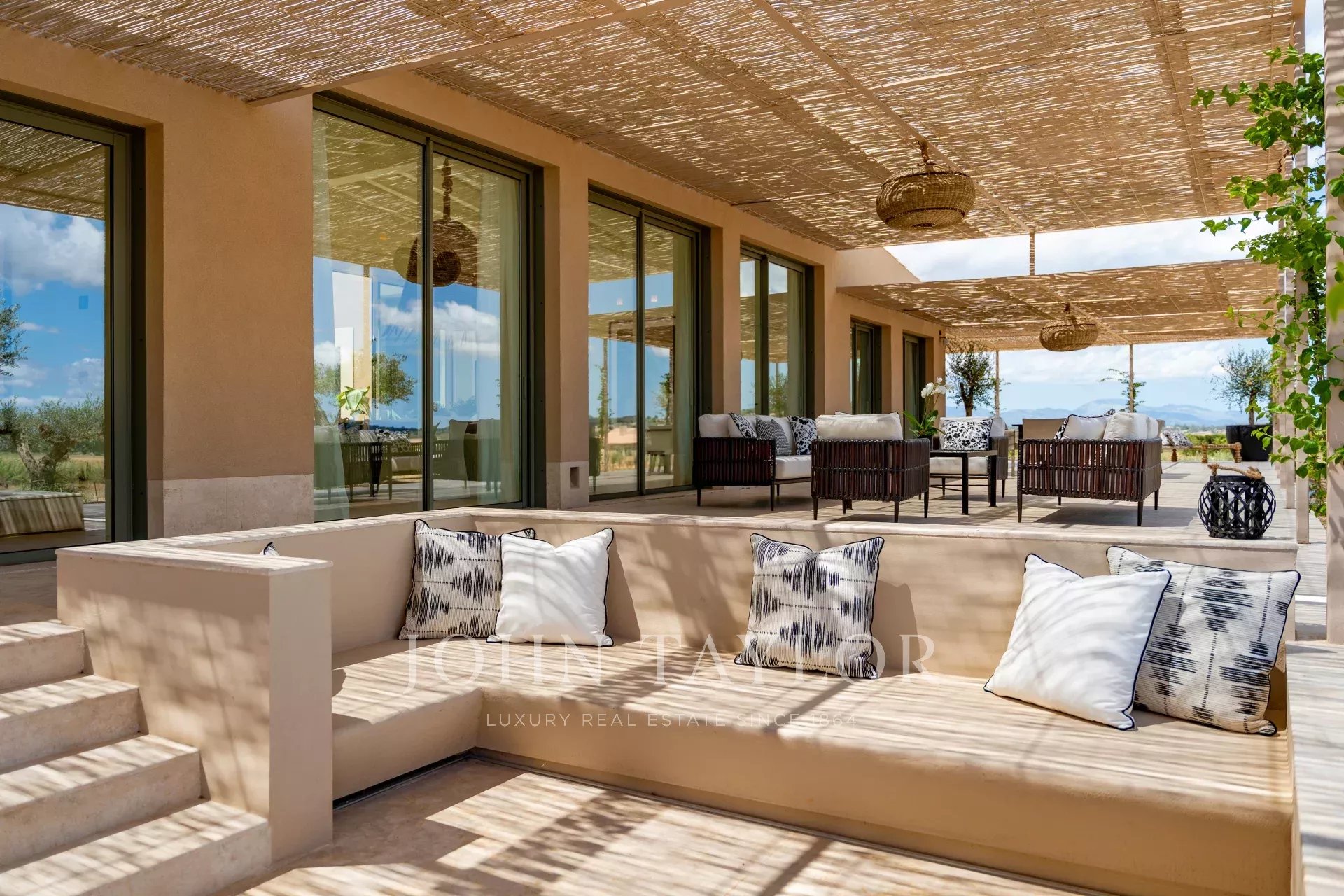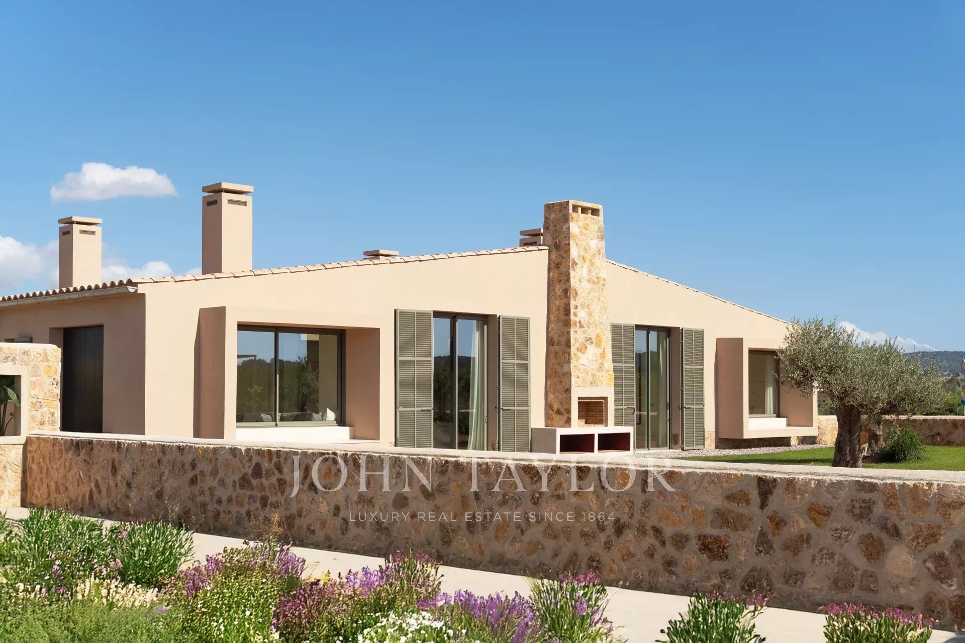 Al llegar a la propiedad, se atraviesa un largo camino privado de 300 metros bordeado de olivos hasta la entrada principal. Estará rodeado de tierras de cultivo, viñedos, campos de trigo y olivares y almendros. La belleza de esta ubicación, conduciendo por idílicas carreteras rurales y rápidas autopistas, le asegura que no está a más de veinticinco minutos de Palma, el aeropuerto, las mejores playas, tiendas y los mejores colegios internacionales.