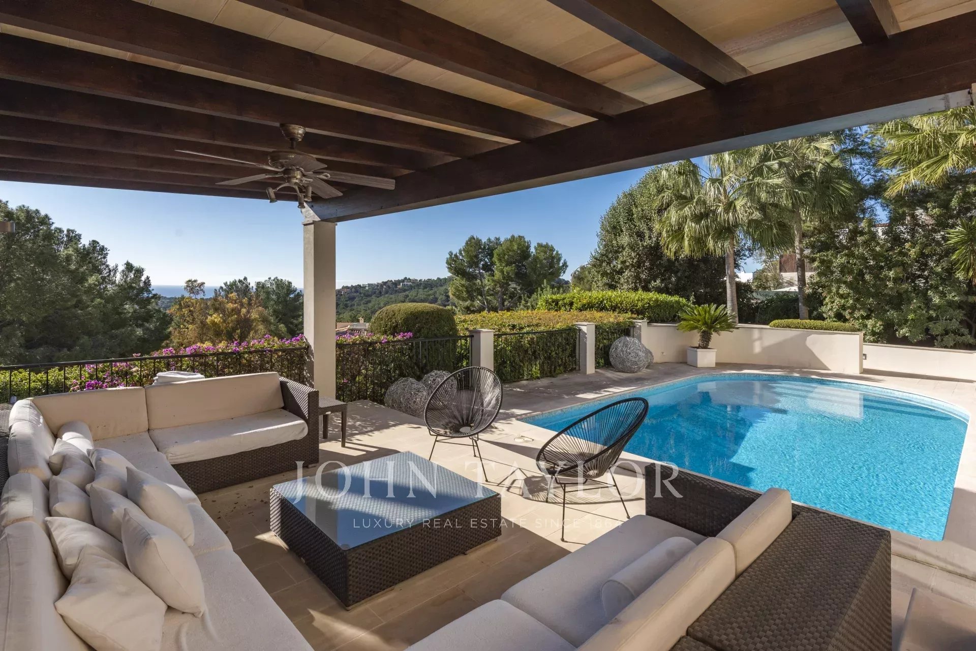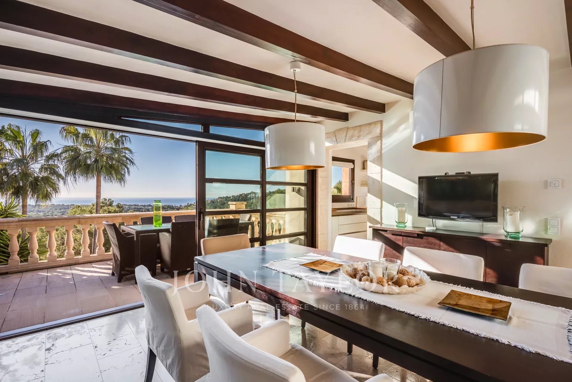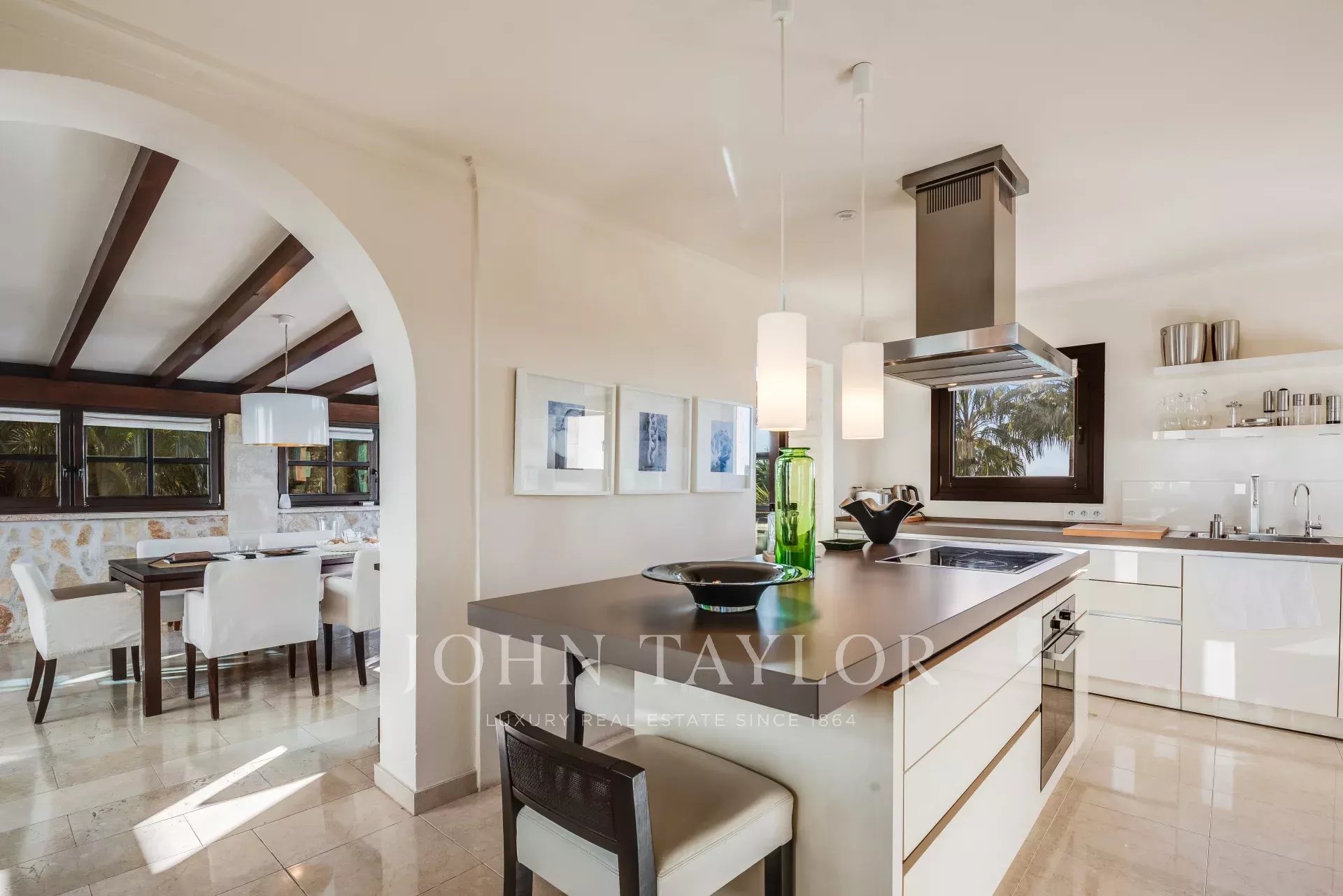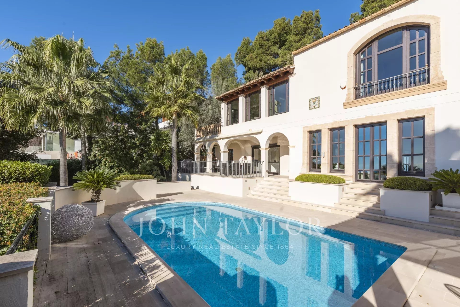 Le ofrecemos esta impresionante villa mediterránea que se encuentra muy cerca del campo de golf de Bendinat. Dispone de 350 m² de superficie habitable que se distribuyen en 2 niveles. En la planta alta se encuentra la cocina principal con comedor, la sala de estar con chimenea, dos dormitorios dobles, dos cuartos de baño y un vestidor. Y en la planta baja una segunda sala de estar más espaciosa, otra cocina totalmente equipada y dos dormitorios más con dos cuartos de baño. Desde aquí todas las estancias dan acceso directo a la preciosa zona exterior de la piscina donde podrá relajarse y disfrutar tomando el sol en el amplio espacio con tumbonas y sofás. Esta propiedad de estilo mediterráneo es ideal para el que busca privacidad, tranquilidad, buenas vistas al mar y vivir en una zona muy codiciada cerca de los hermosos puertos y todos los servicios. No pierda la oportunidad de venir a ver la casa. Comuníquese con nosotros cuanto antes.