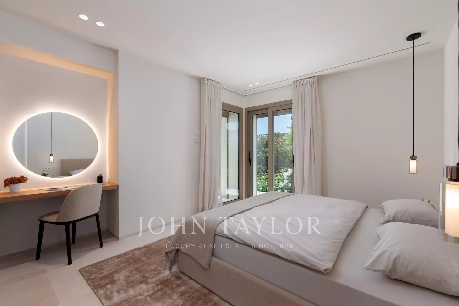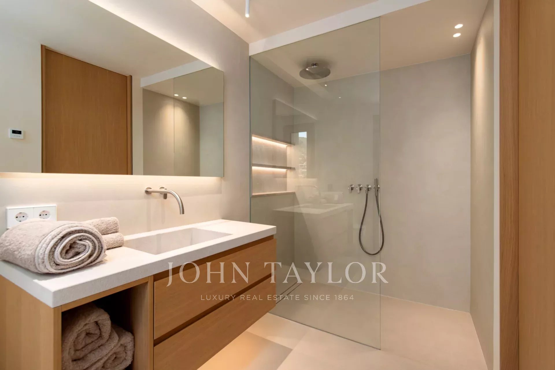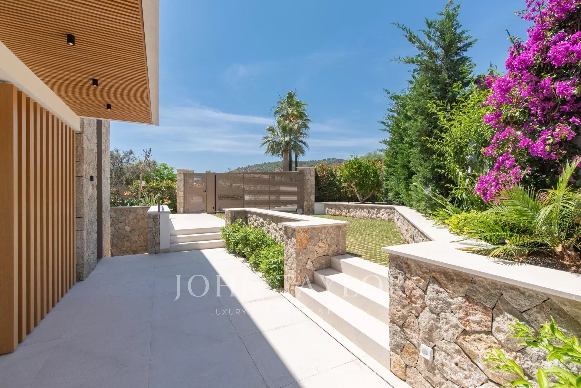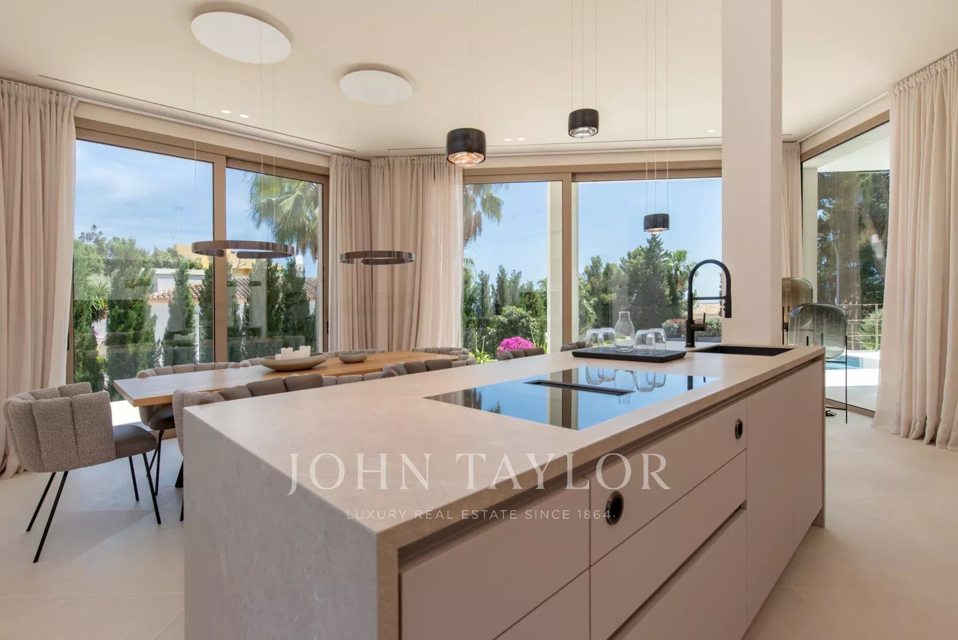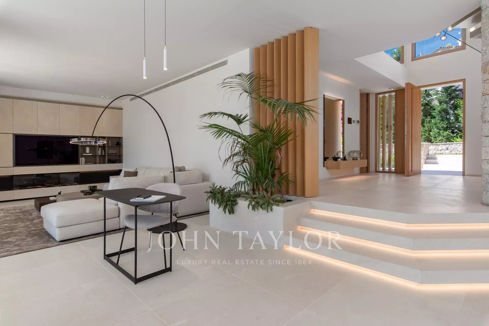 Cada rincón de esta villa ha sido concebido con atención al detalle y pasión por la calidad. Entre sus elementos destacan suelos de gran formato en porcelánico, muros de piedra natural, elegantes detalles en madera, chimenea de gas y tecnología de última generación (electrodomésticos Miele, iluminación Occhio, climatización integral, suelo radiante, etc.).