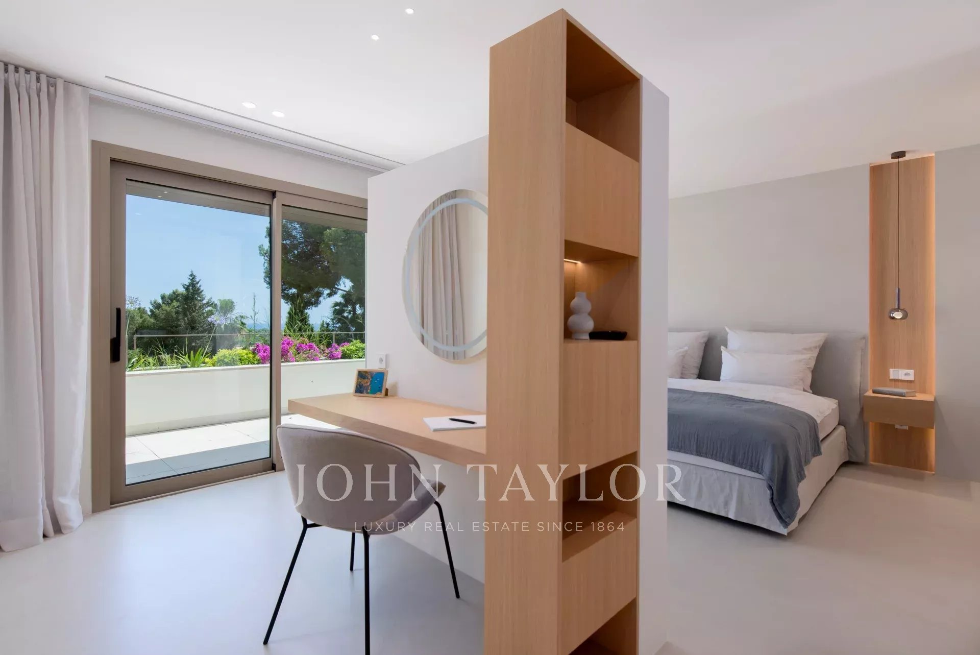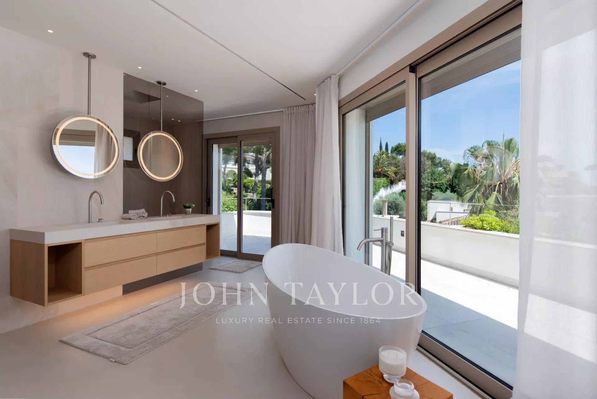 Ubicación privilegiada: Situada en una colina con vistas a la bahía, esta villa se encuentra en una exclusiva zona residencial de Bendinat, a solo cinco minutos a pie del campo de golf “Real Golf de Bendinat”. Gracias a su cercanía a Palma, Puerto Portals y algunas de las mejores playas de la isla, la ubicación es ideal tanto como residencia habitual como segunda vivienda.