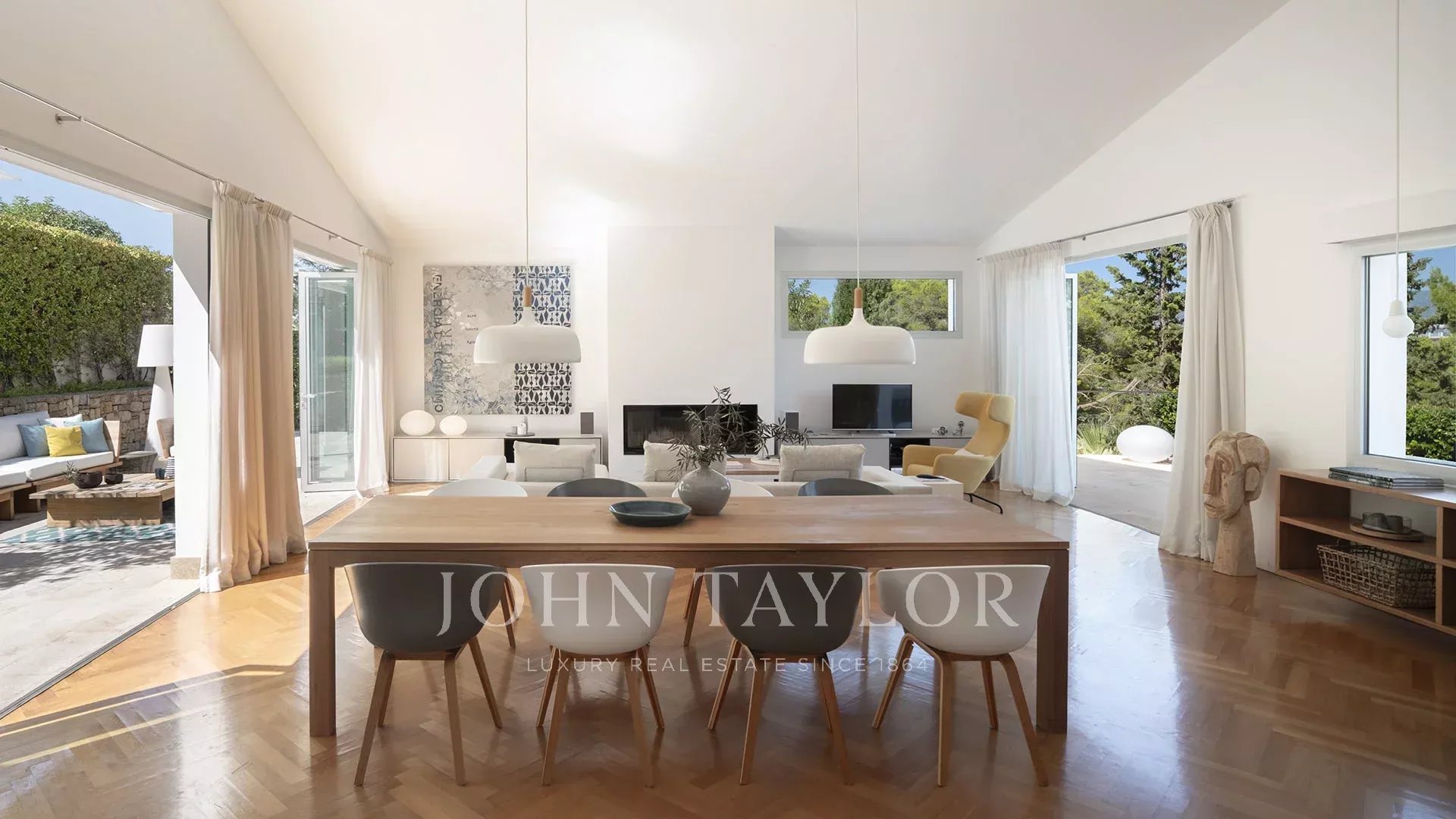 Esta maravillosa villa distribuida sobre 2 plantas se encuentra en la tranquila urbanización Cala Vinyas y ofrece bonitas vistas al mar. La casa, ideal para sus vacaciones tanto en verano como en invierno se caracteriza por la conexión perfecta entre los espacios interiores y exteriores. Varias terrazas alrededor de la casa, el bonito jardín y la zona de la piscina ofrecen la posibilidad de celebrar reuniones con familia y amigos disfrutando del sol o refugiarse en la sombra. También existe la posibilidad de retirarse para un momento de relax en un rincón tranquilo.
