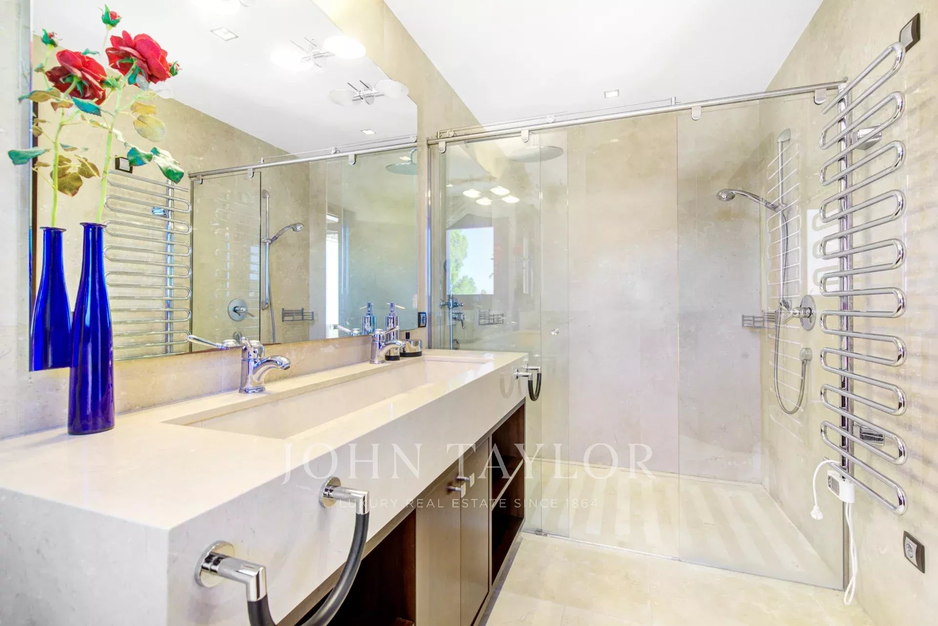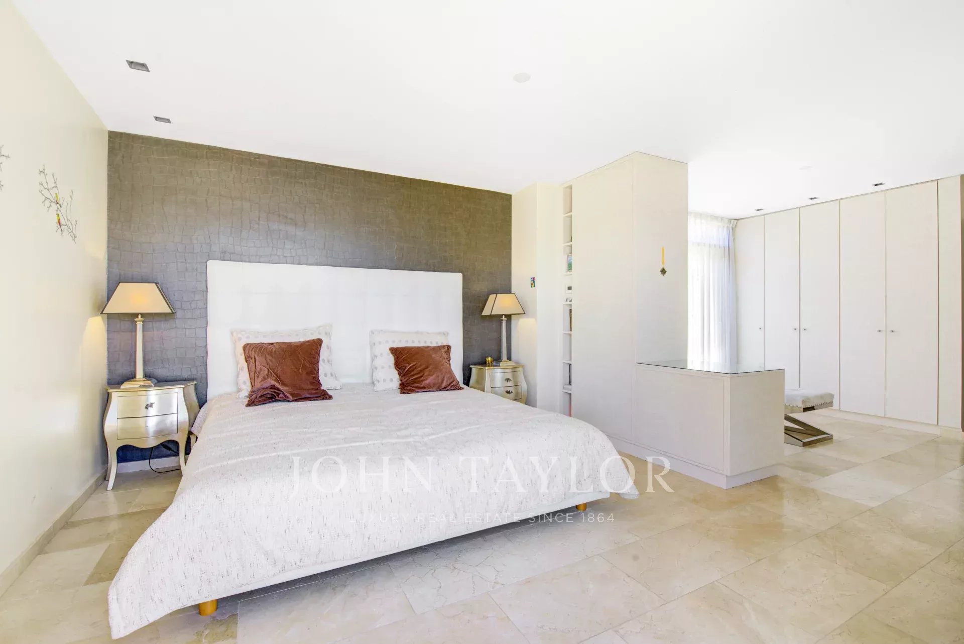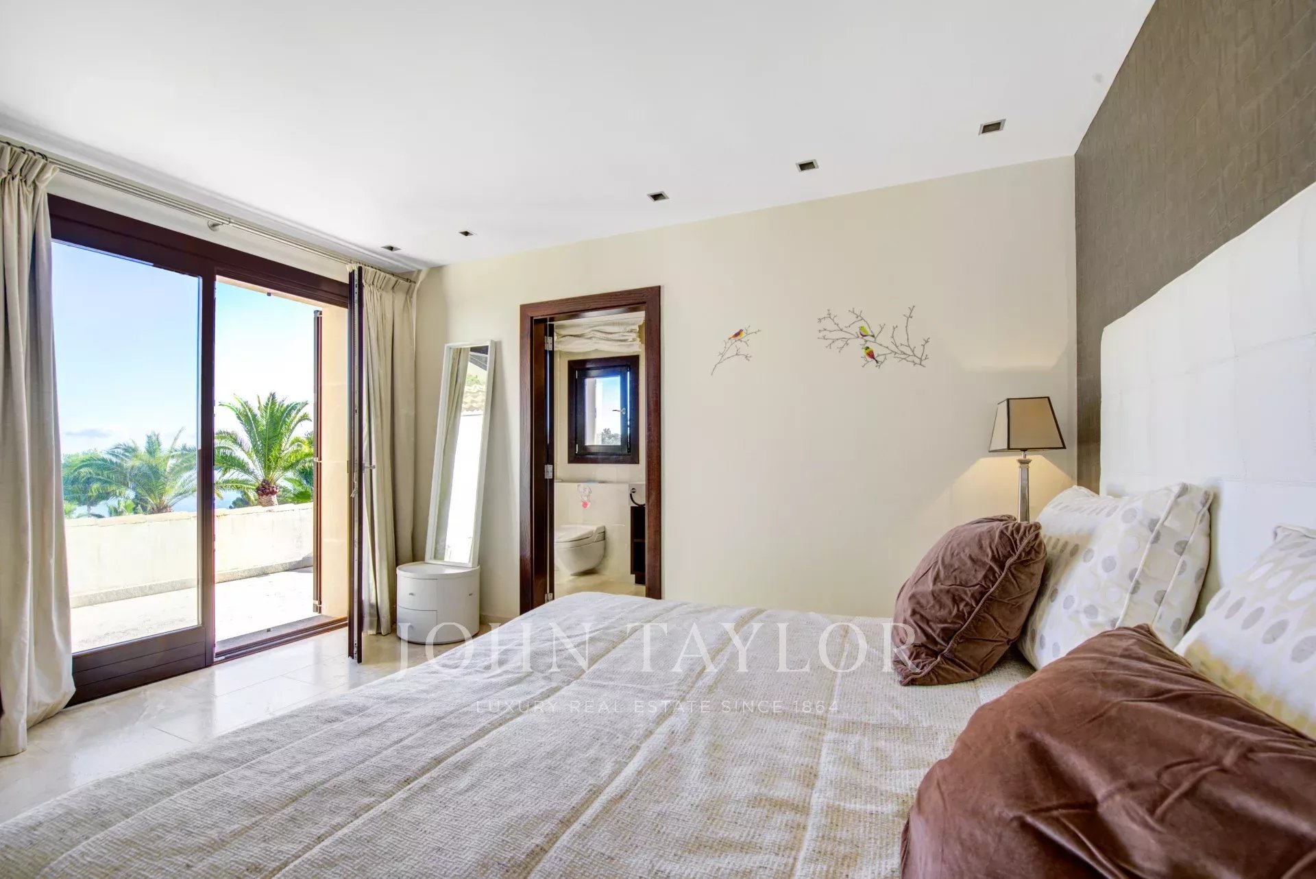 En el piso superior encontramos el dormitorio principal con vestidor y baño en suite. En esta planta también hay 2 habitaciones más y acceso a varias terrazas con fabulosas vistas al mar y Palma.