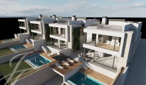 Cada una de las cuatro villas cuenta con 300 metros cuadrados de espacio construido con cuatro dormitorios en la planta superior, cada uno con baño en suite y armarios empotrados. En la planta baja, la distribución diáfana de la cocina y el comedor con el salón en un nivel ligeramente inferior conecta a la perfección con la generosa e íntima terraza, perfecta para el entretenimiento. El moderno diseño de inspiración mediterránea se ve realzado por una fachada de piedra, un jardín vertical y una delicada carpintería, todo lo cual contribuye a la sensación de alta gama de estas nuevas viviendas.