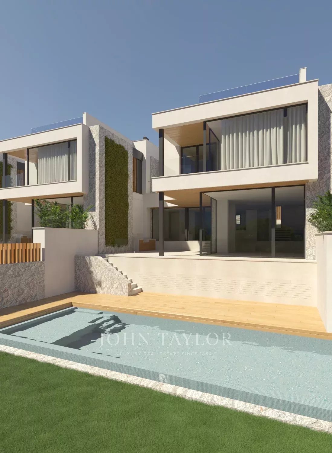 Cada una de las cuatro villas cuenta con 300 metros cuadrados de espacio construido con cuatro dormitorios en la planta superior, tres baños y armarios empotrados. En la planta baja, la distribución diáfana de la cocina y el comedor con el salón en un nivel ligeramente inferior conecta a la perfección con la generosa e íntima terraza, perfecta para el entretenimiento. El moderno diseño de inspiración mediterránea se ve realzado por una fachada de piedra y una delicada carpintería, todo lo cual contribuye a la sensación de alta gama de estas nuevas viviendas.
