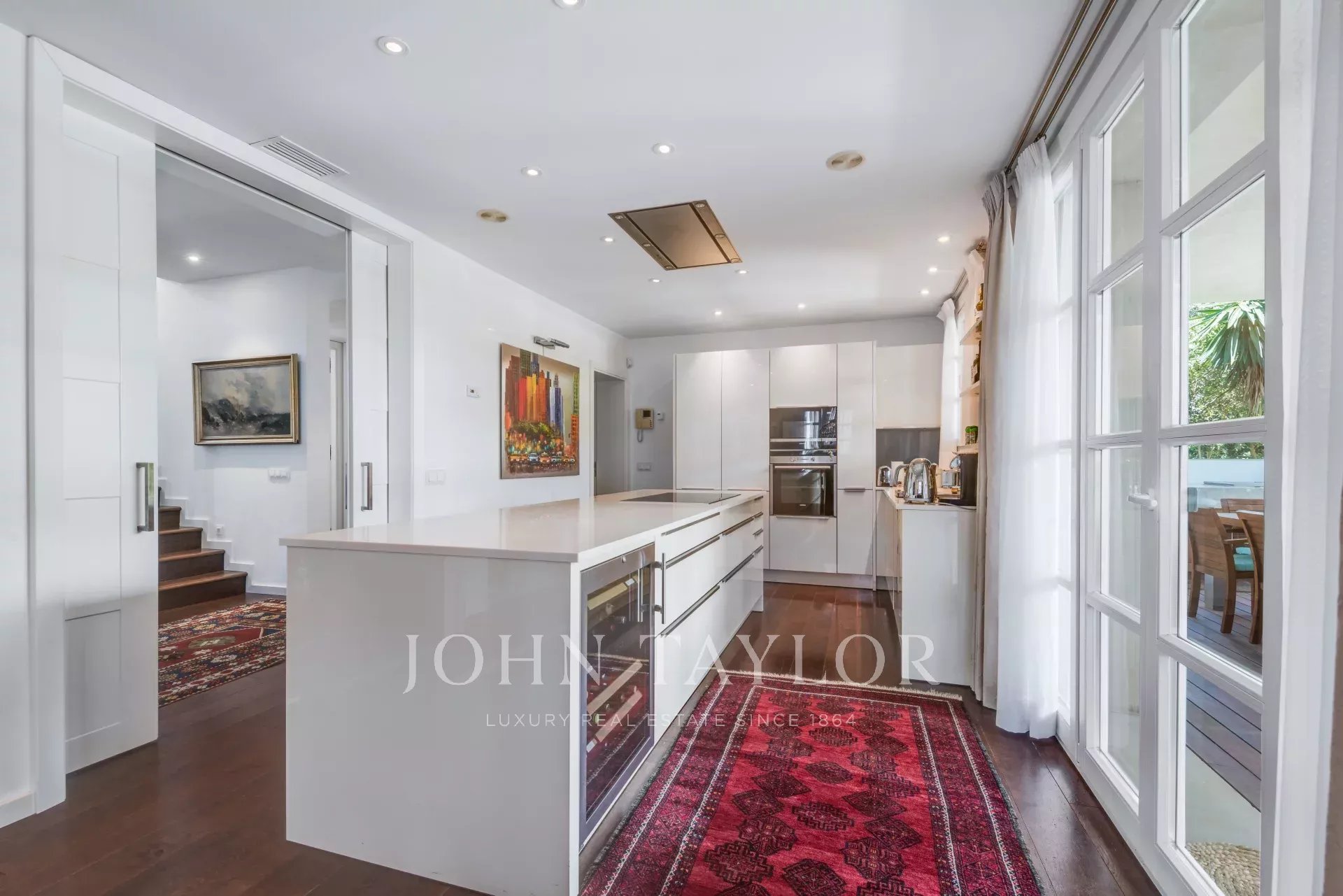 La cocina de estilo moderno con elegancia y sofisticación cuenta con electrodomésticos de alta calidad y última generación, como una placa de inducción y un horno Siemens, así como un frigorífico de Gaggenau y una vinoteca, que permiten cocinar con comodidad y profesionalidad. En esta planta baja también encontrará un dormitorio con baño y un aseo de invitados.