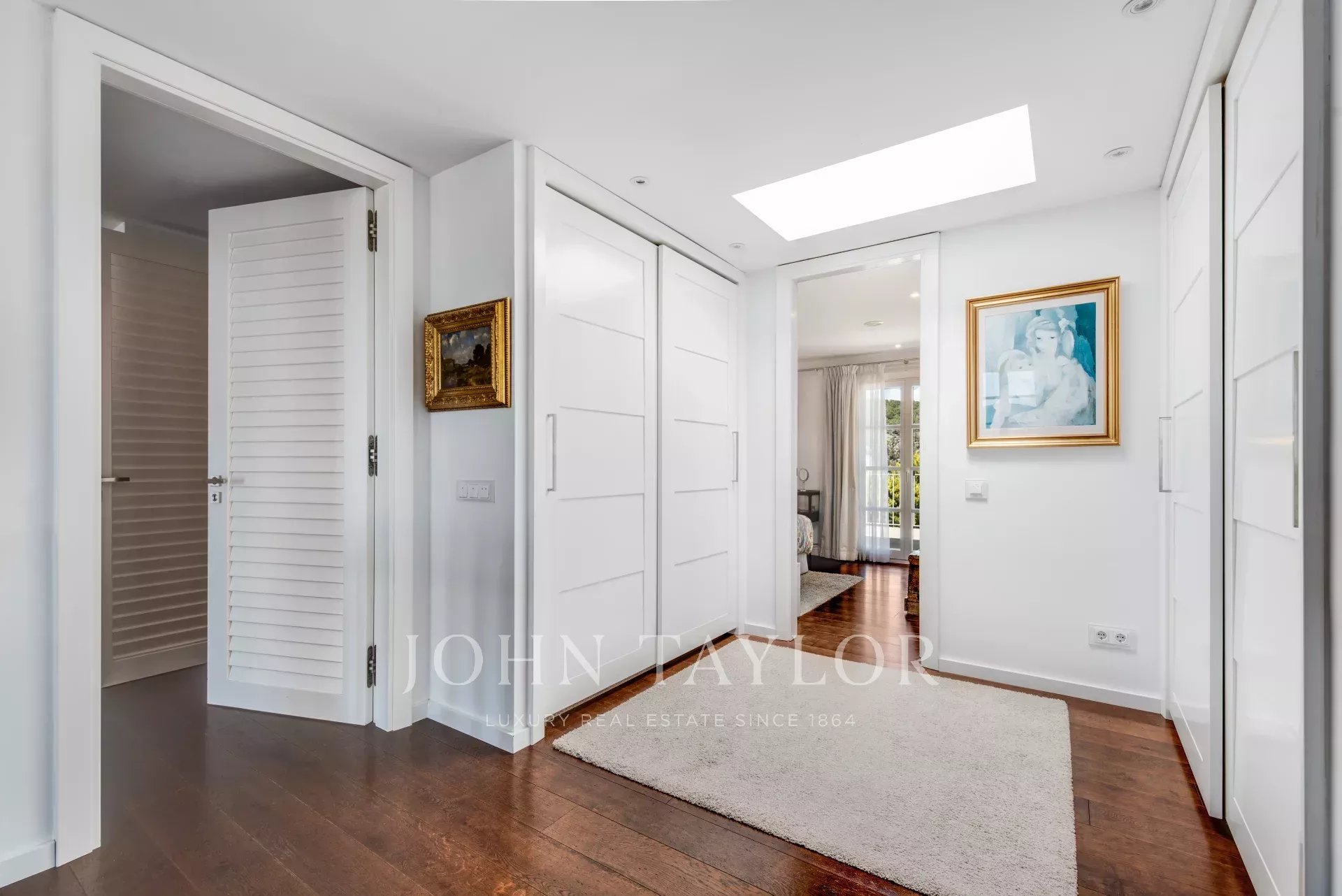 La planta superior cuenta con el dormitorio principal, que dispone de baño en suite, vestidor y un balcón con vistas al mar, así como otros dos dormitorios con baño en suite cada uno.