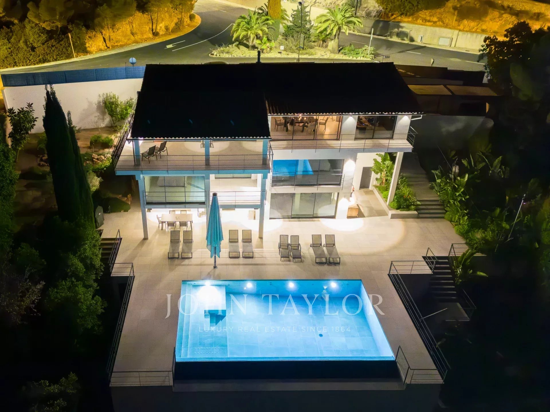 En este nivel, además de la terraza de 140 m² y la piscina infinita de 84 m², encontrará una cocina totalmente equipada con su propia zona de comedor (TV incluida), una zona de barbacoa (30 m²), un aseo de invitados y, como detalle especial, una ducha en la jungla. Otra escalera conduce a una terraza adicional de 90 m², destinada a zona chill-out.