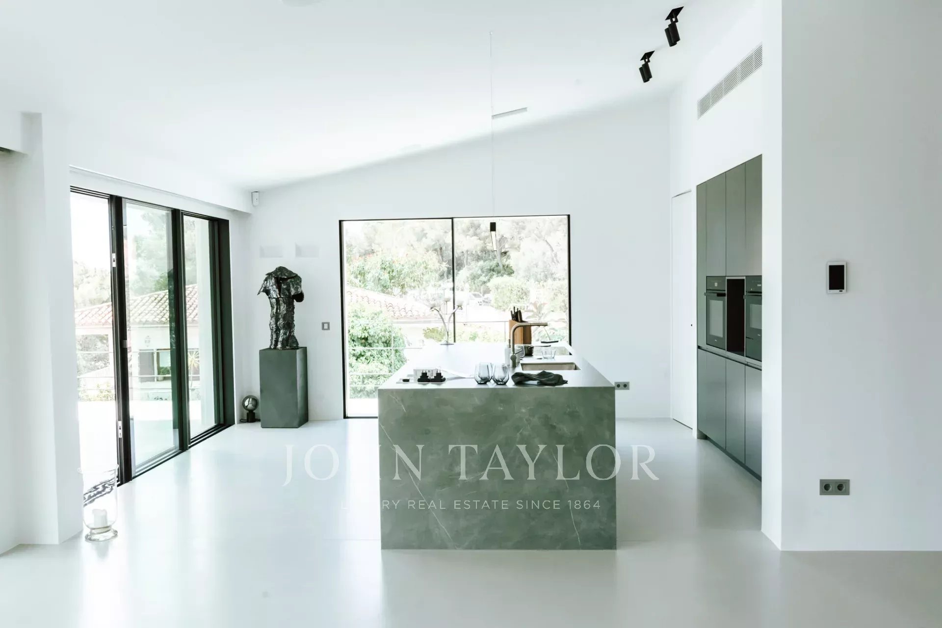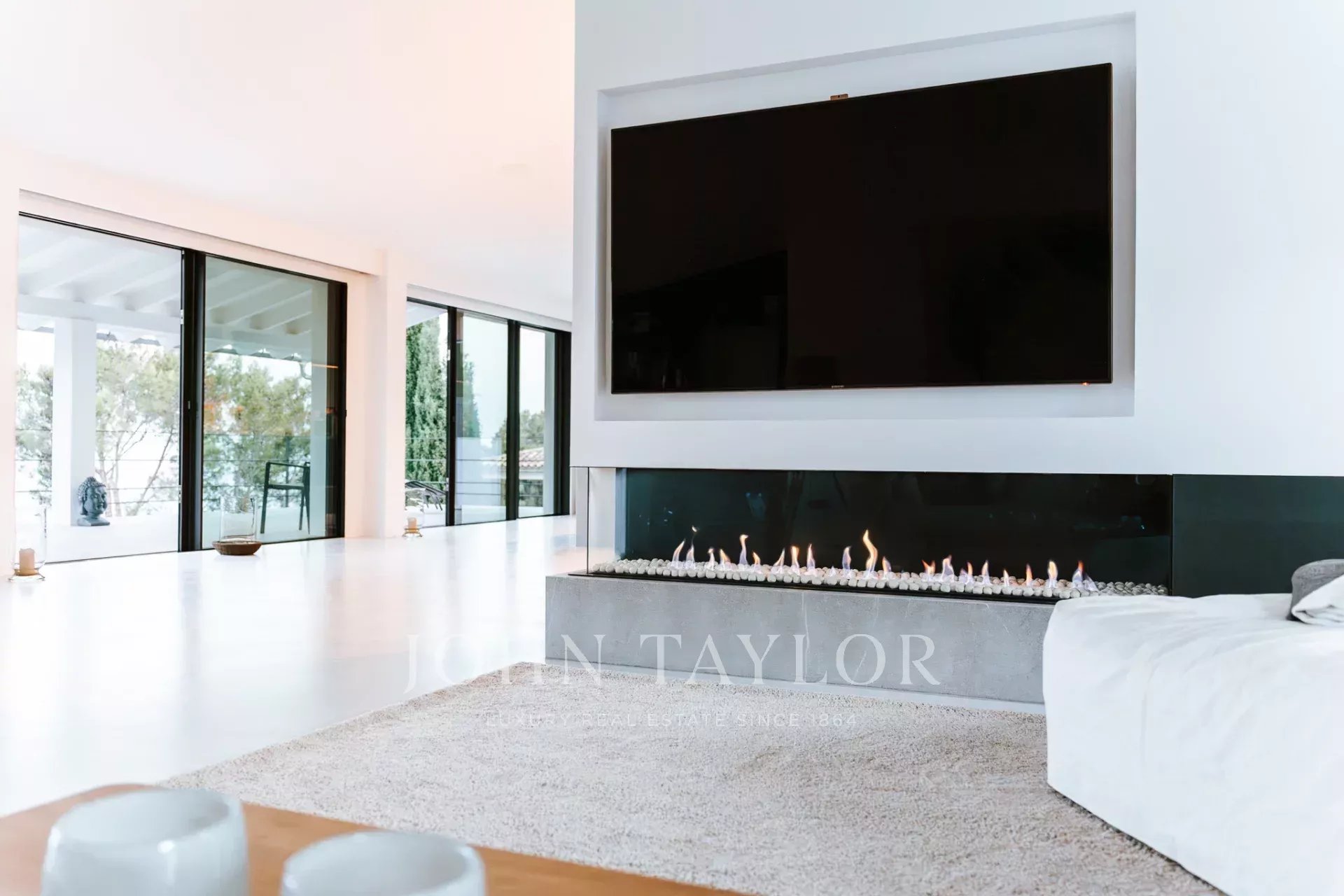 El equipamiento de última generación de esta villa única incluye calefacción por suelo radiante con dos bombas de calor, aire acondicionado (frío/calor), modernos elementos de ventana estrechos, suelos de microcemento, un sistema fotovoltaico con batería, un garaje con wallbox para coches eléctricos, un sistema de alarma, un sistema de sonido y domótica.