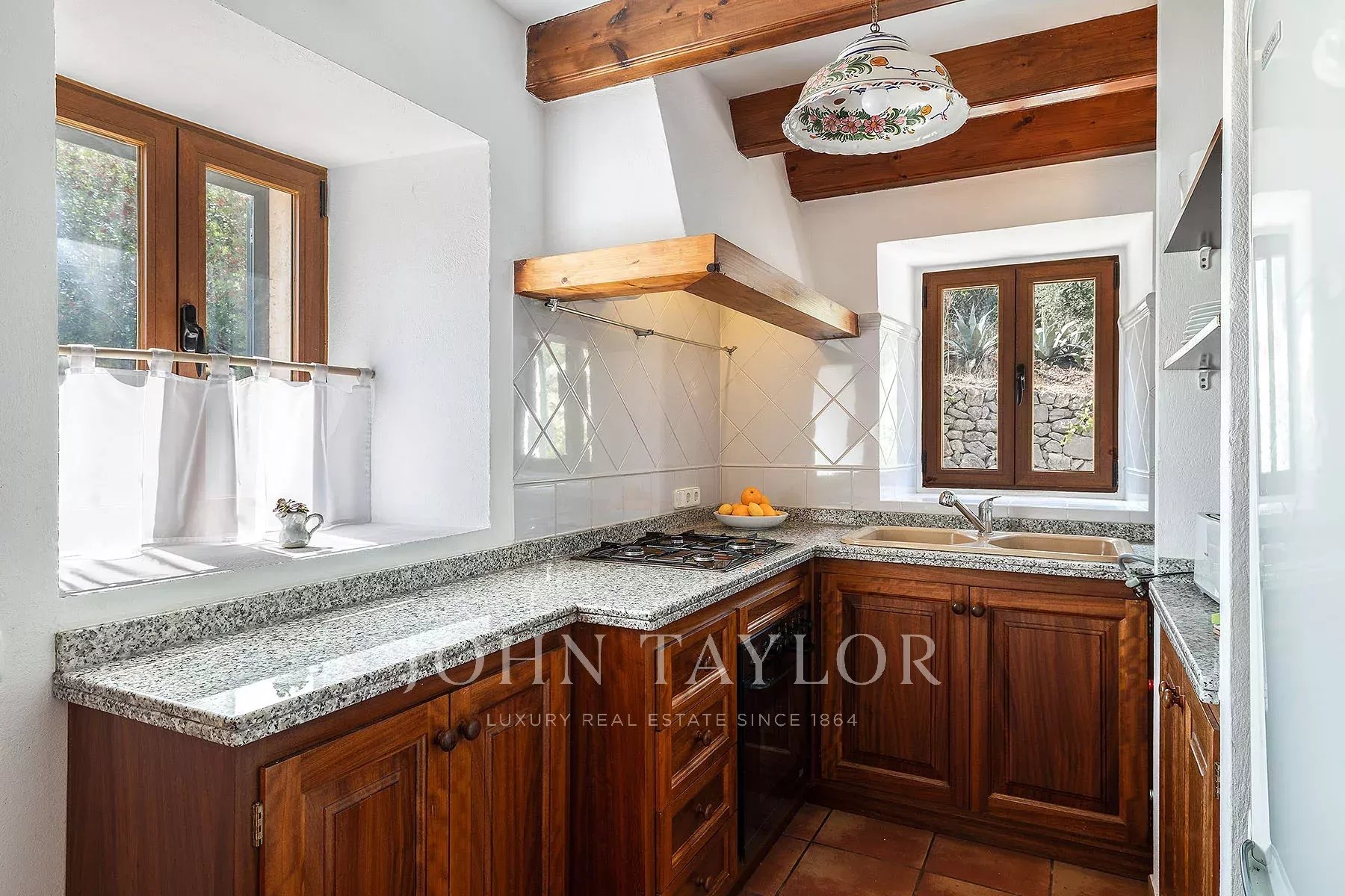 Sobre una amplia parcela de 2.800 m², la finca ofrece máxima privacidad y unas impresionantes vistas abiertas al paisaje mediterráneo y a las montañas de la Serra de Tramuntana. Un entorno de serenidad donde la luz, los colores y los aromas del campo mallorquín crean una atmósfera incomparable. La vivienda, con 152 m² construidos, ha sido cuidadosamente renovada, respetando su arquitectura tradicional y dotándola de interiores luminosos y elegantes. Cuenta con dos dormitorios, dos baños completos y dos amplios salones con cocina americana, ideales para disfrutar en familia o con amigos. Uno de los salones puede transformarse fácilmente en un tercer dormitorio, ofreciendo flexibilidad y confort en cada rincón. En el exterior, la finca despliega todo su atractivo mediterráneo: jardines con olivos y almendros, amplias terrazas soleadas y una piscina privada rodeada de naturaleza. El lugar perfecto para relajarse y disfrutar del clima templado de Mallorca durante todo el año.