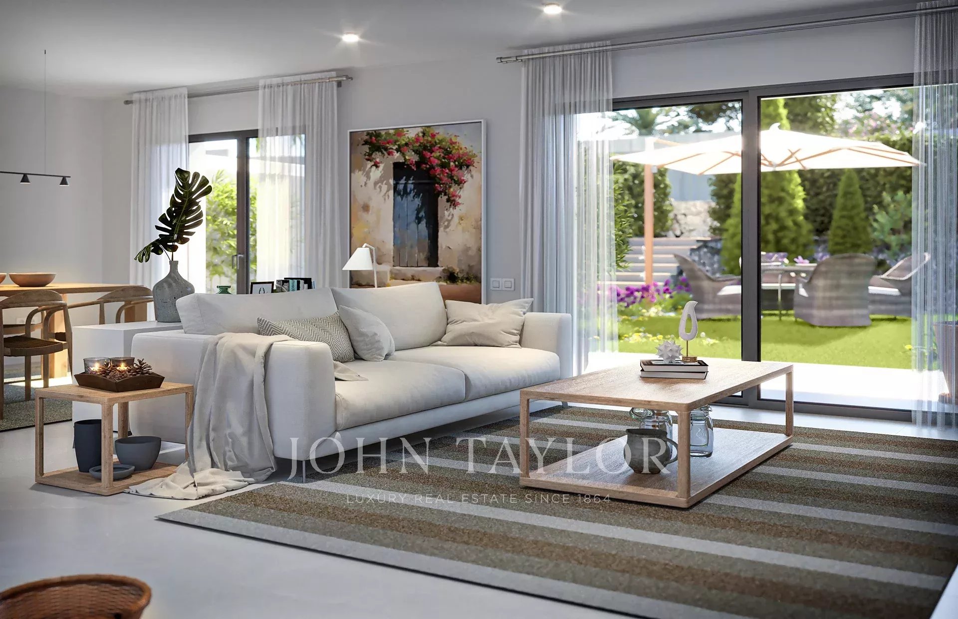Los salones, de gran luminosidad, se abren hacia las amplias terrazas gracias a sus ventanales de gran formato. La cocina amueblada y equipada es independiente y abierta. En la primera planta se ubican dos baños y 3 amplios y luminosos dormitorios.